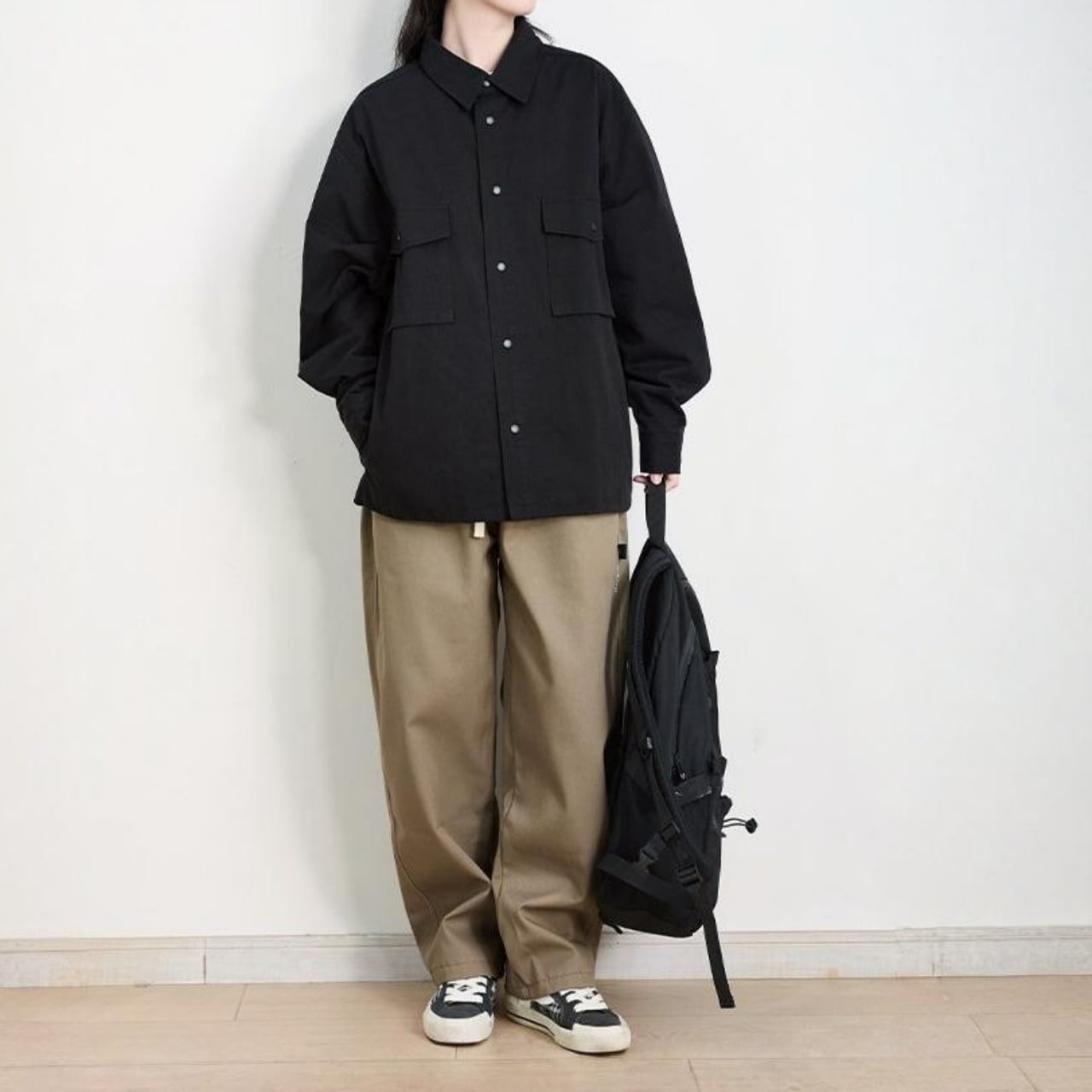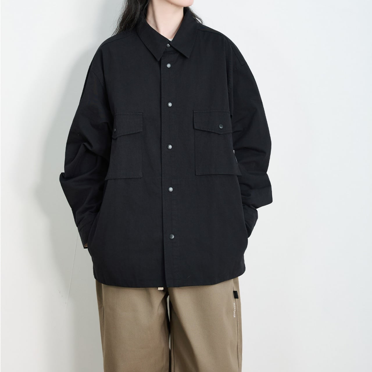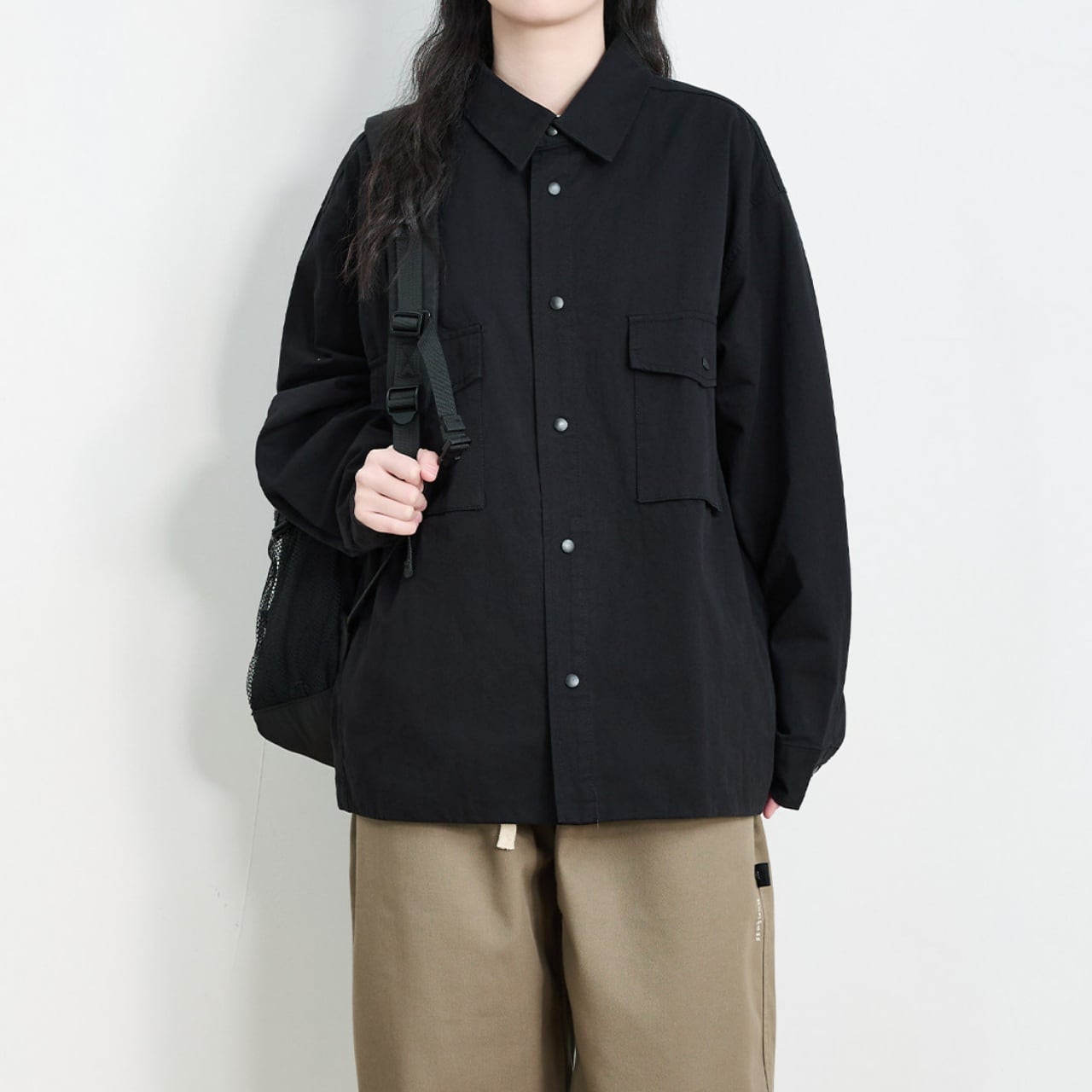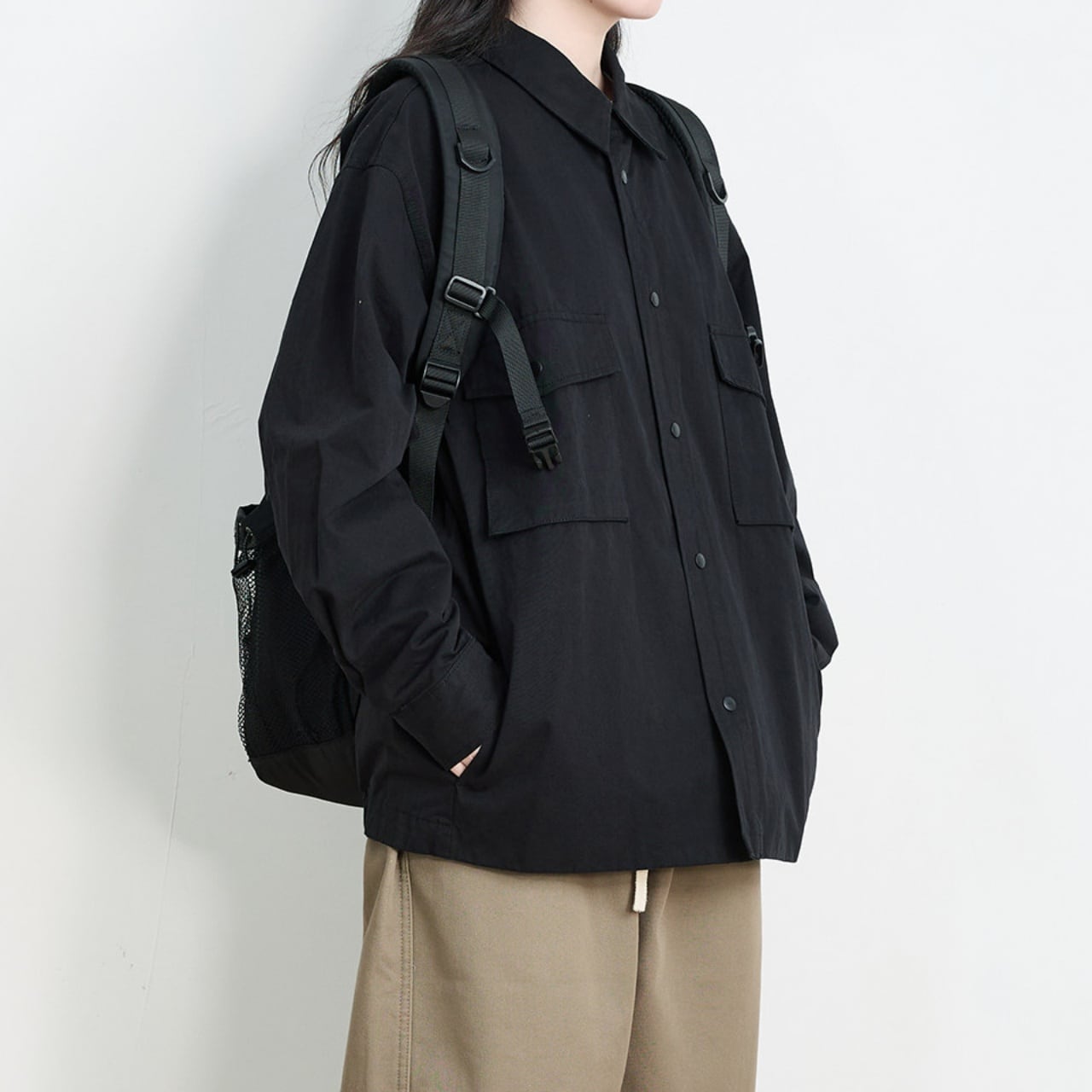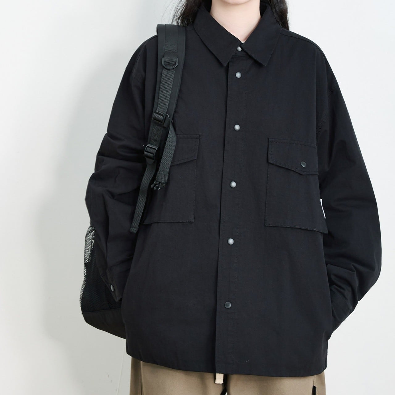 ユニセックスオーバーサイズダブルフラップポケットユーティリティジャケット A02002