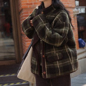 チェックボリュームボアパイピングブルゾン A02005