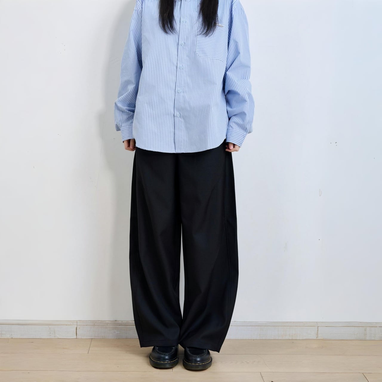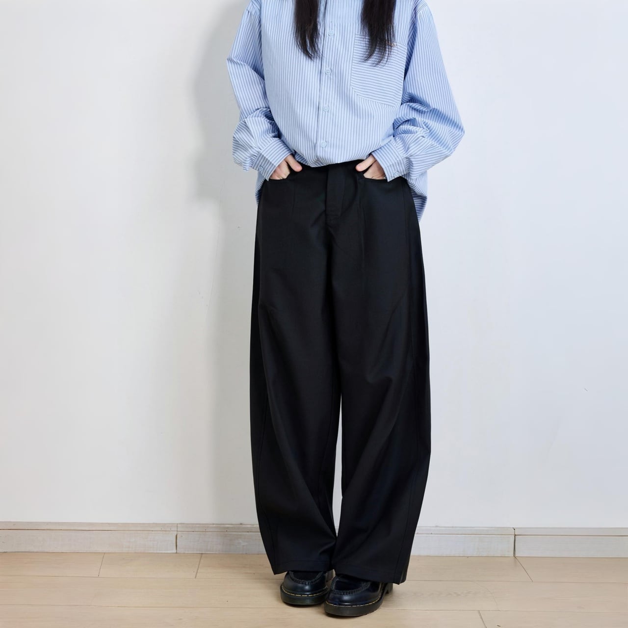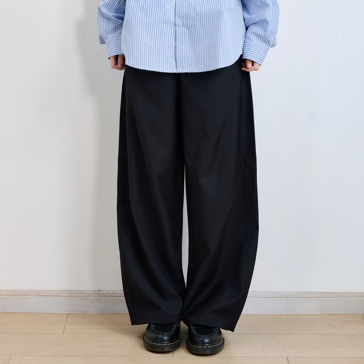ボリューム感のあるワイドシルエットで、都会的なモードスタイルに。