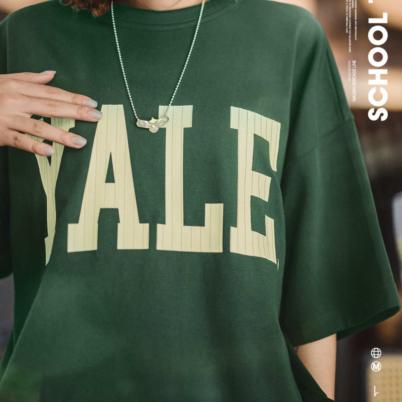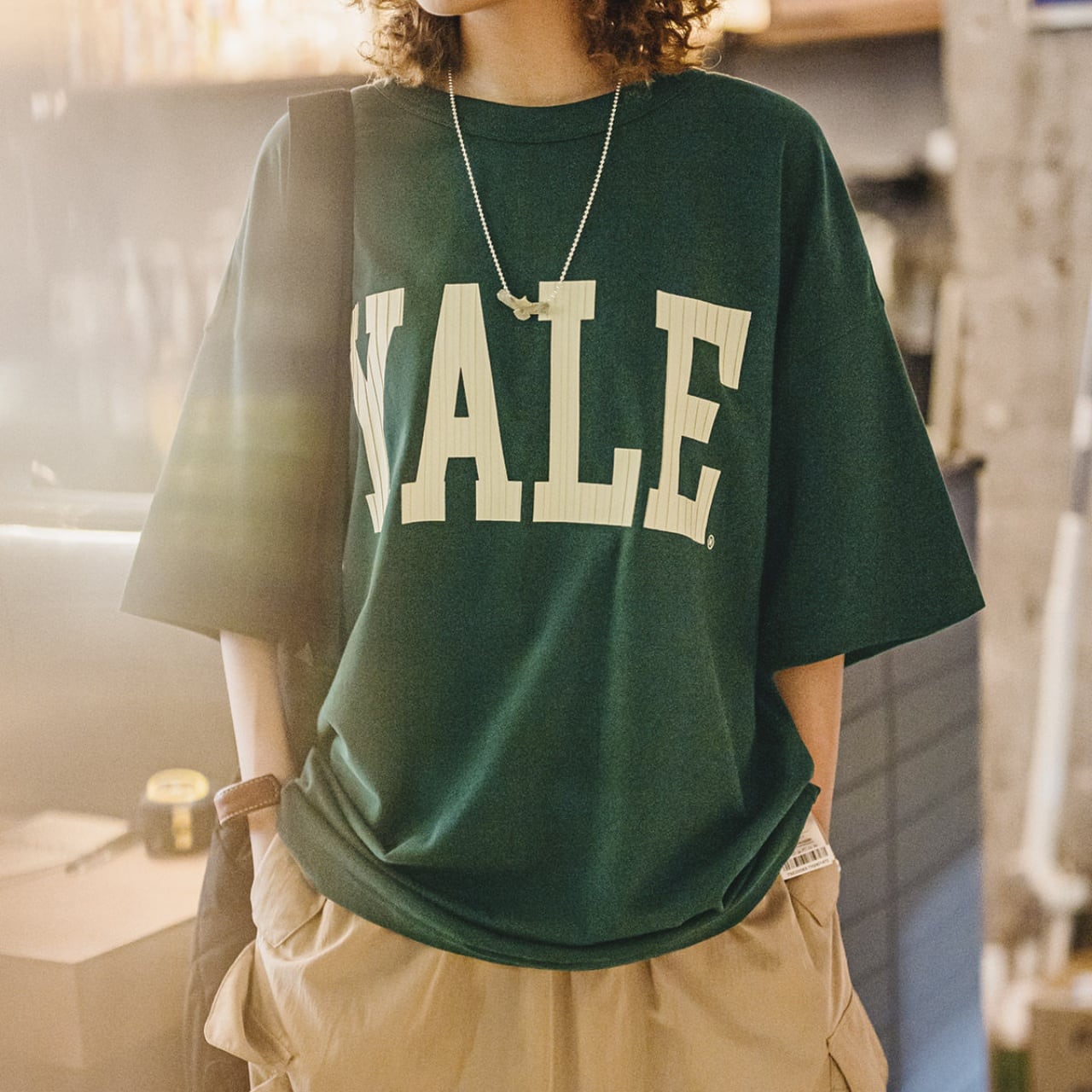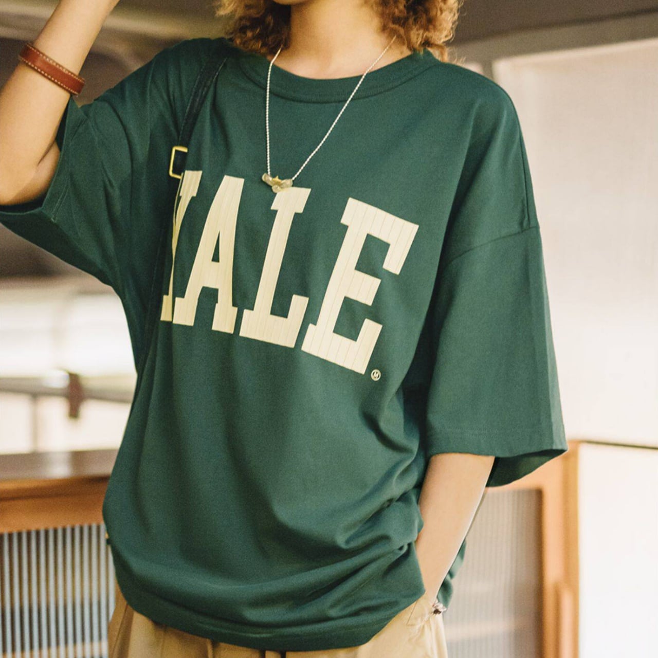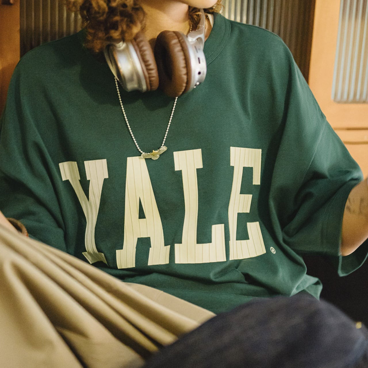 「YALE」のカレッジロゴが映えるオーバーサイズTシャツ。