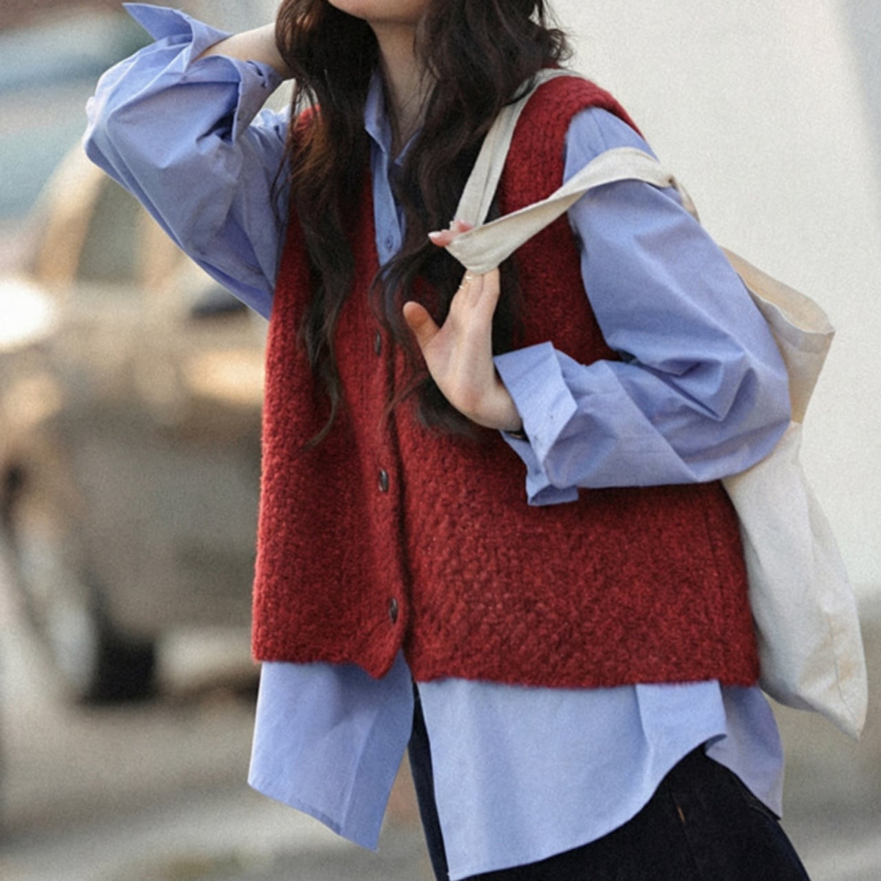 いつものコーデにプラスワンでおしゃれ度がアップするニットベスト。
