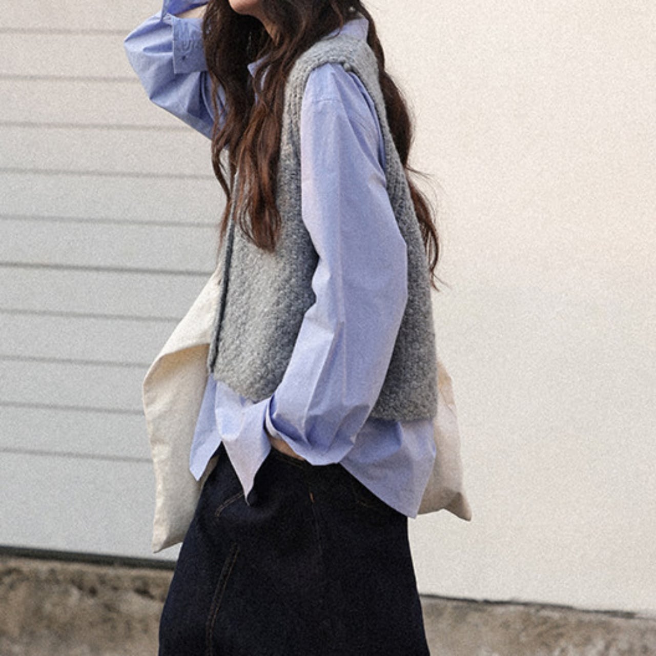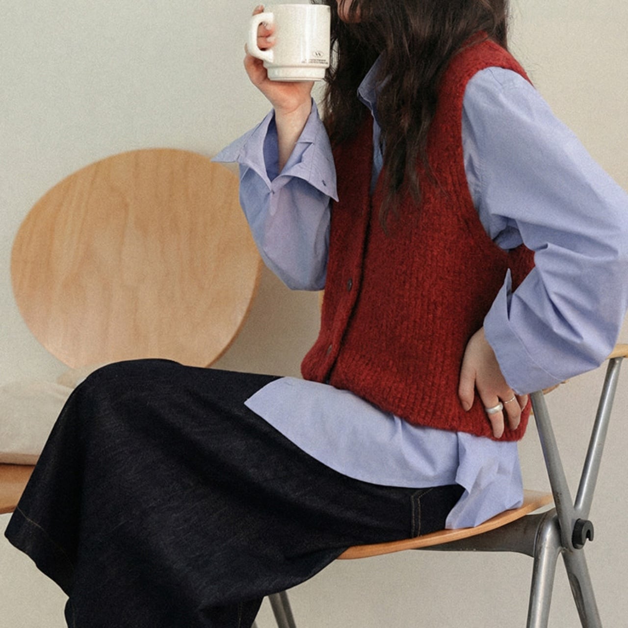 シャツの上に重ねても着膨れせず、リラックスしたエフォートレスな雰囲気を醸し出します。