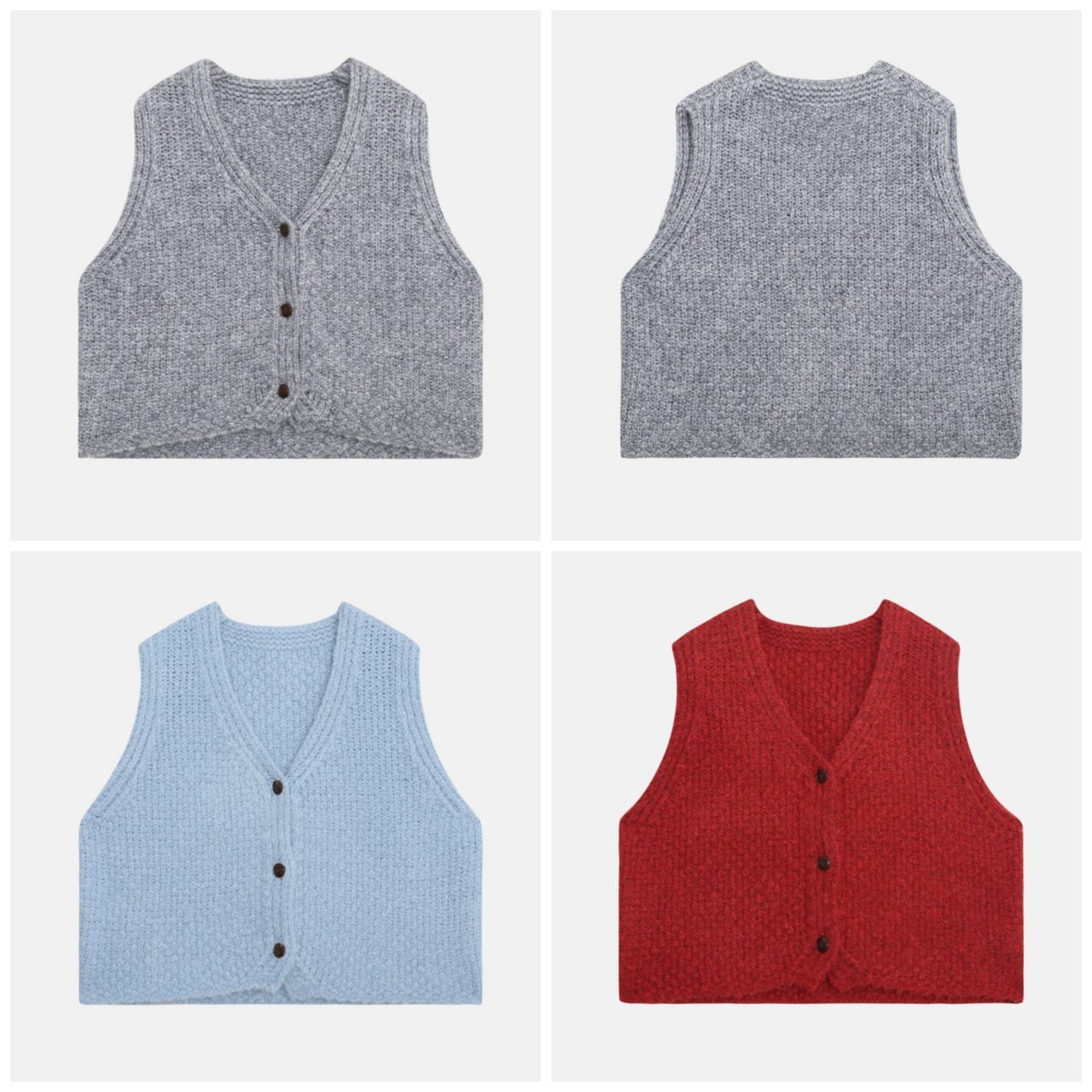 ボタンフロントクロップドVネックニットベスト A02060