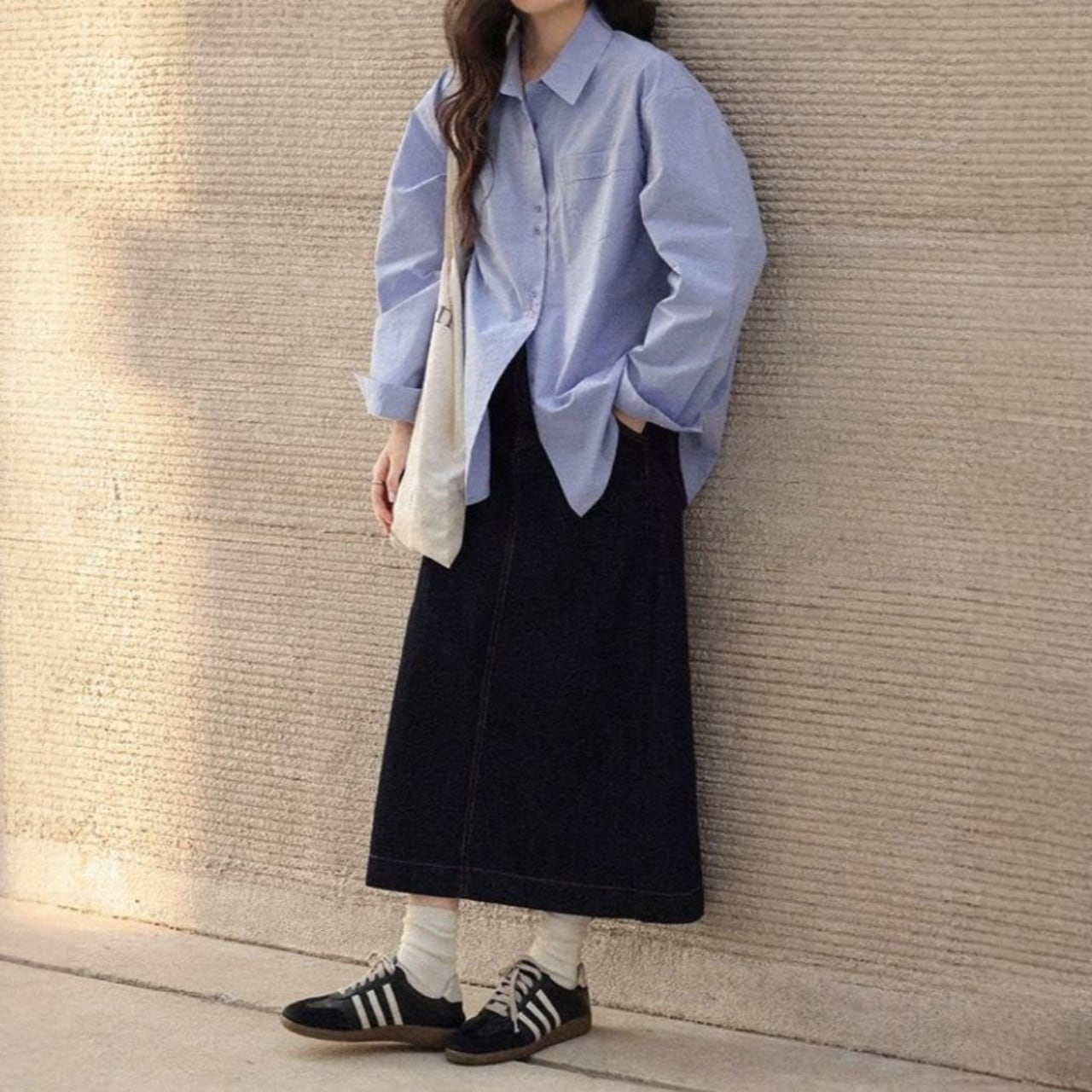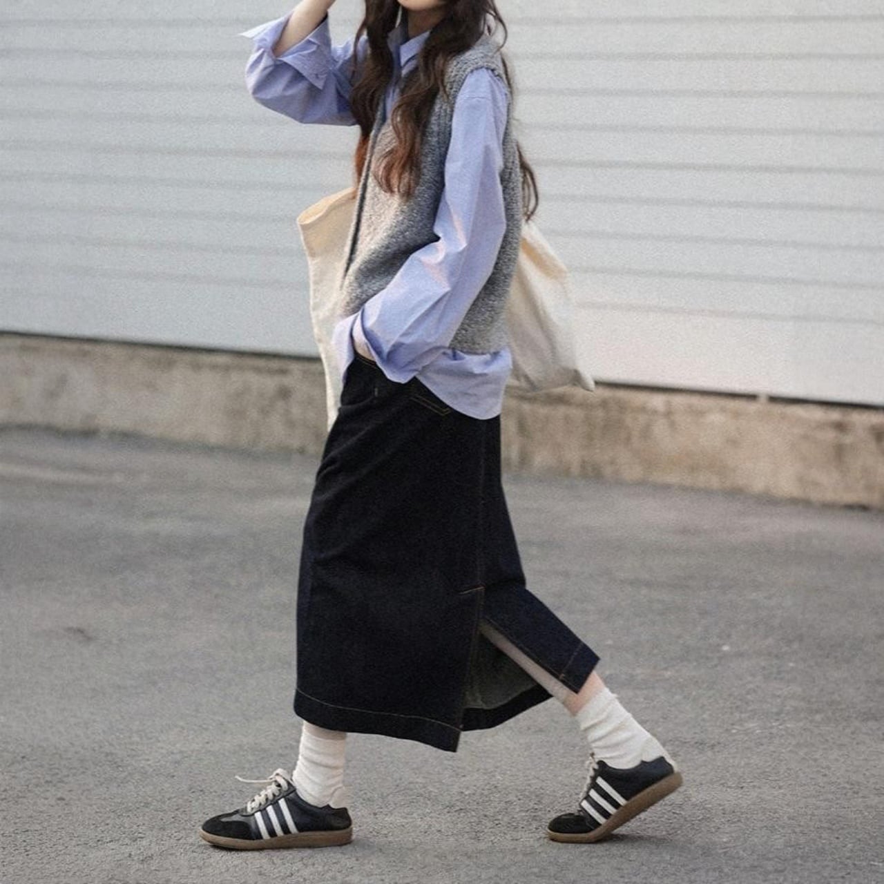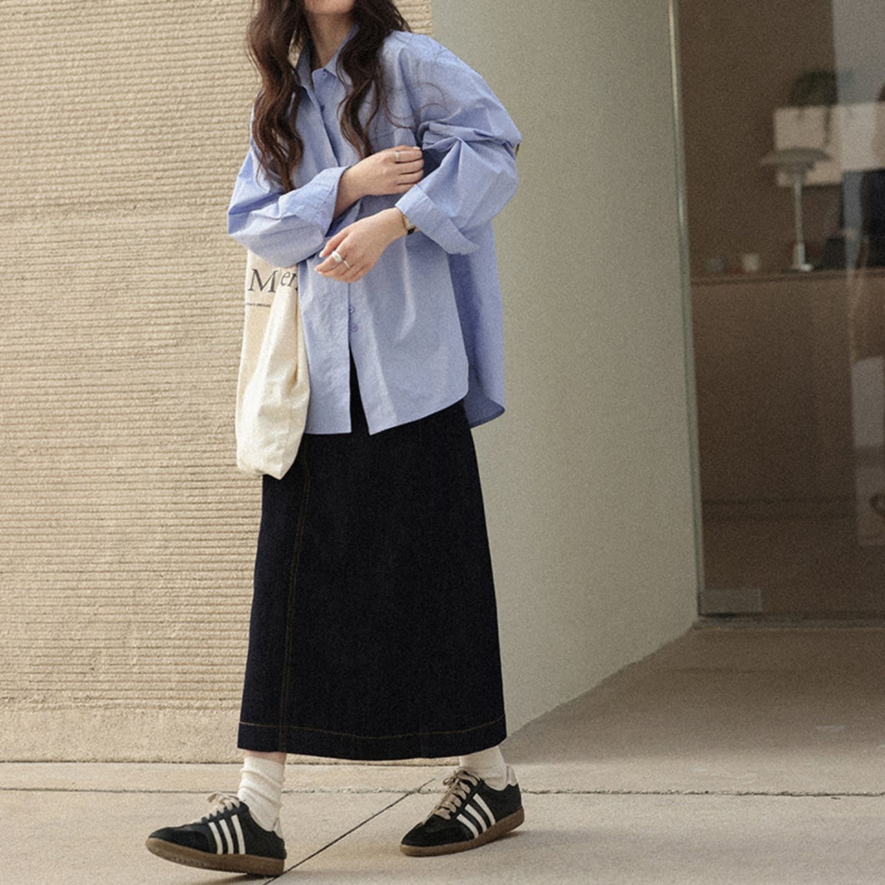 後ろスリット入りで足捌きも良く、スニーカーやブーツとの相性も抜群。