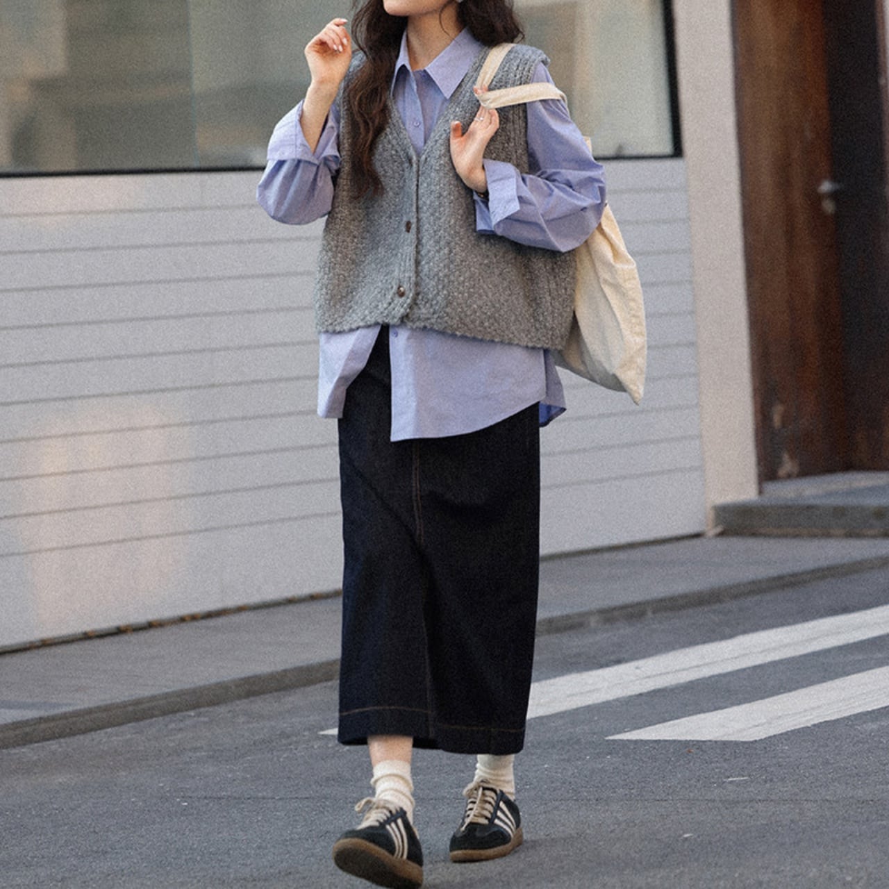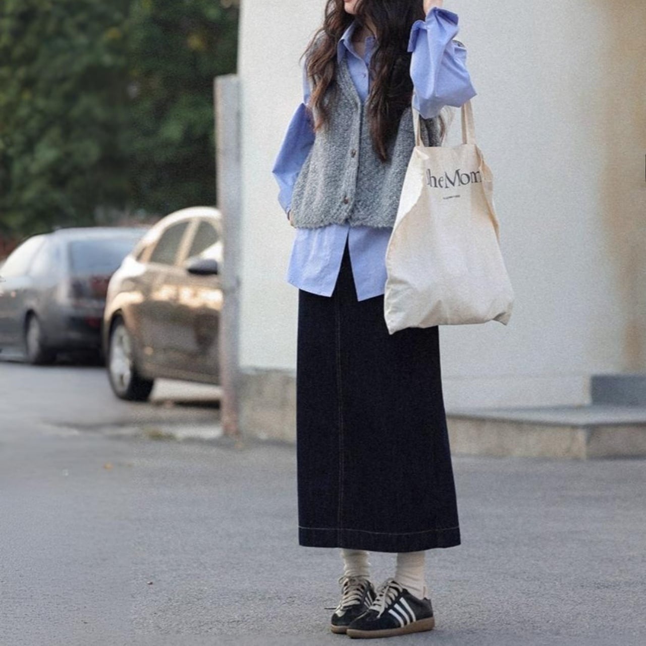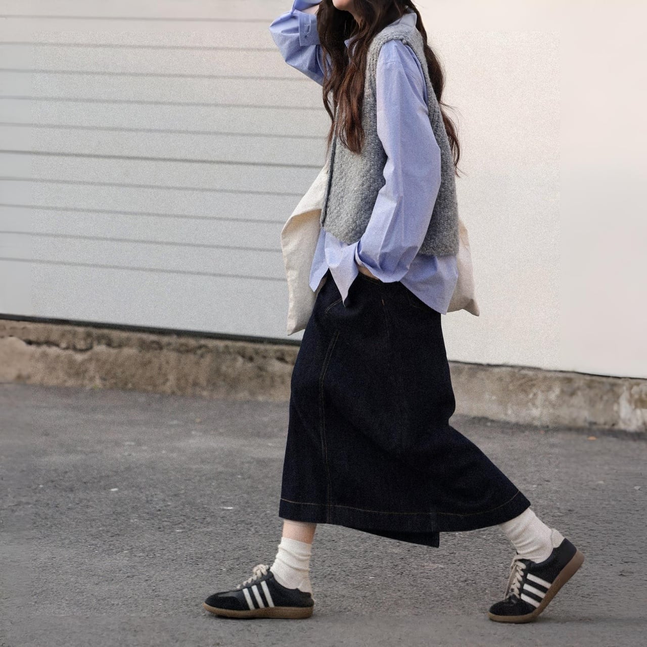 後ろスリット入りで足捌きも良く、スニーカーやブーツとの相性も抜群。