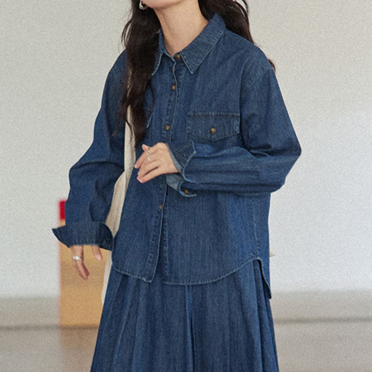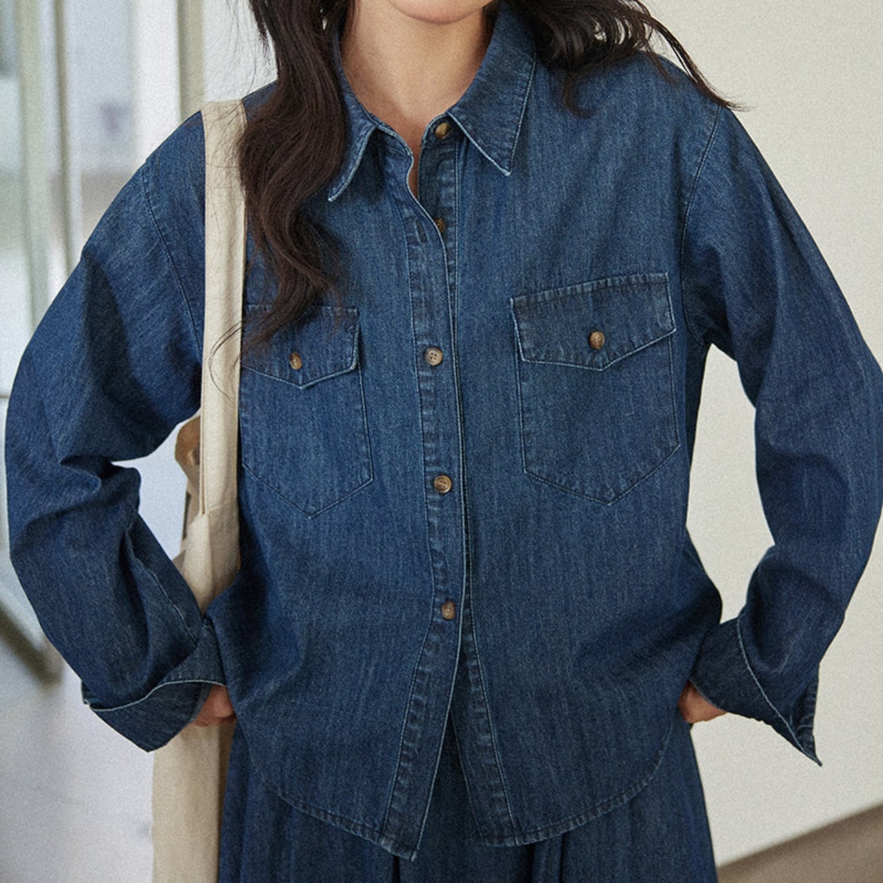 メンズライクな着こなしが楽しめるワークデニムシャツ。