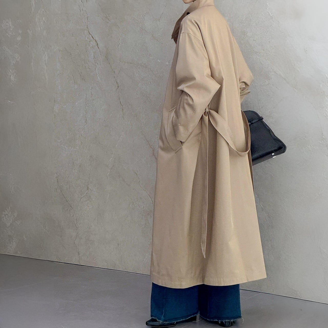 付属のウエストベルトでシルエットのアレンジも楽しめます。