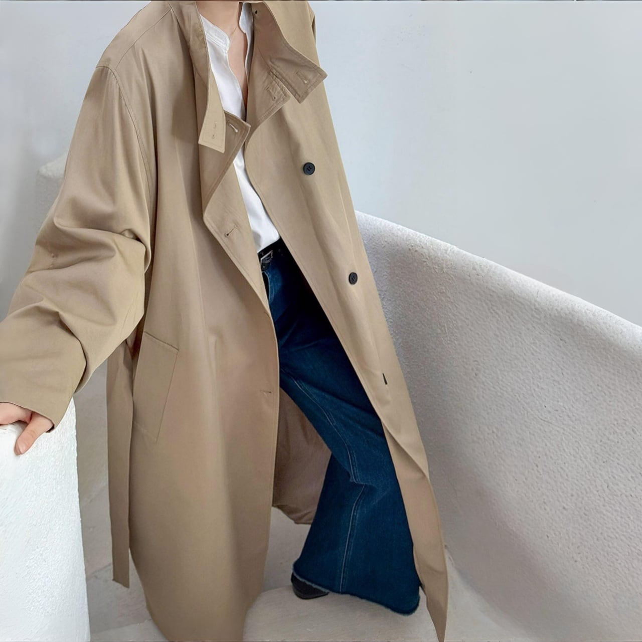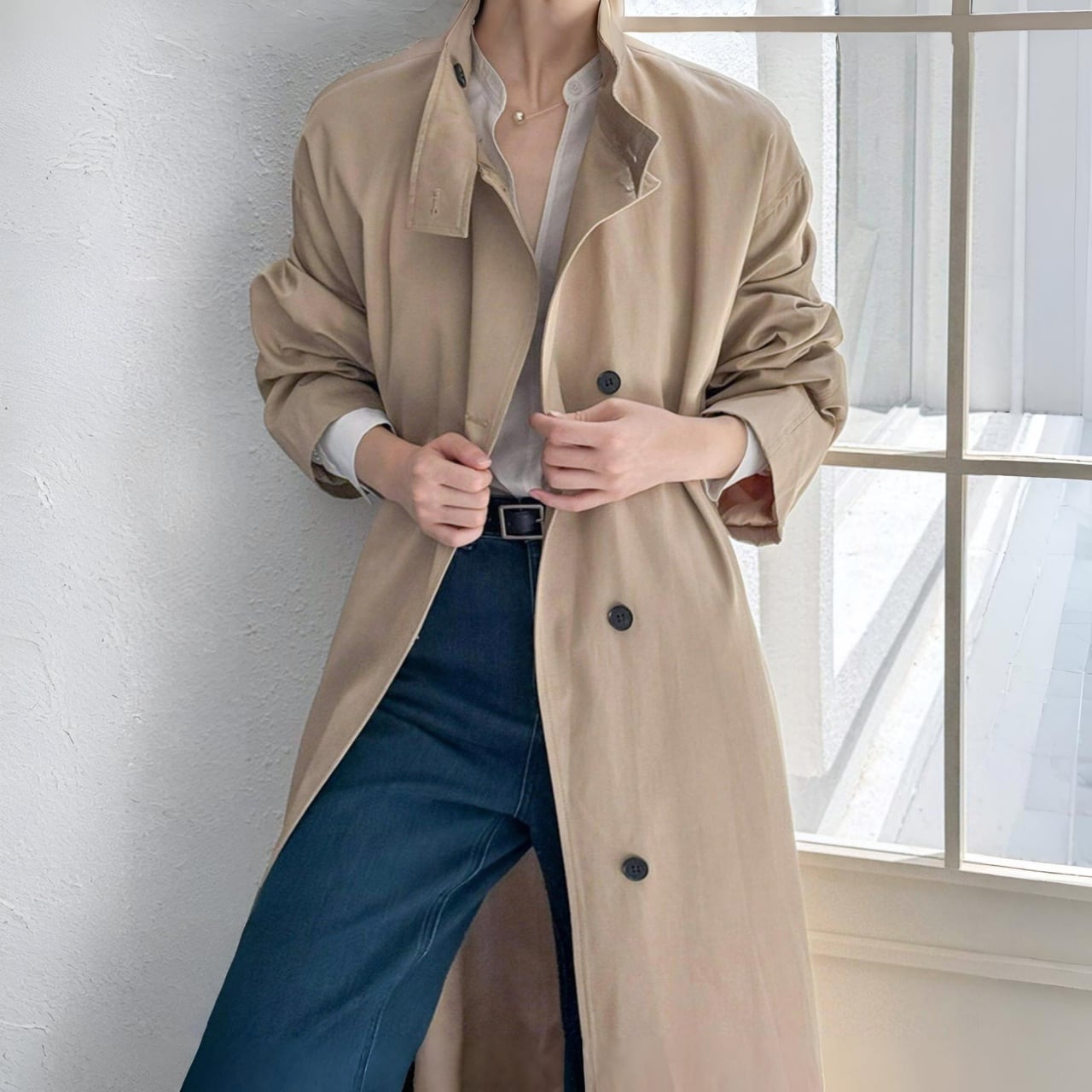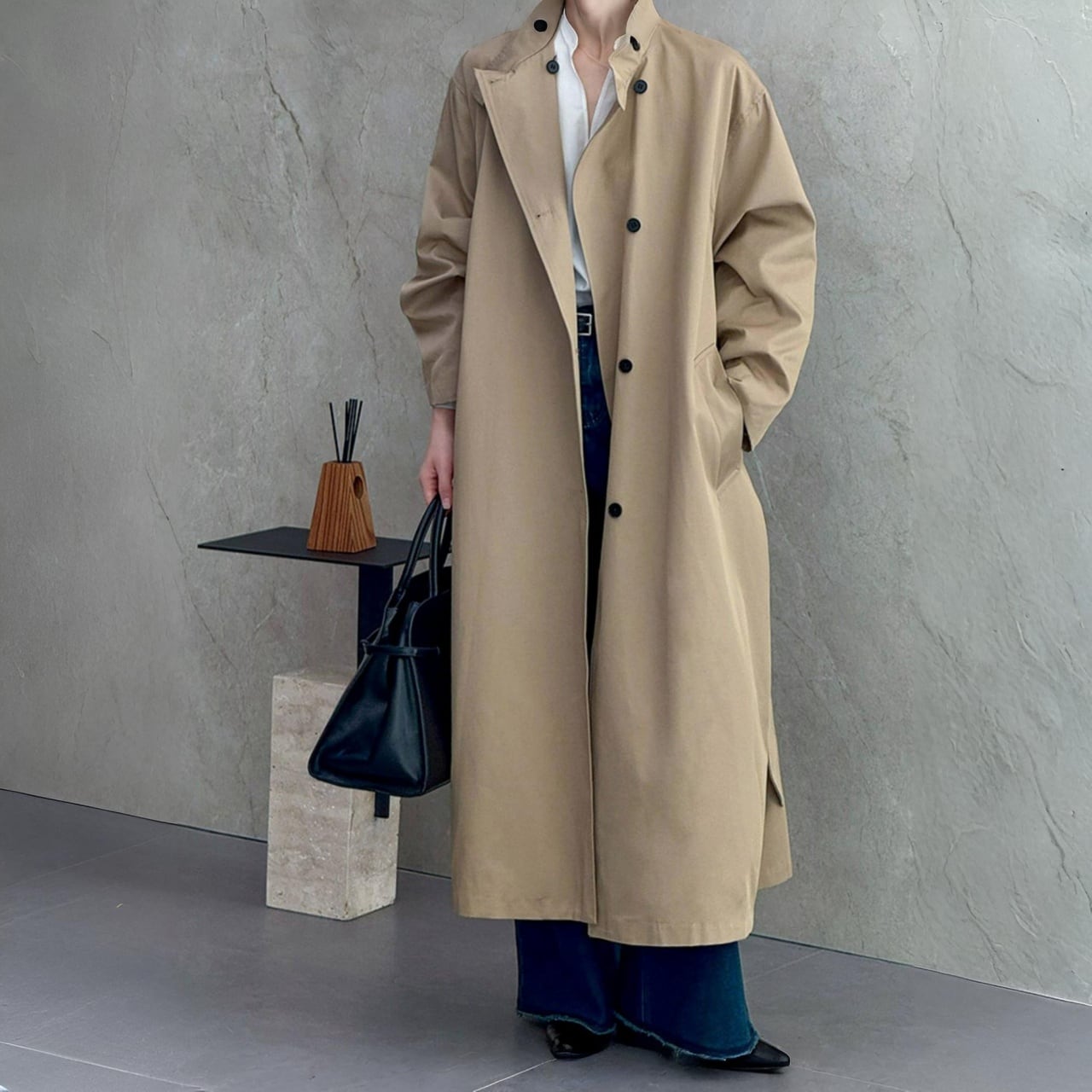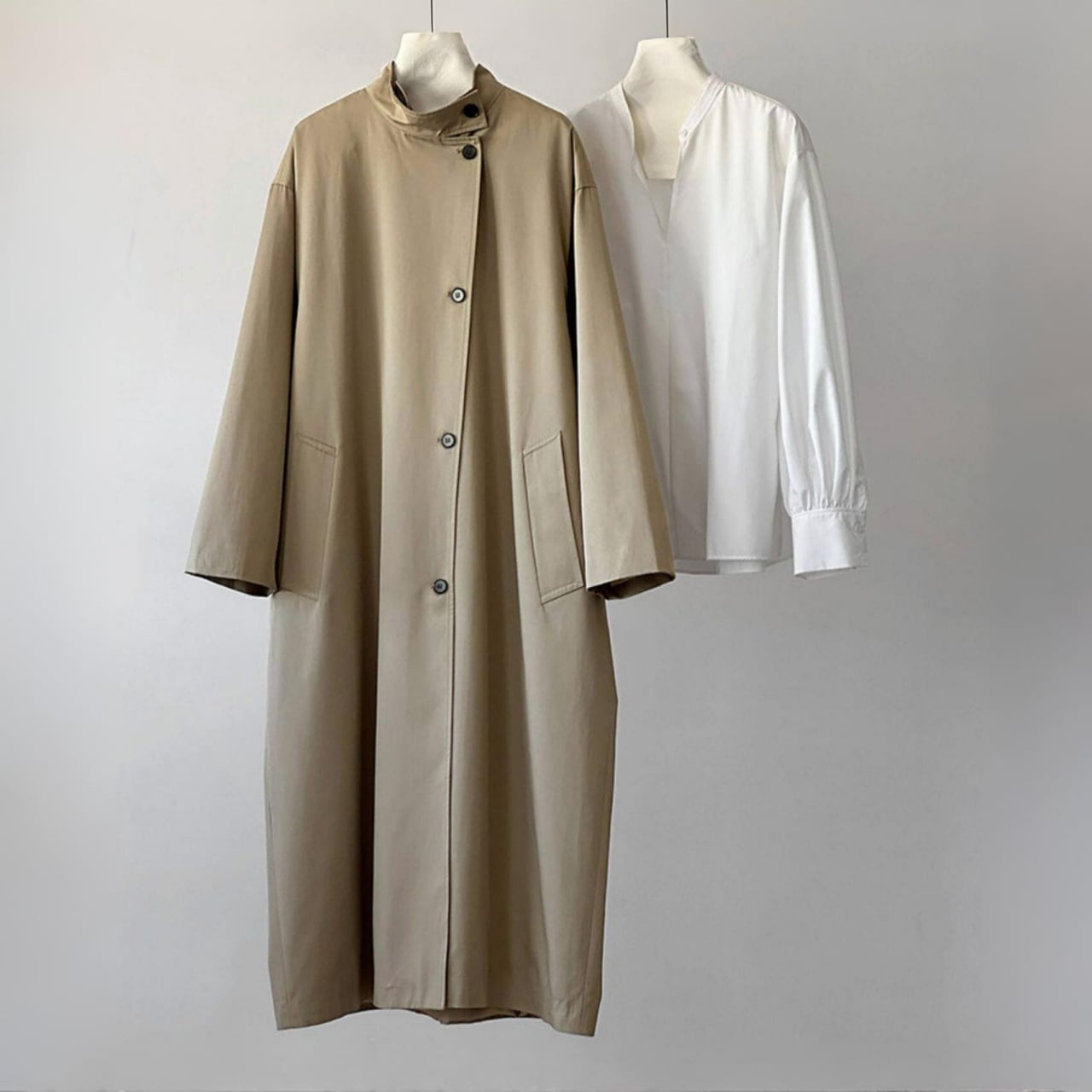 スタンドカラーロングコート A02075