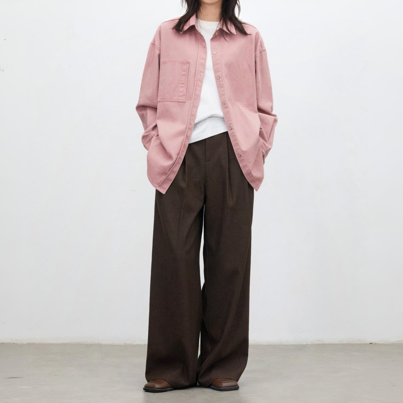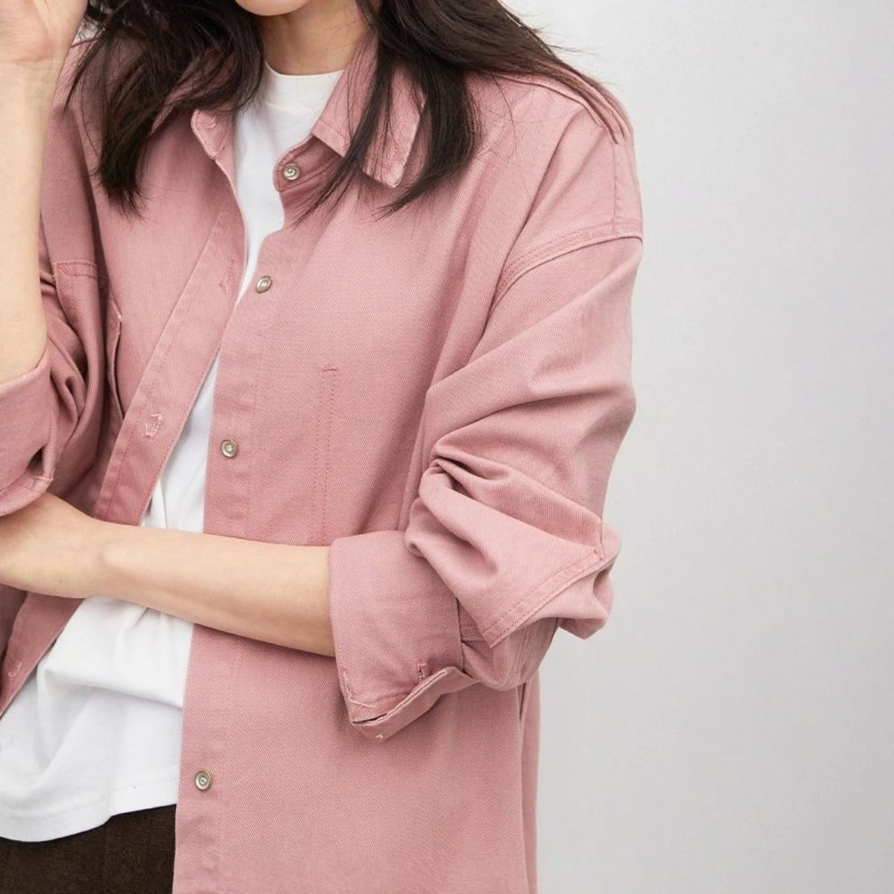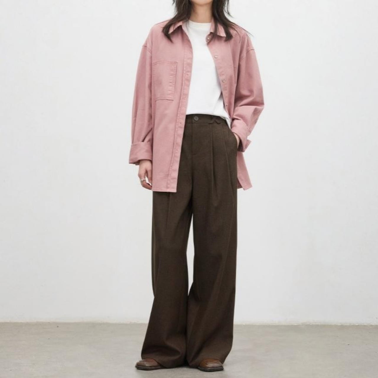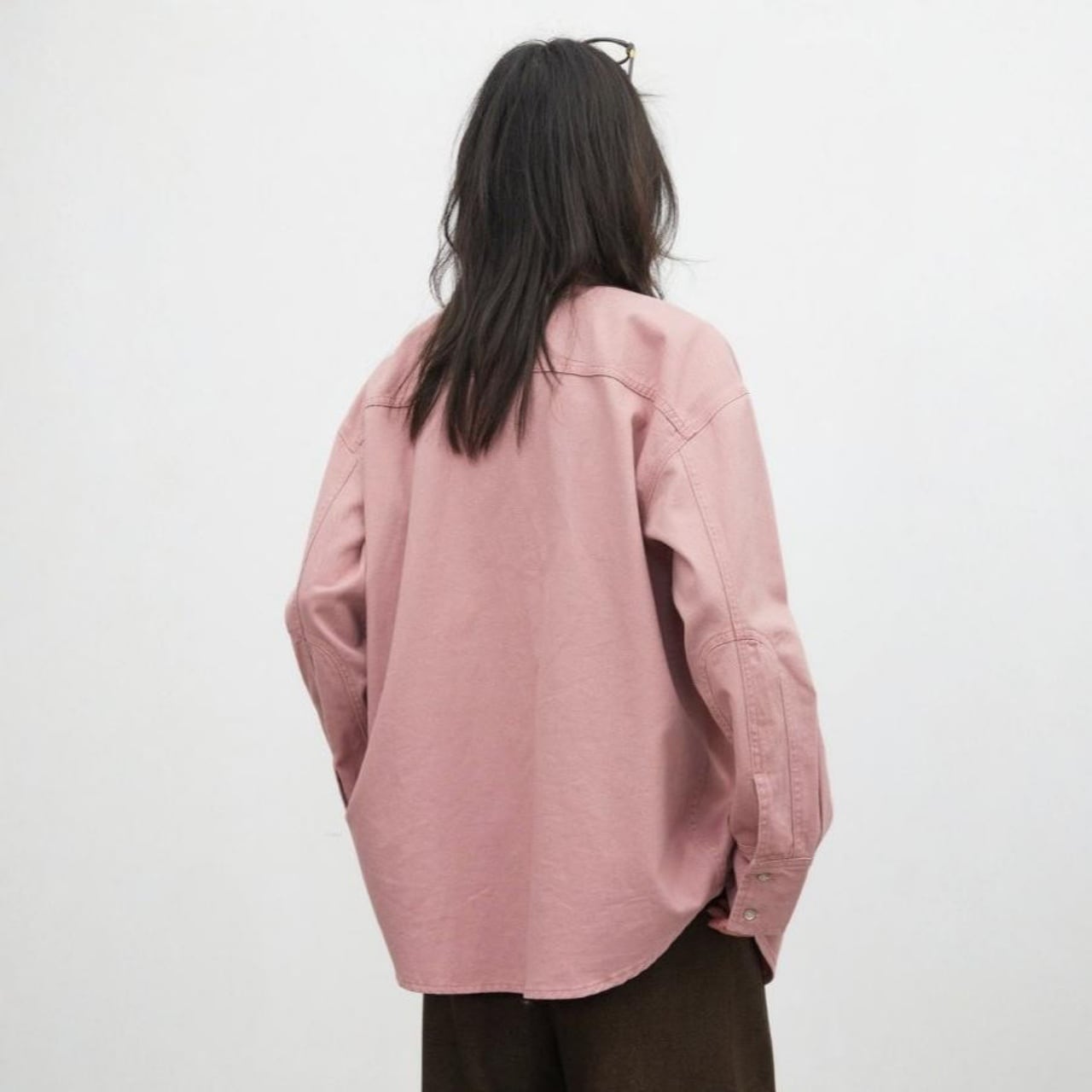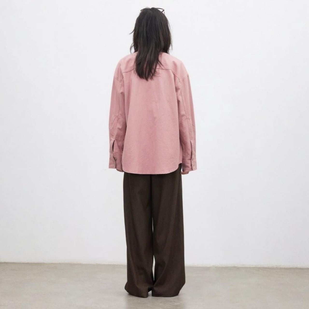 ドロップショルダーで肩まわりゆったり、リラックス感のある着心地。