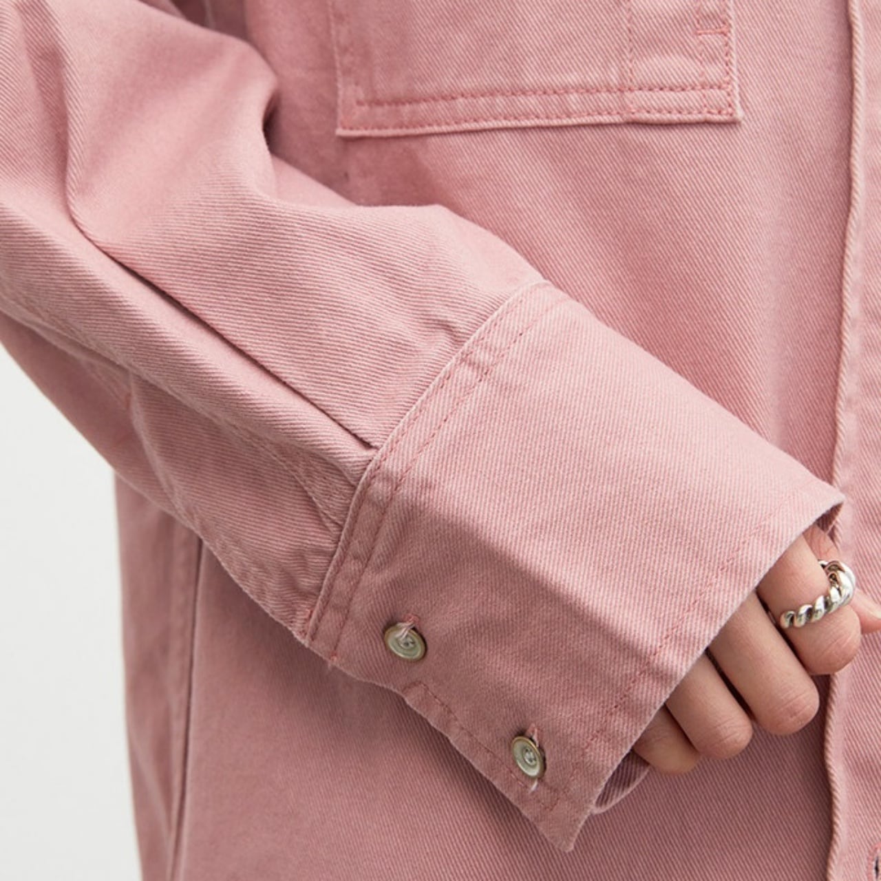 アンティーク調のシルバーボタンが、さりげないヴィンテージ感を添えます。