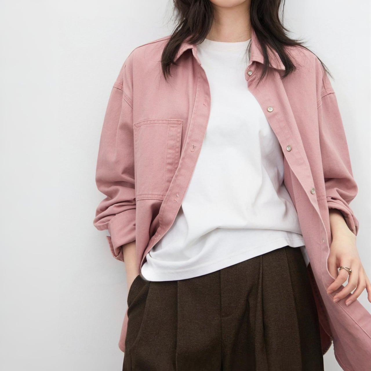 パッチポケットがアクセントになり、コーディネートのポイントに。