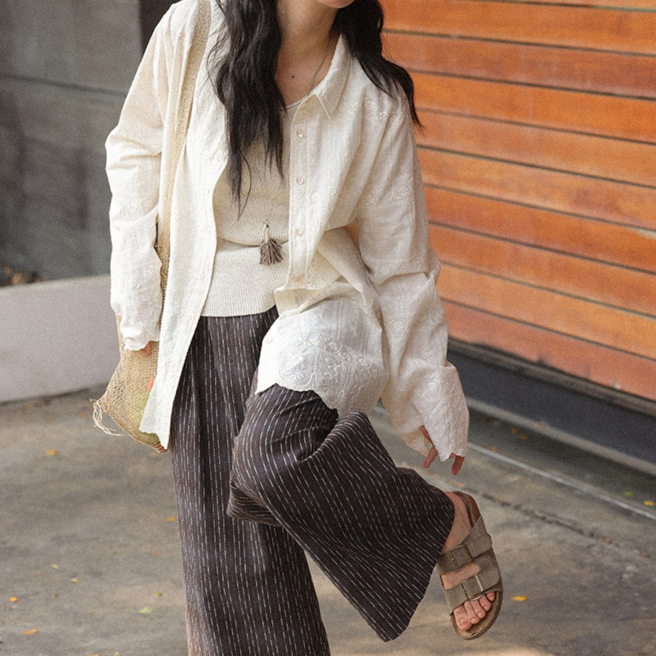 縦のラインを強調し、スタイルをすっきりと見せてくれます。