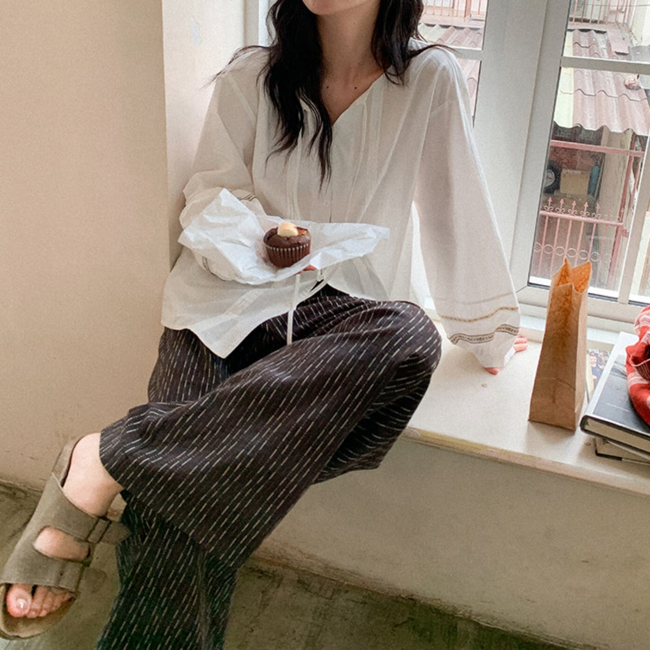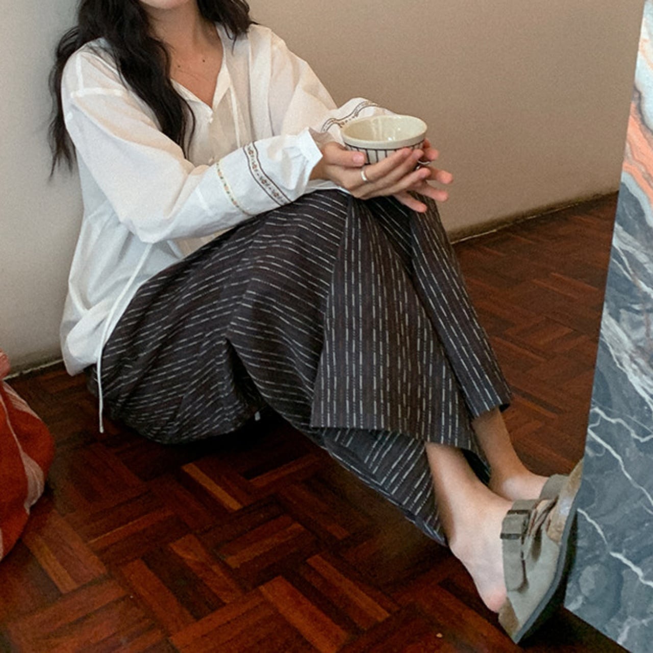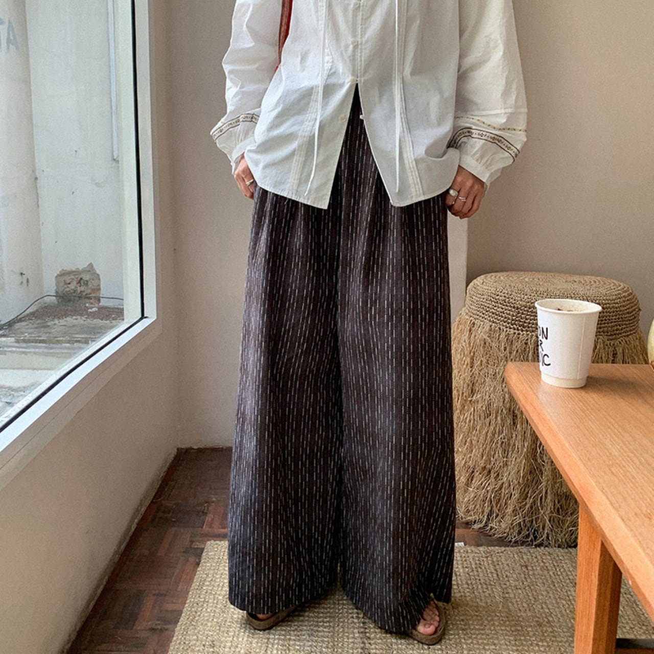 ステッチストライプイージーワイドパンツ A02081