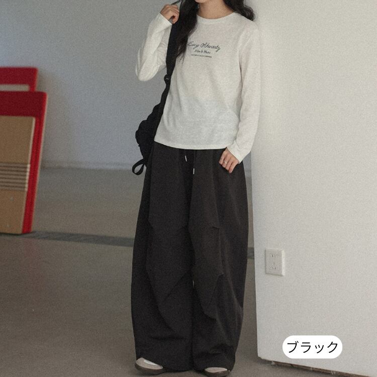 ゆったりとしたシルエットが魅力のバギーパンツ。