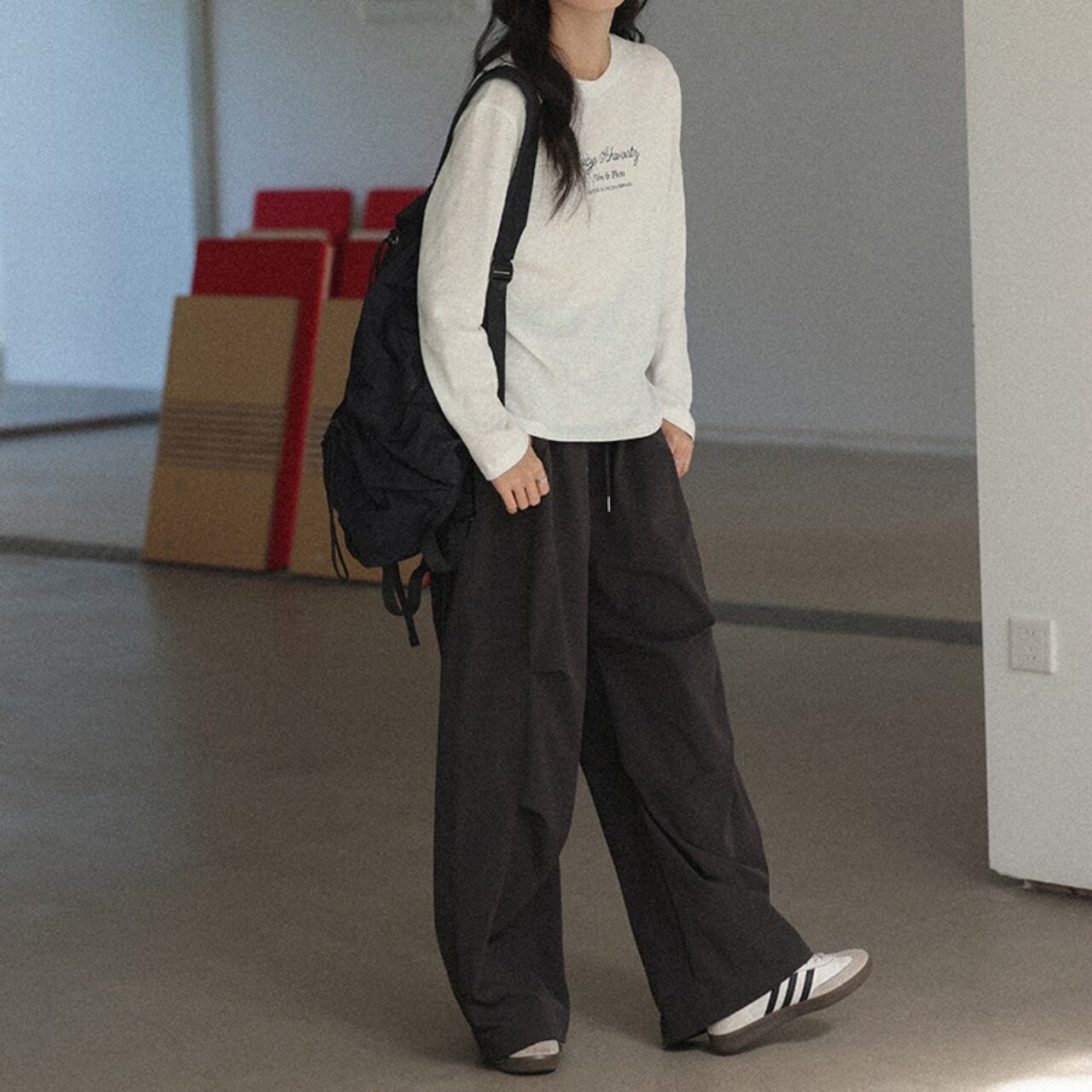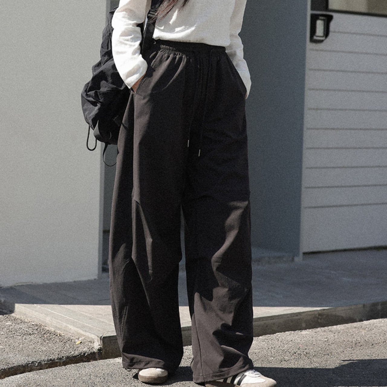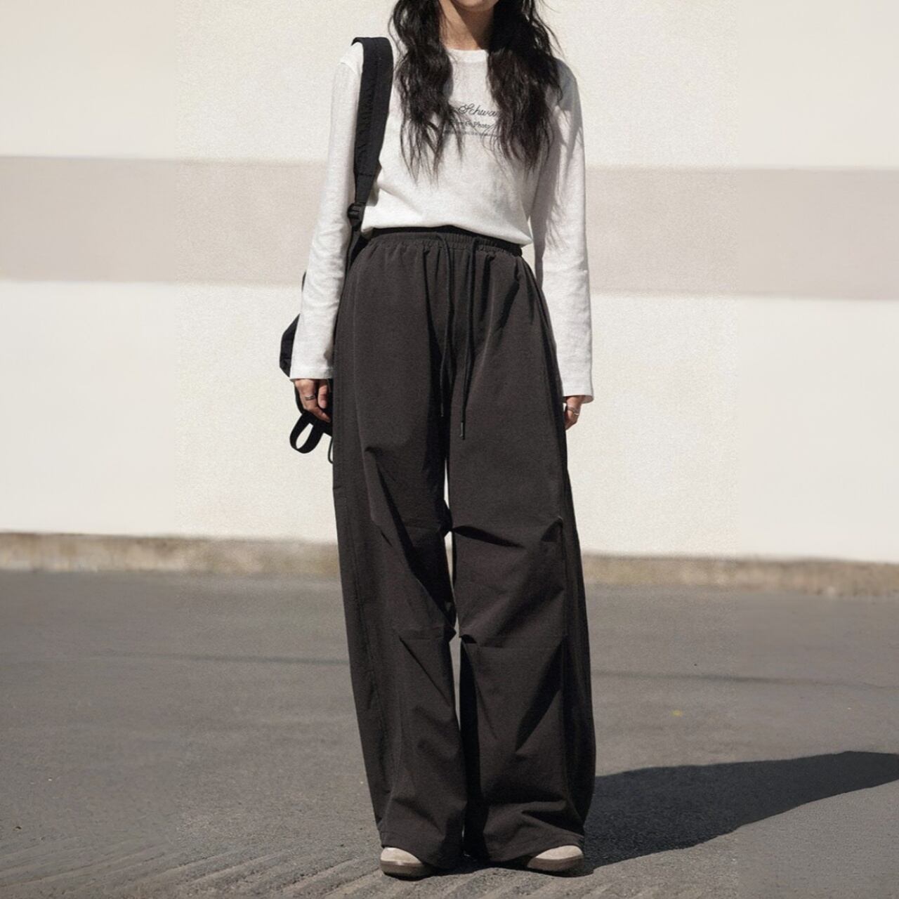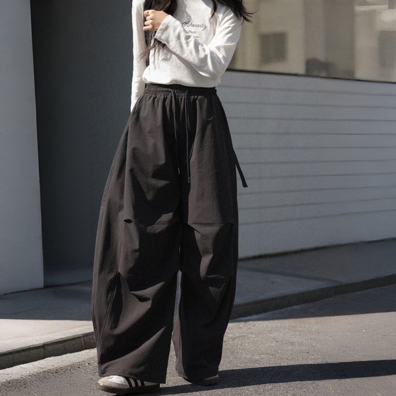 ウエストはドローストリング仕様で、ストレスフリーな穿き心地です。