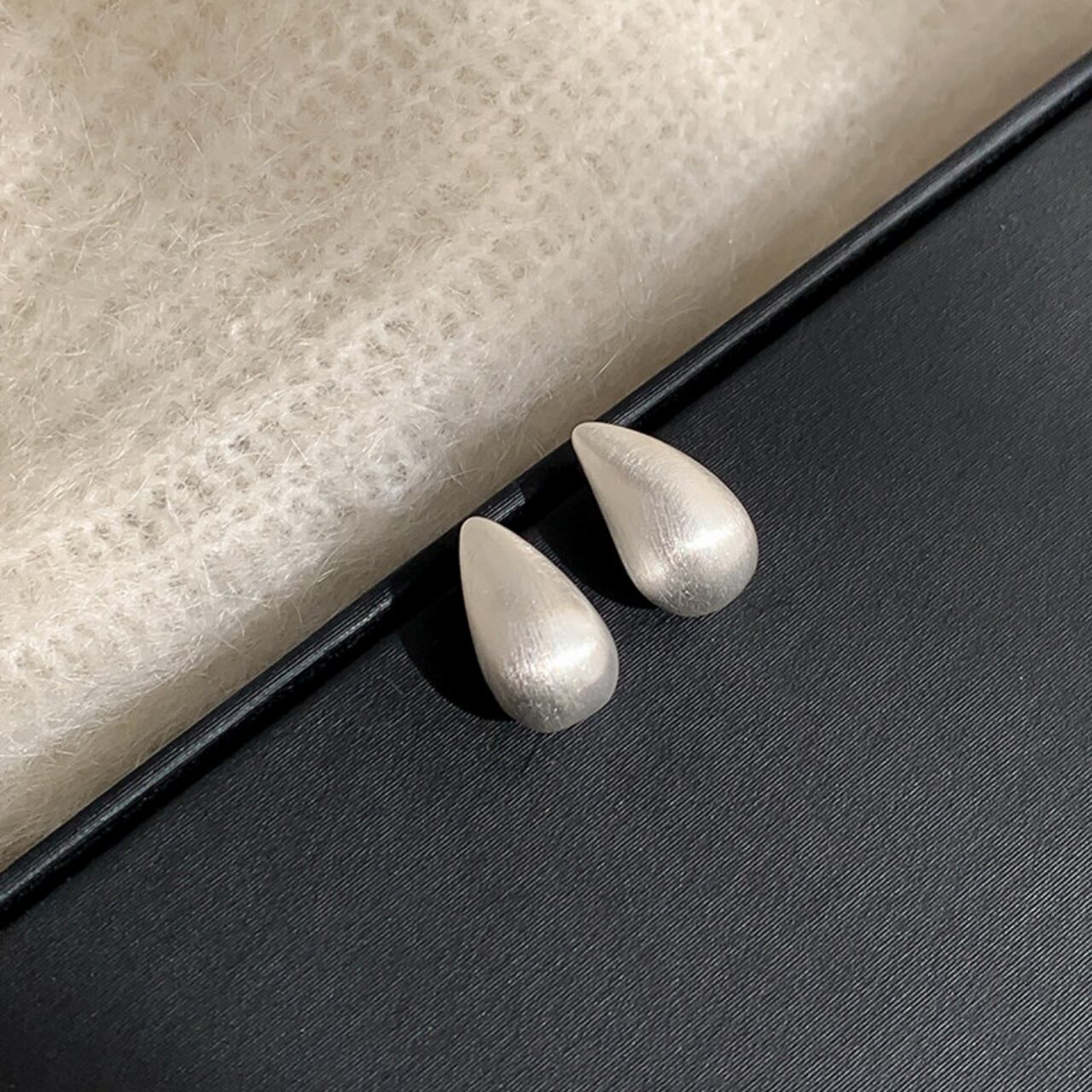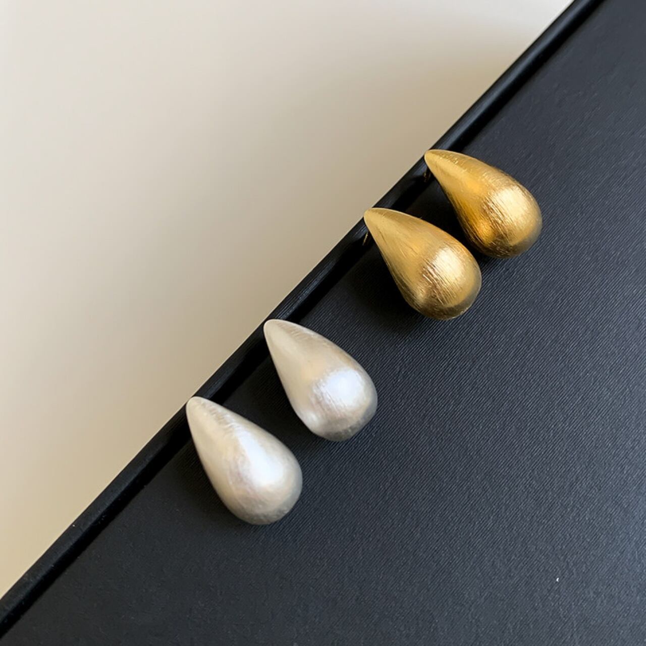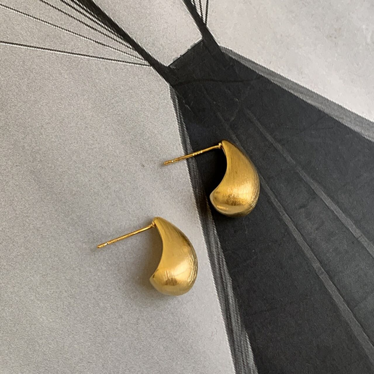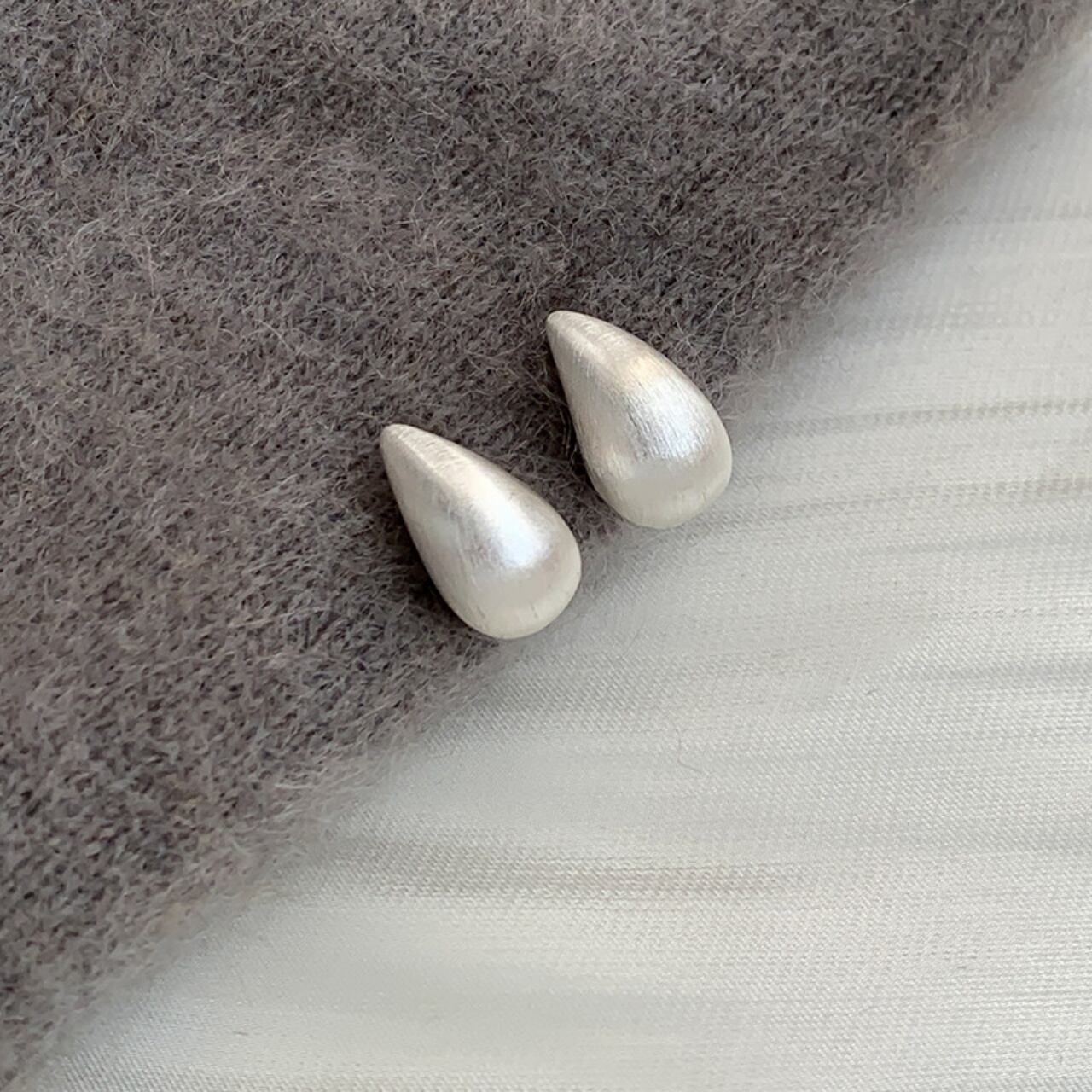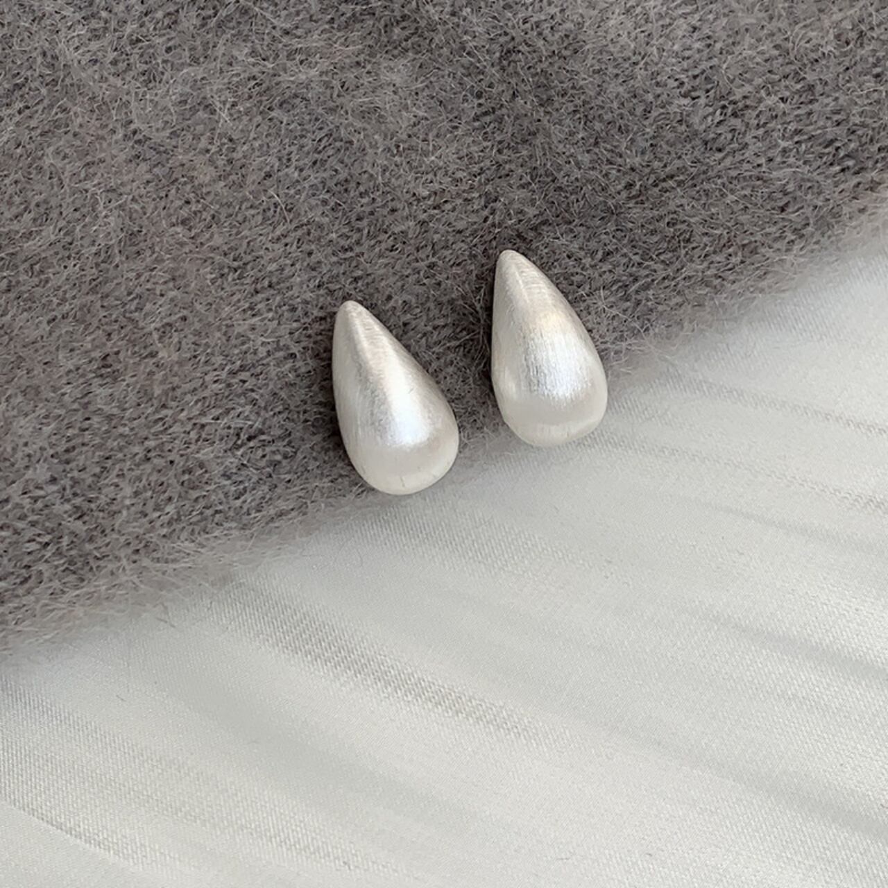 ティアドロップマットメタルスタッドピアス A02086