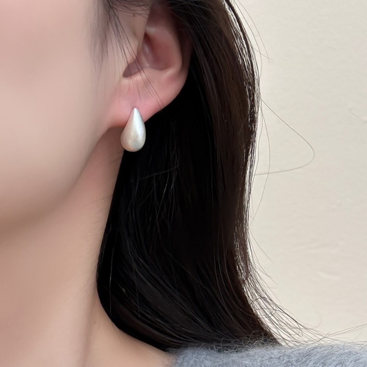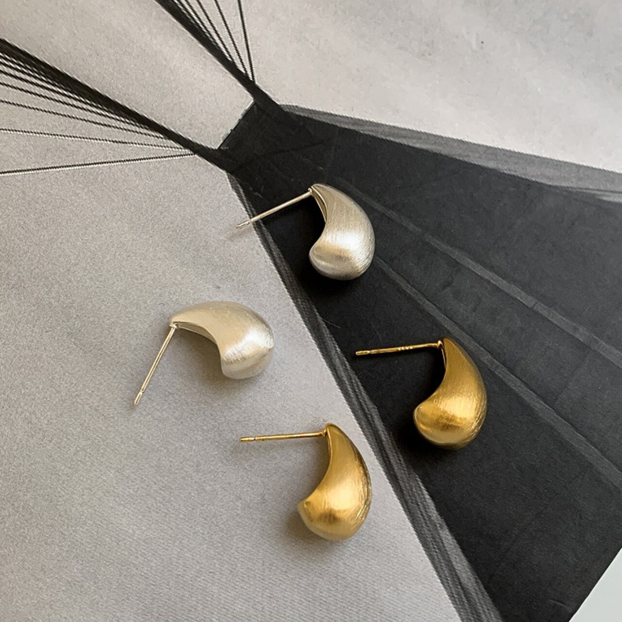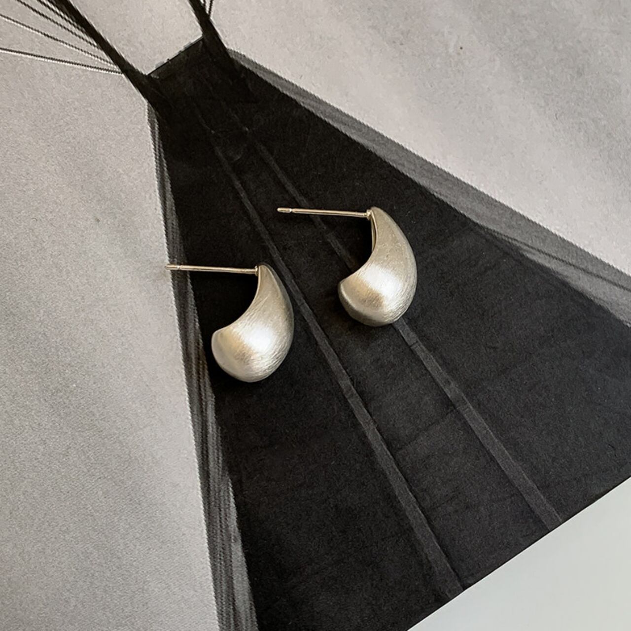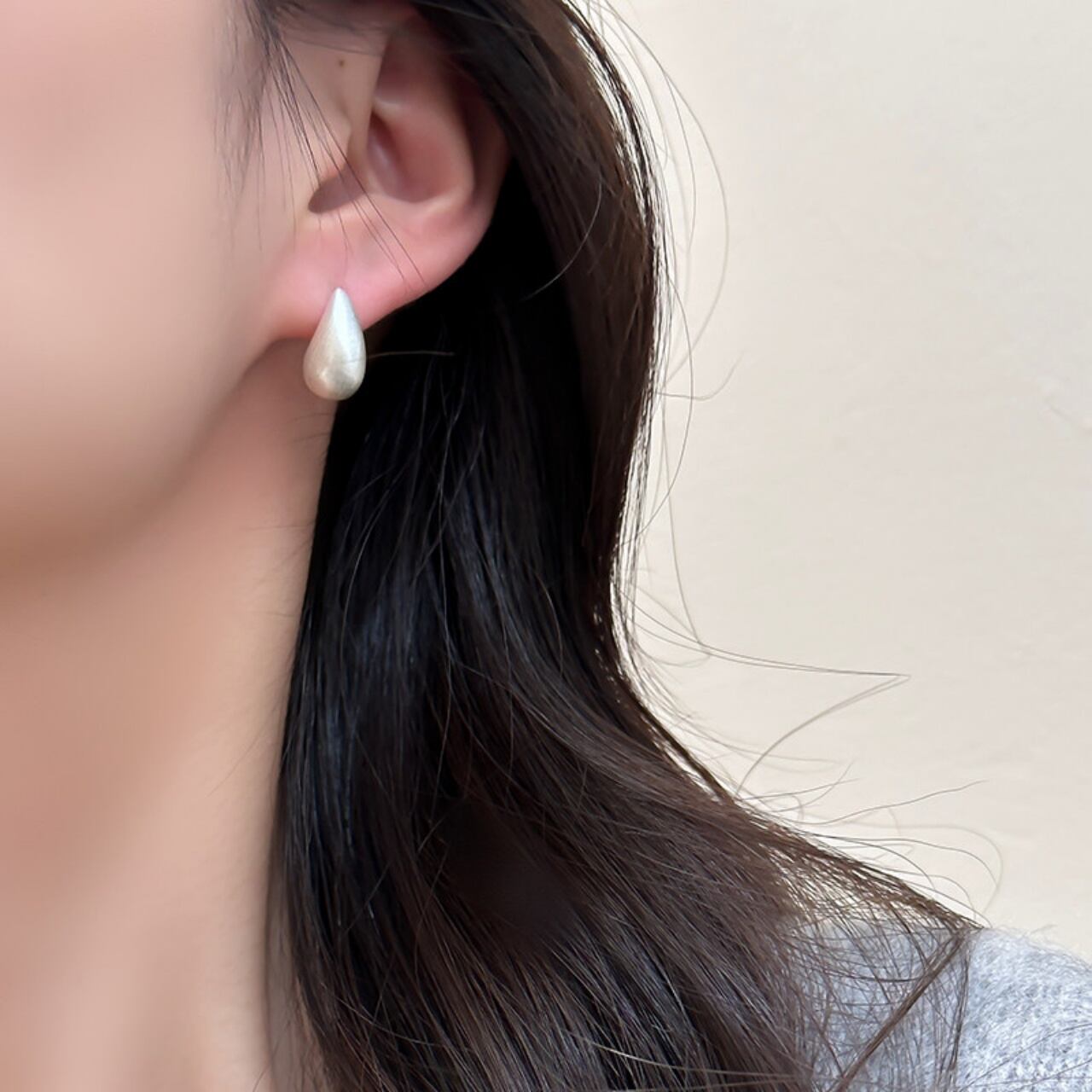 ティアドロップマットメタルスタッドピアス A02086