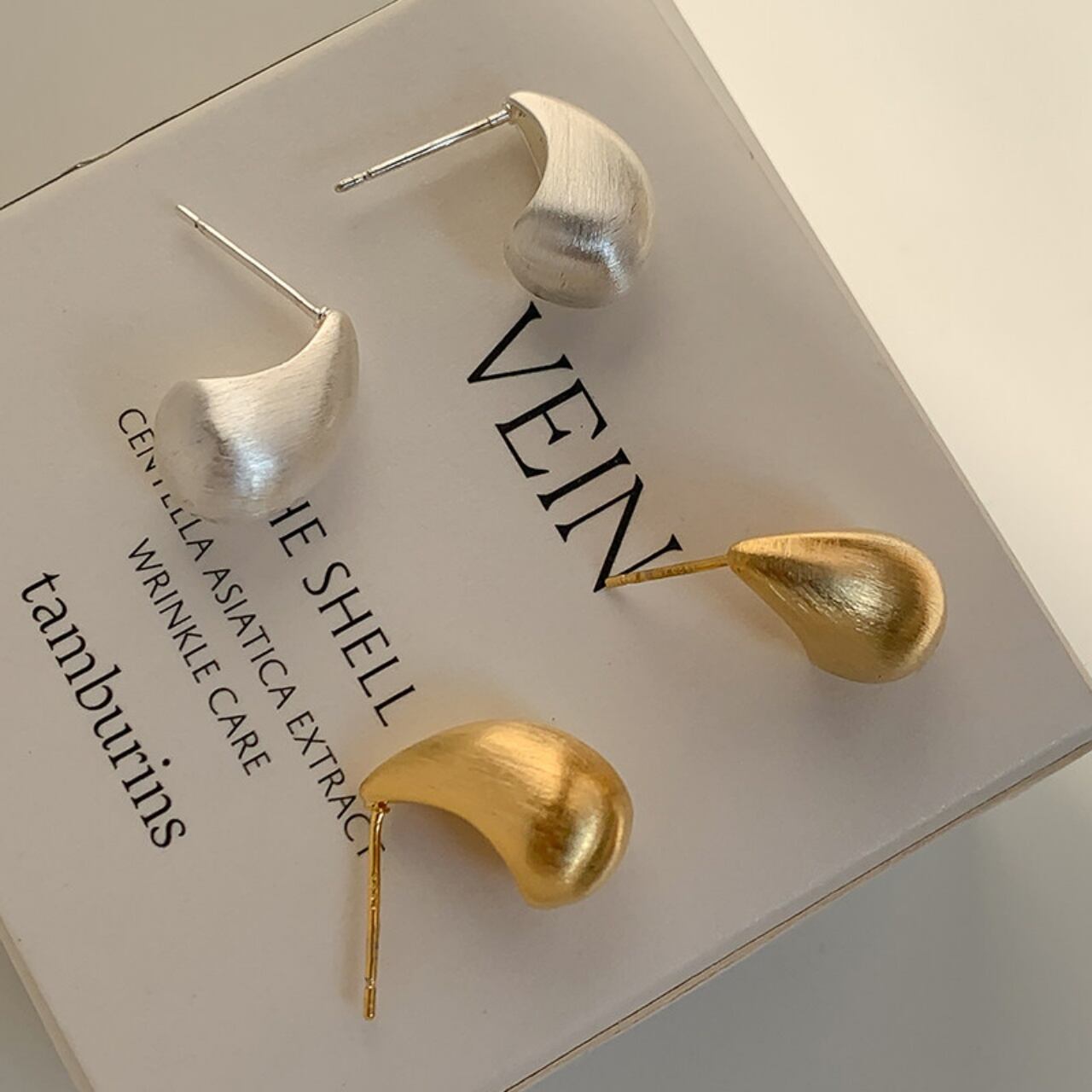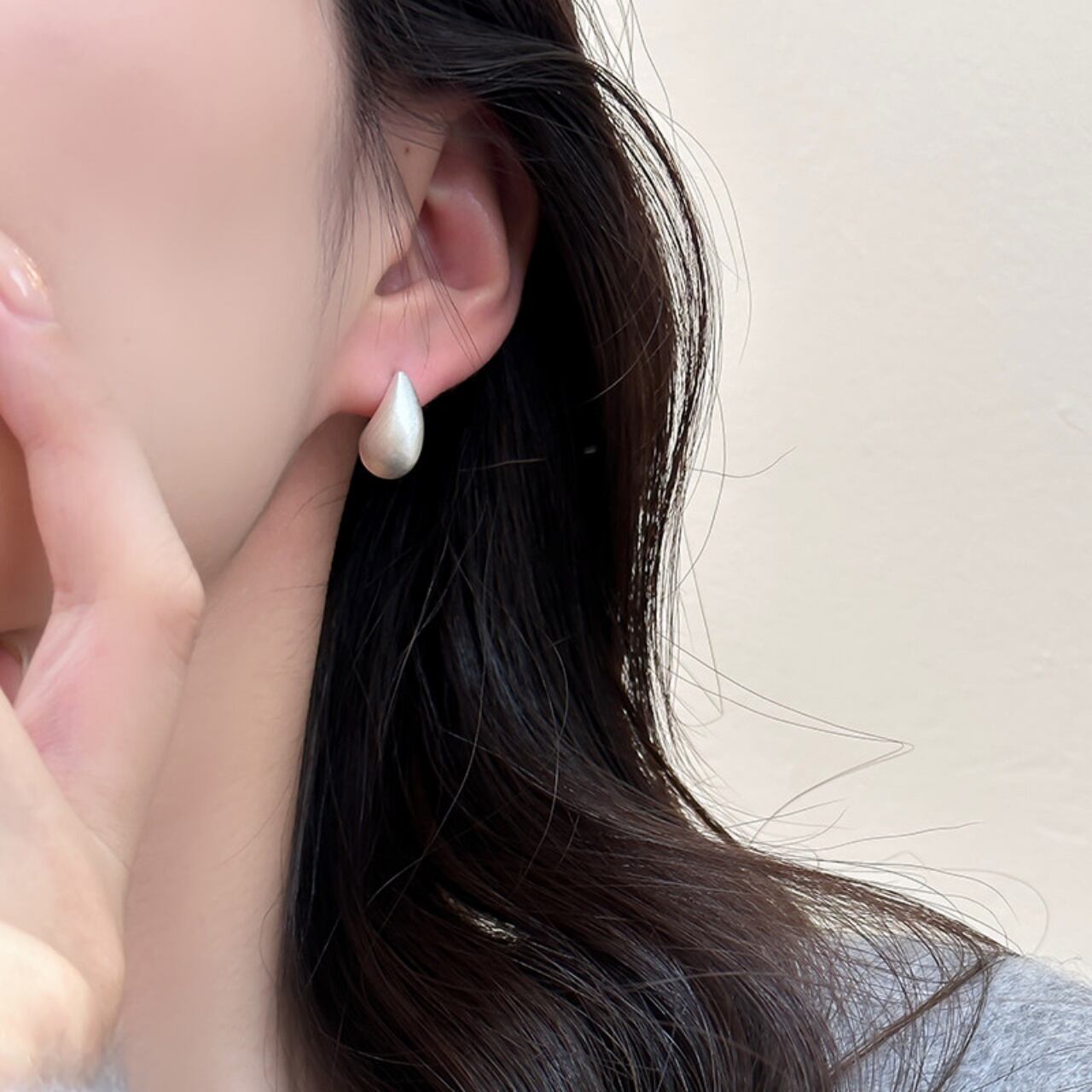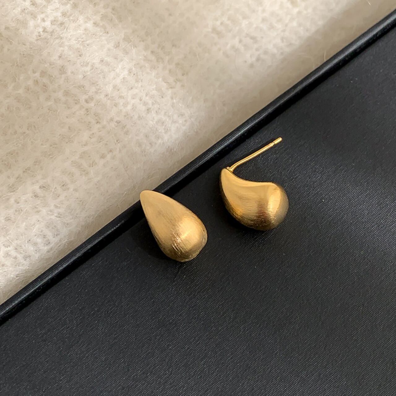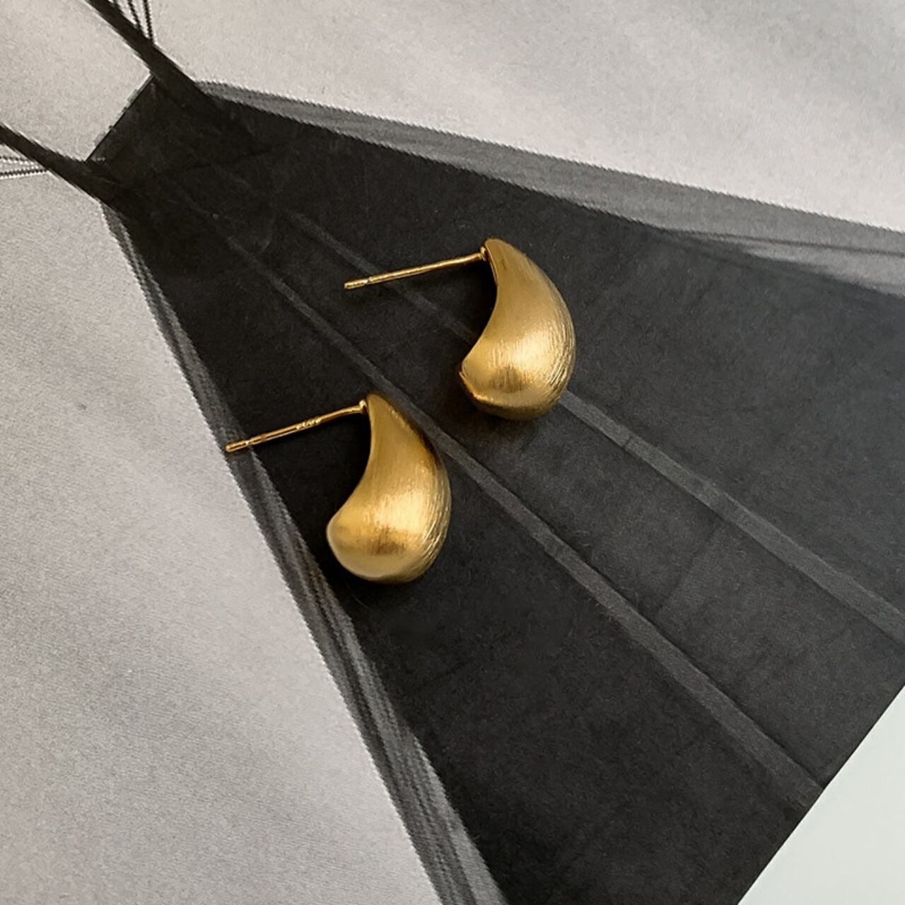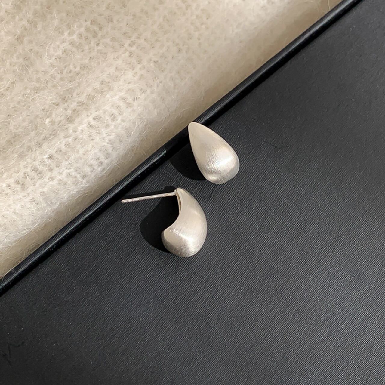 ティアドロップマットメタルスタッドピアス A02086