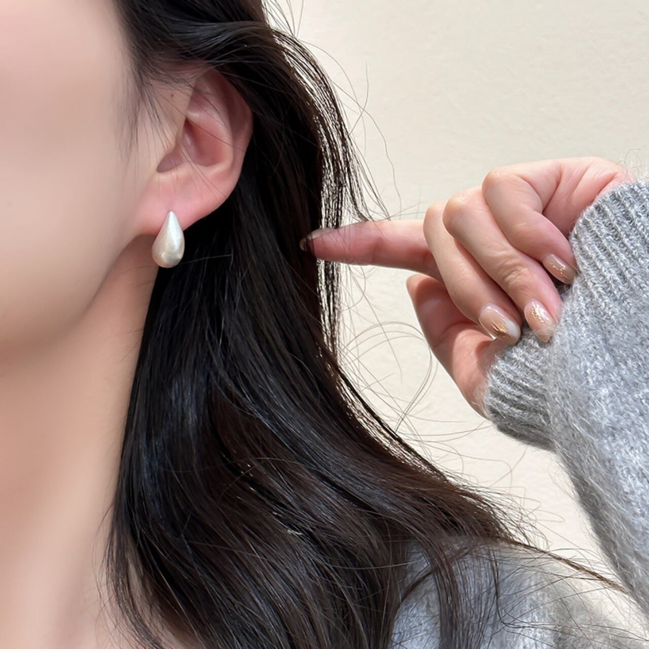 ドロップの曲線美が、耳元に洗練された大人のニュアンスを添えるデザイン。