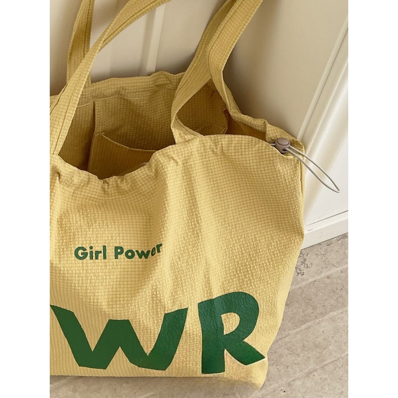 ドローストリング仕様で荷物に合わせてシルエットを調整でき、中身が見えず安心です。