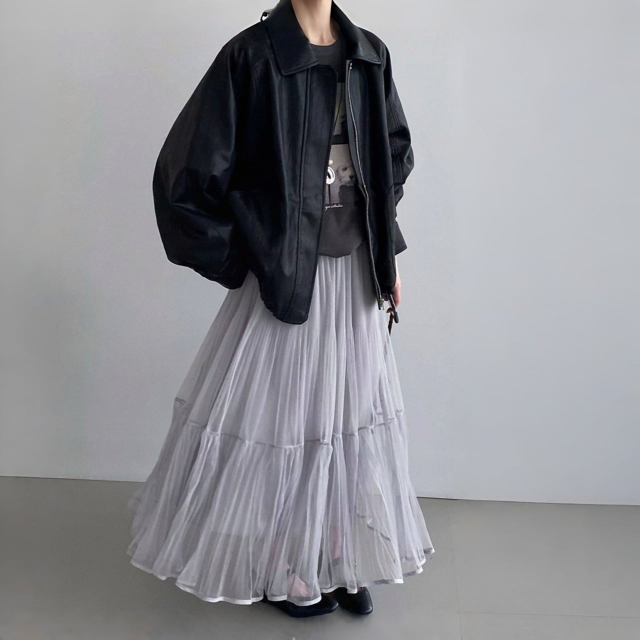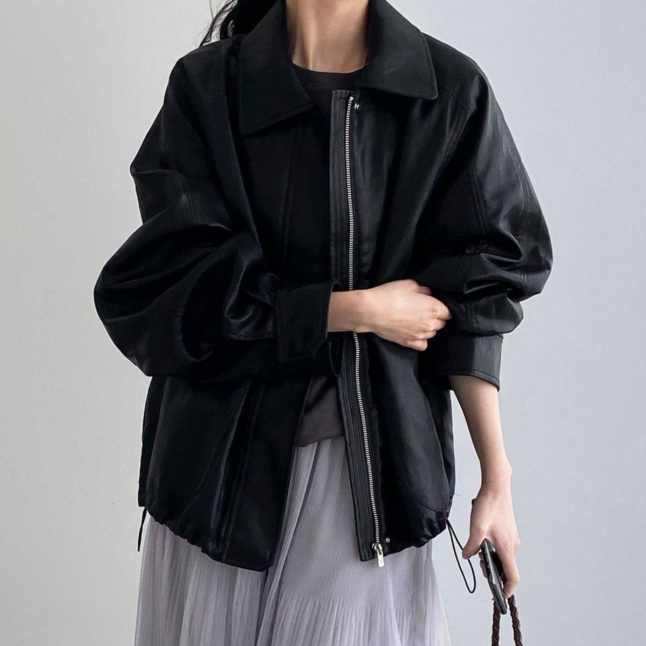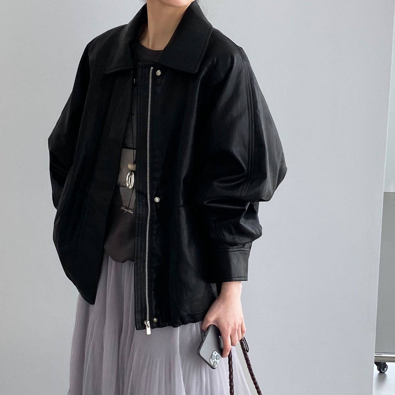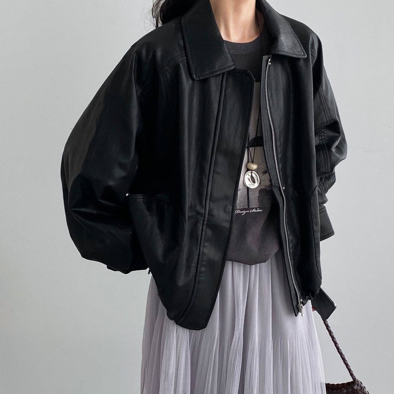オーバーサイズフェイクレザージップショートブルゾン A02100