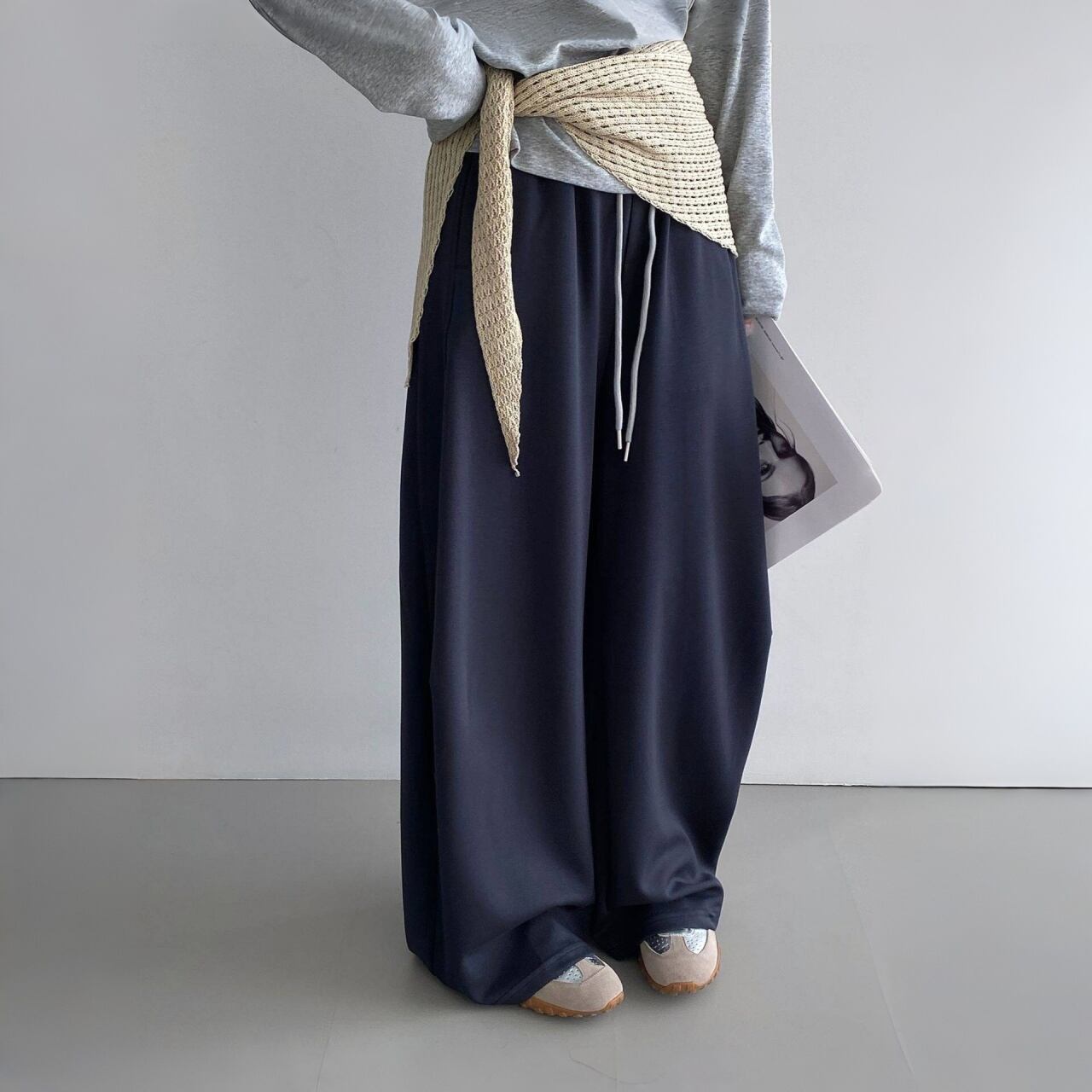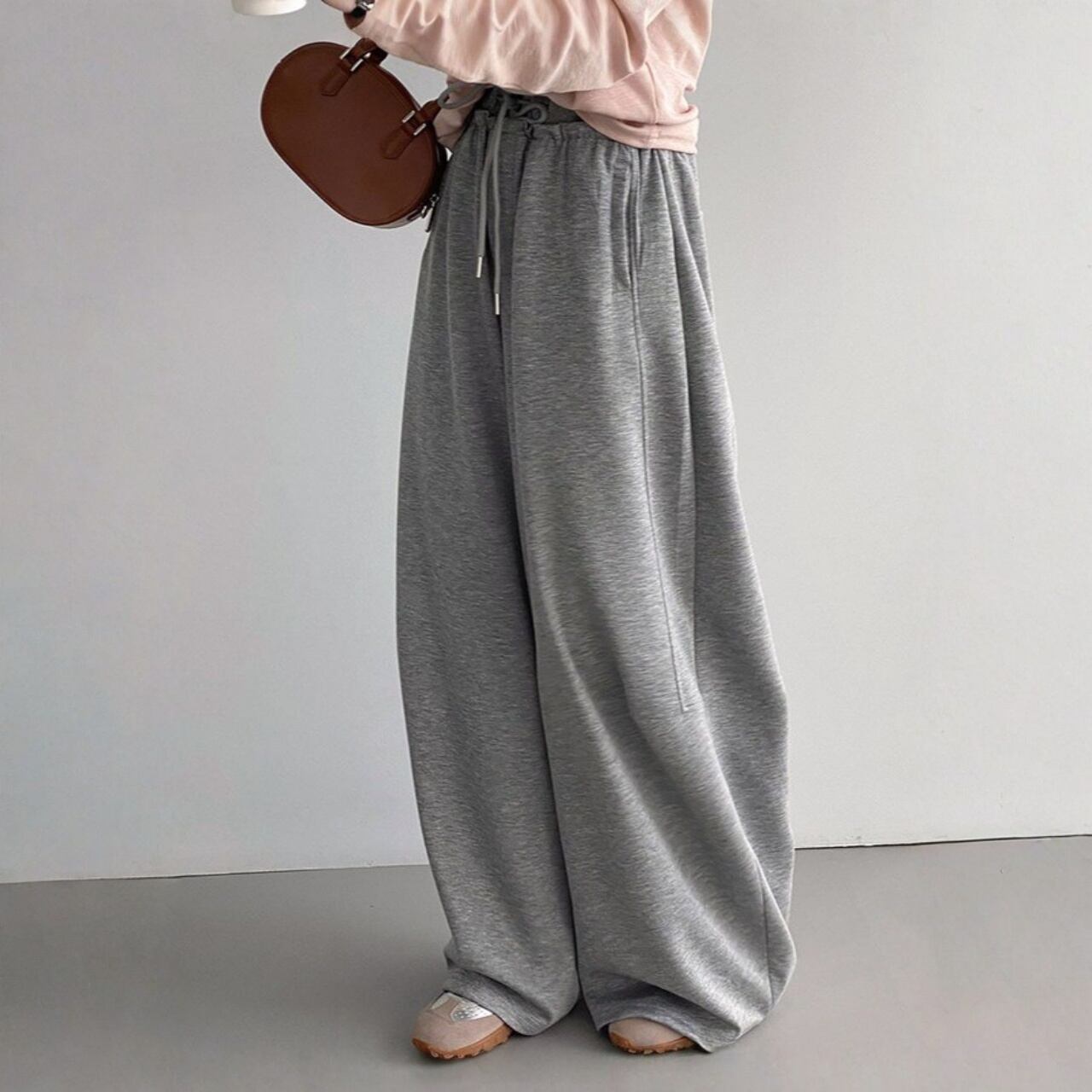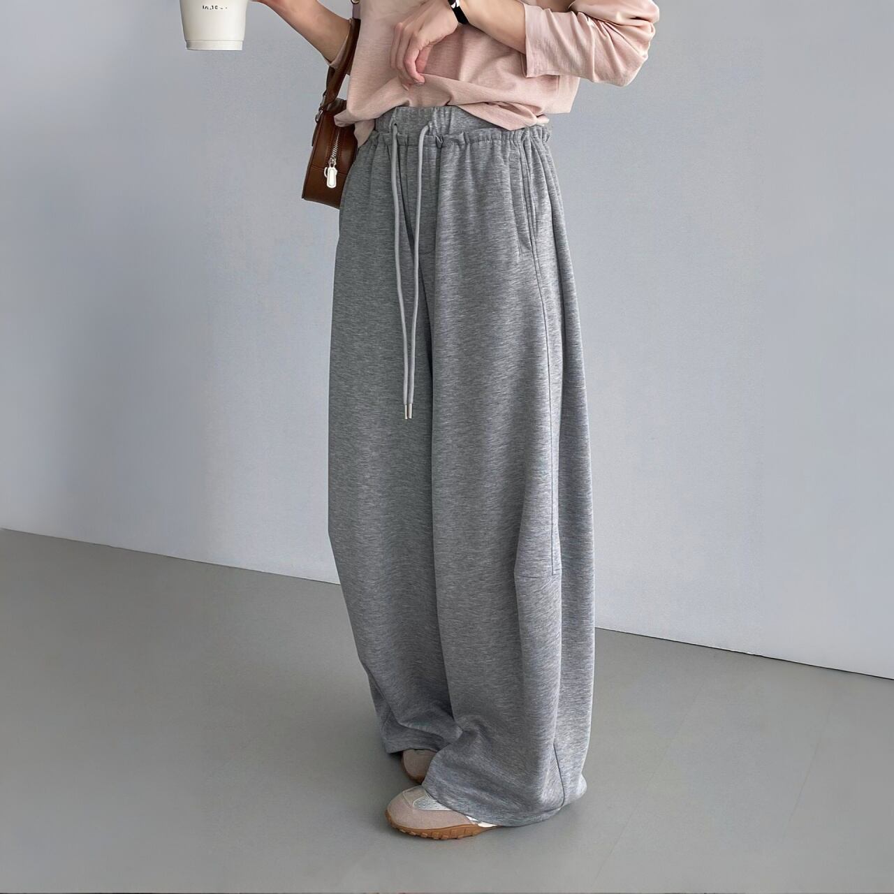 リラックス感漂うワイドスウェットパンツ。