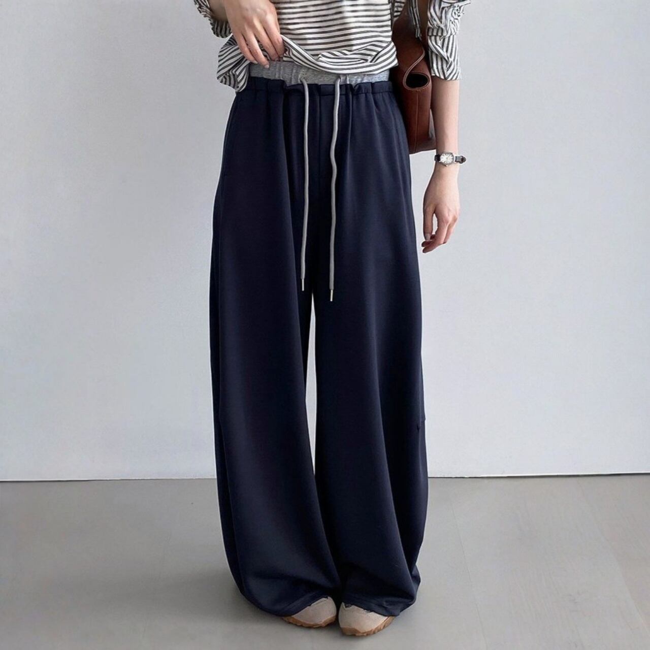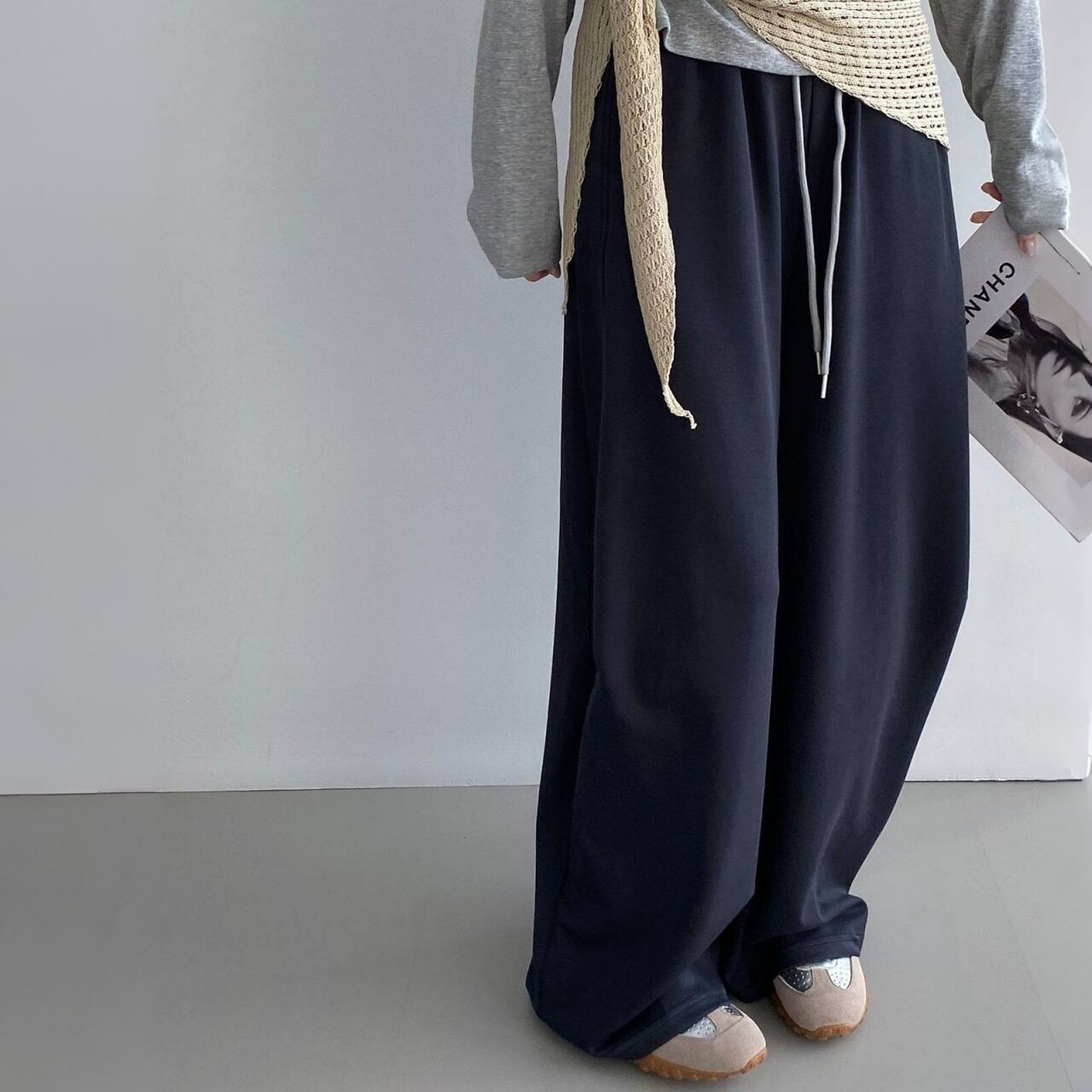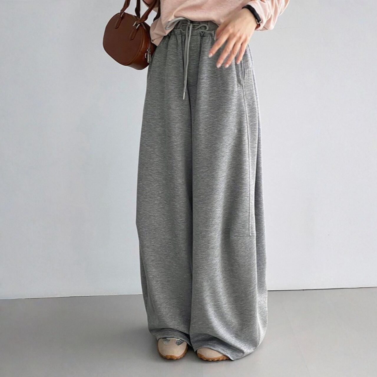 リラックス感漂うワイドスウェットパンツ。