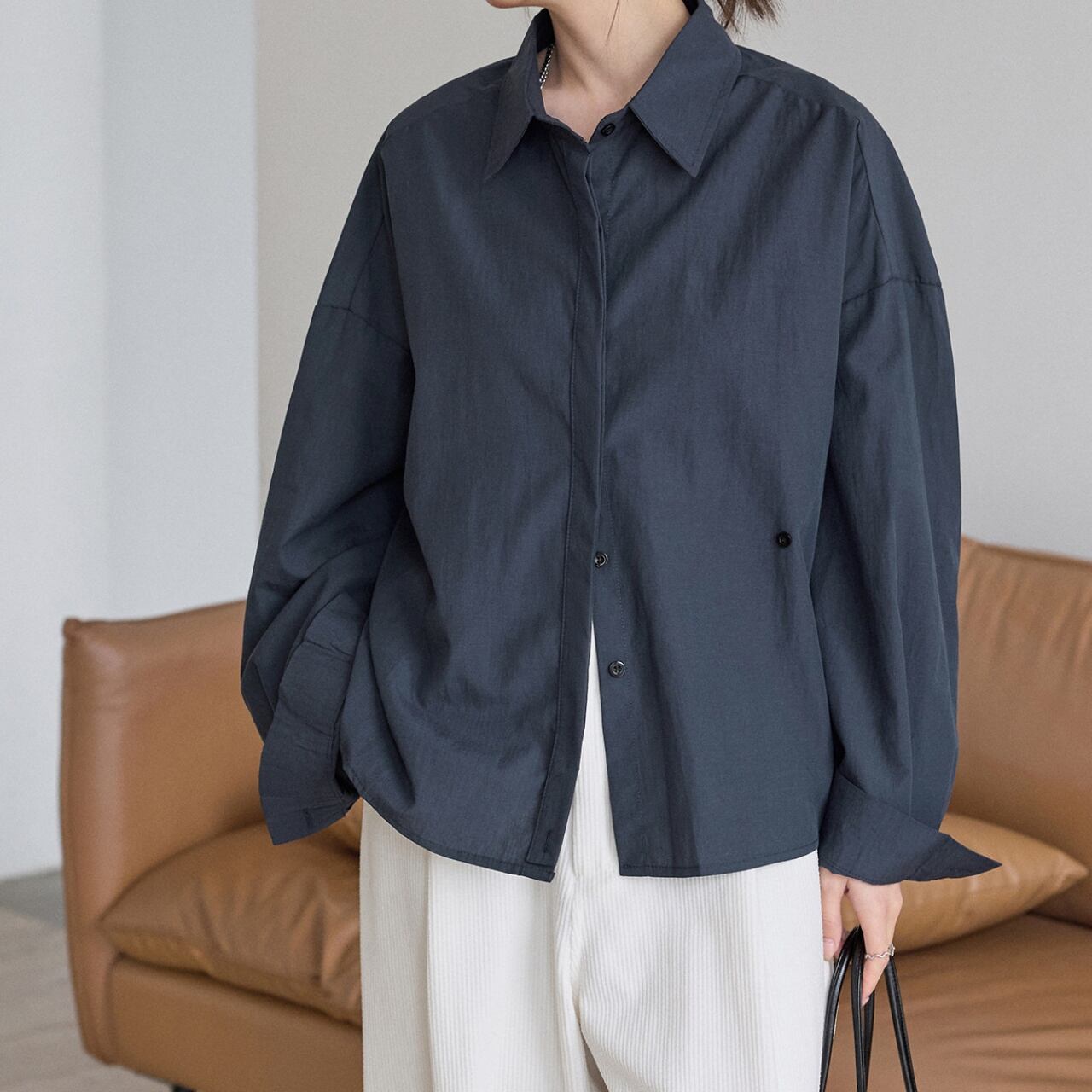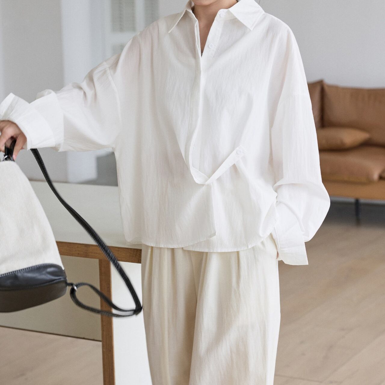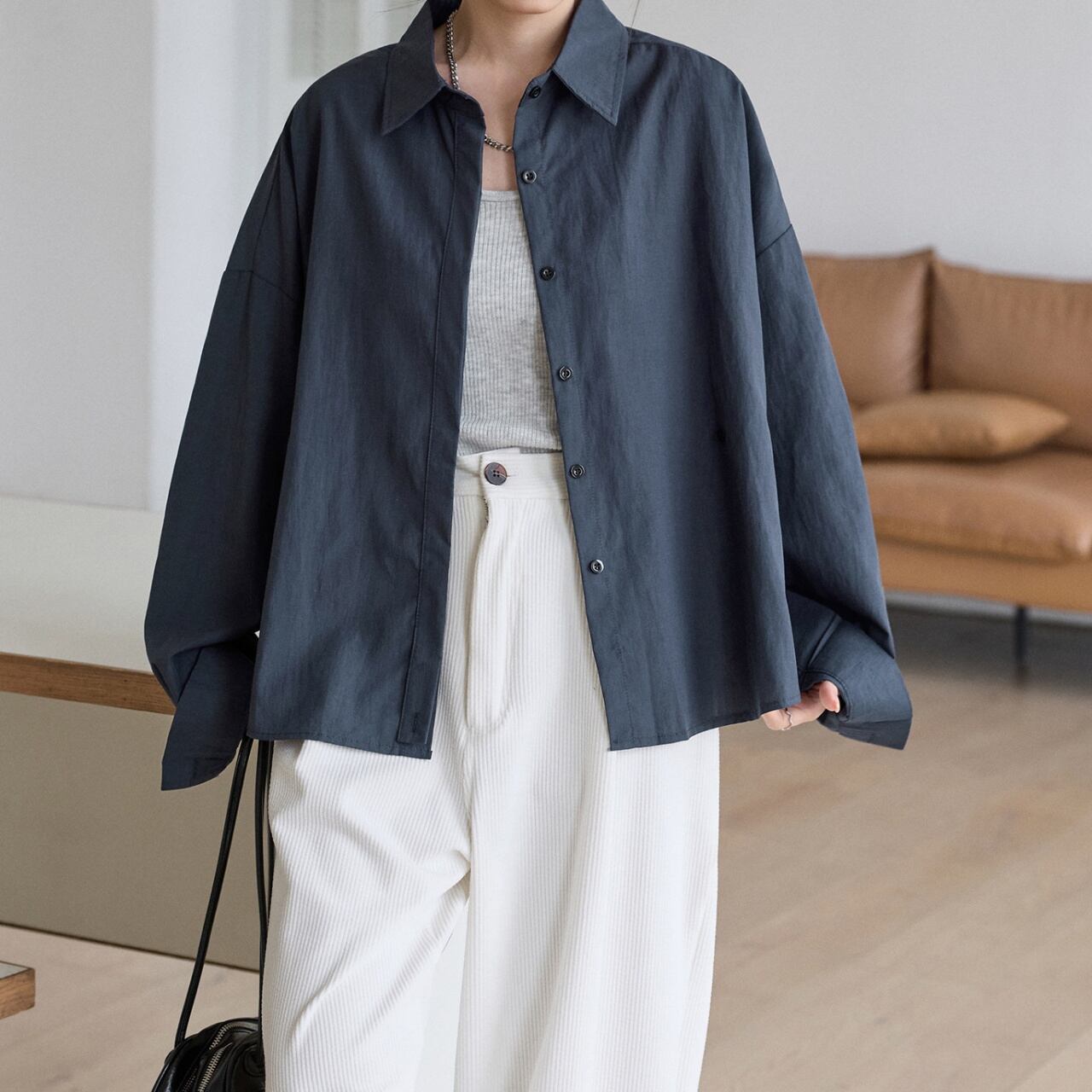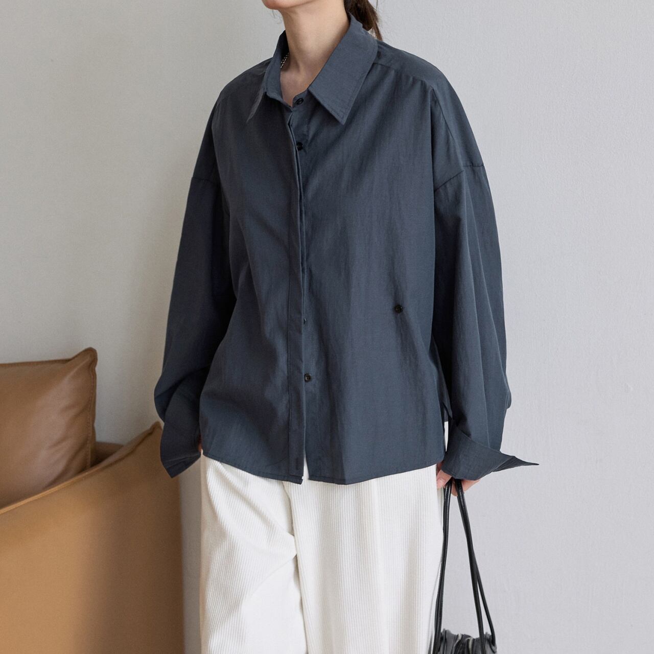 体を包み込むゆったりとしたオーバーシルエットで、抜け感のある着こなしに。