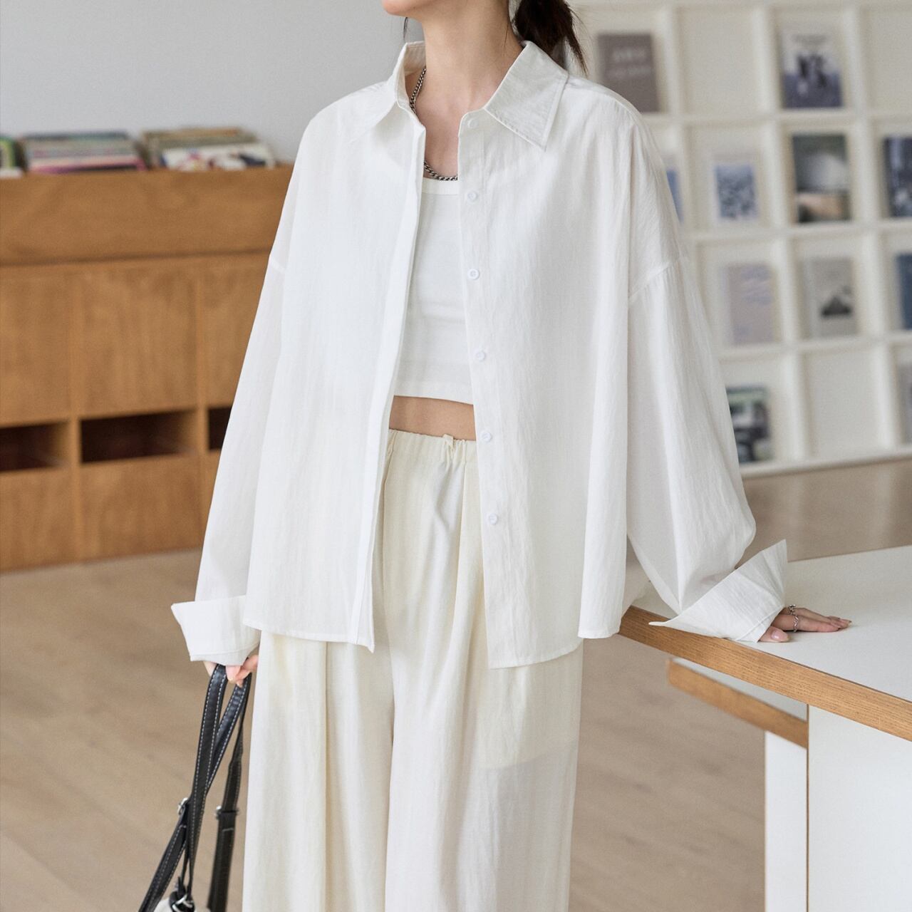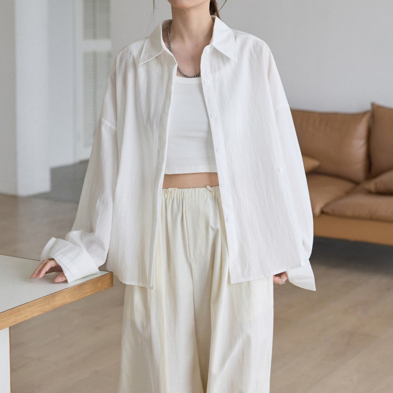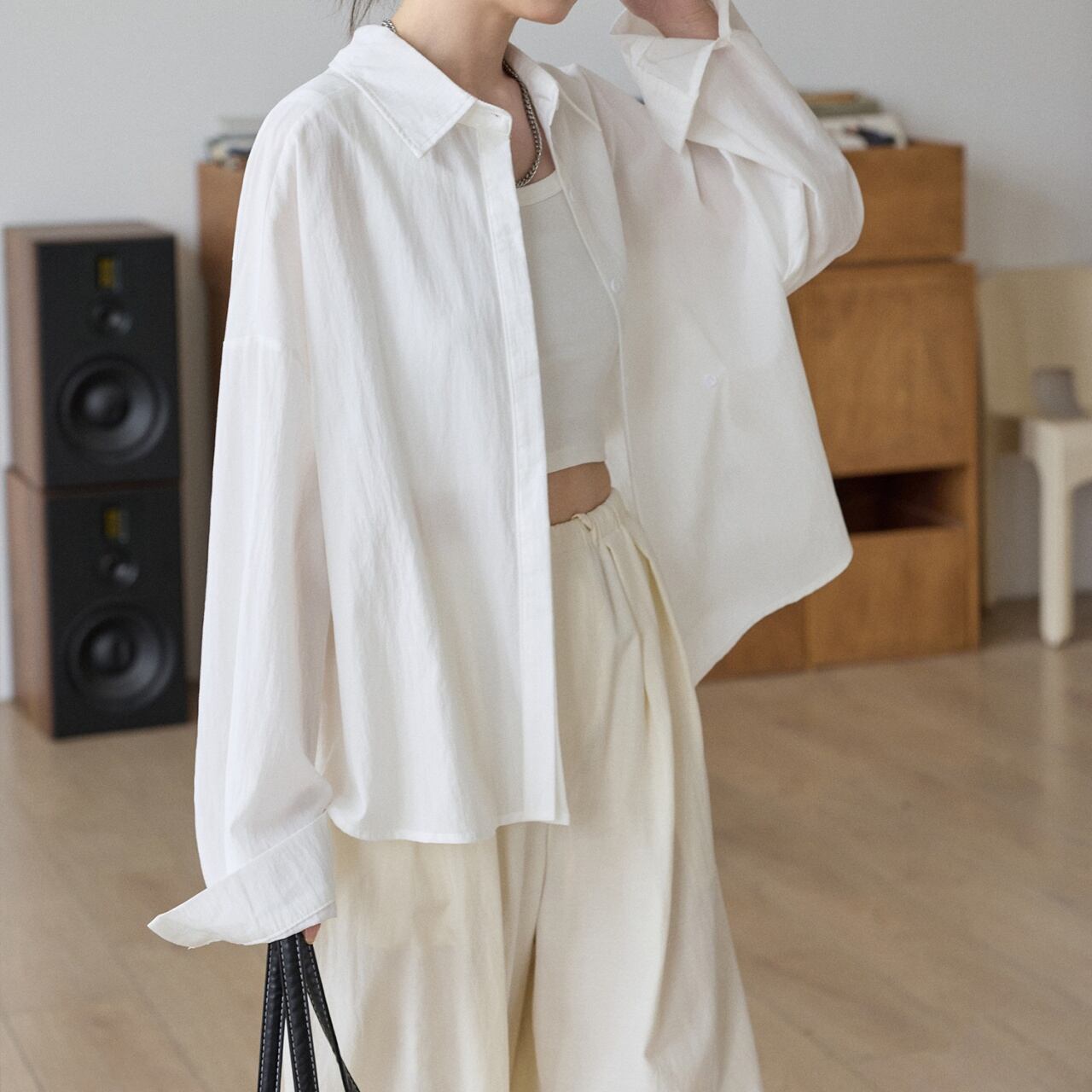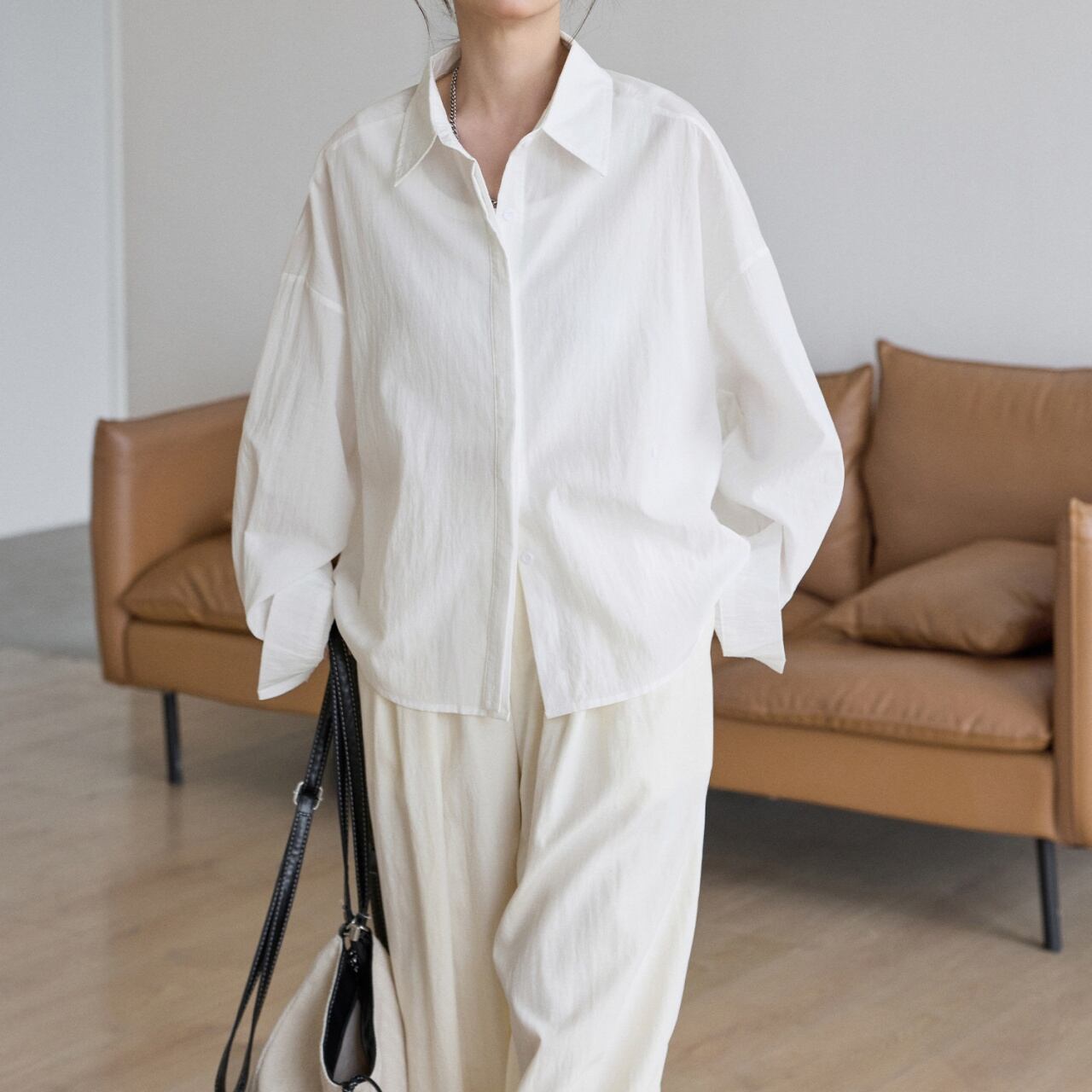体を包み込むゆったりとしたオーバーシルエットで、抜け感のある着こなしに。