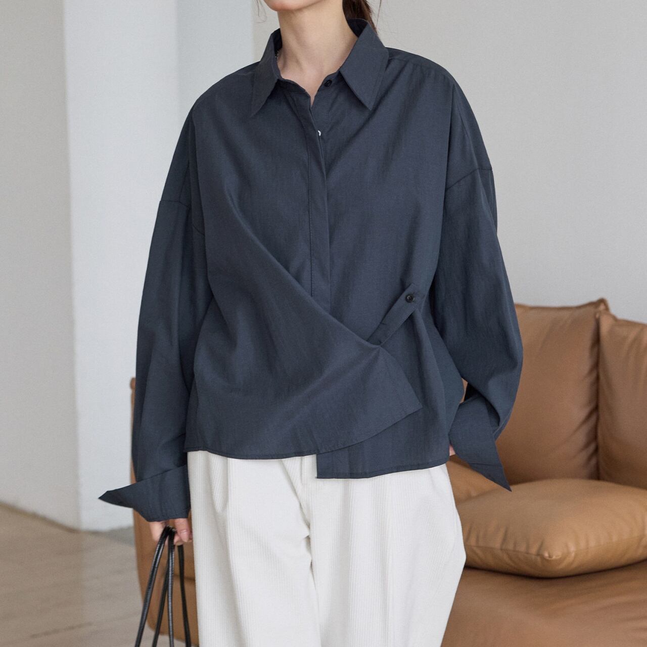 自然なドレープとアシンメトリーな裾ラインで、360度どこから見てもサマになります。