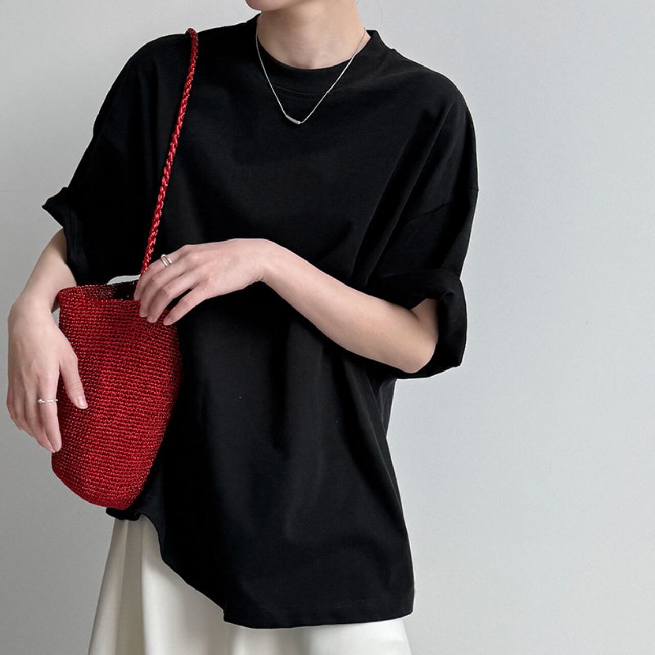 モックネックオーバーサイズ ドロップショルダーTシャツ A02109