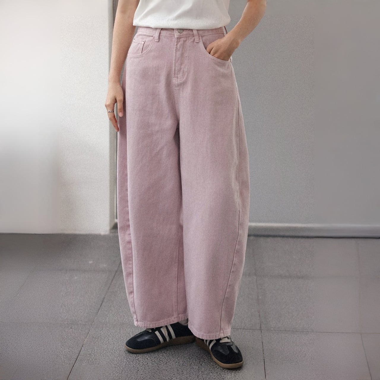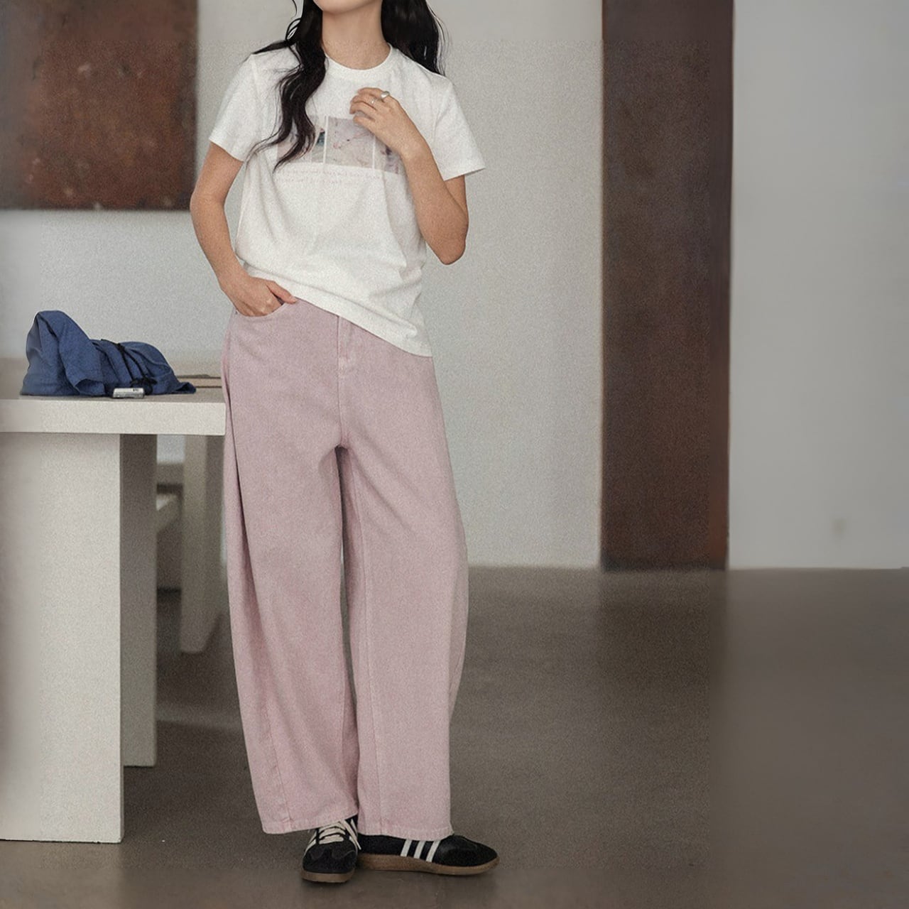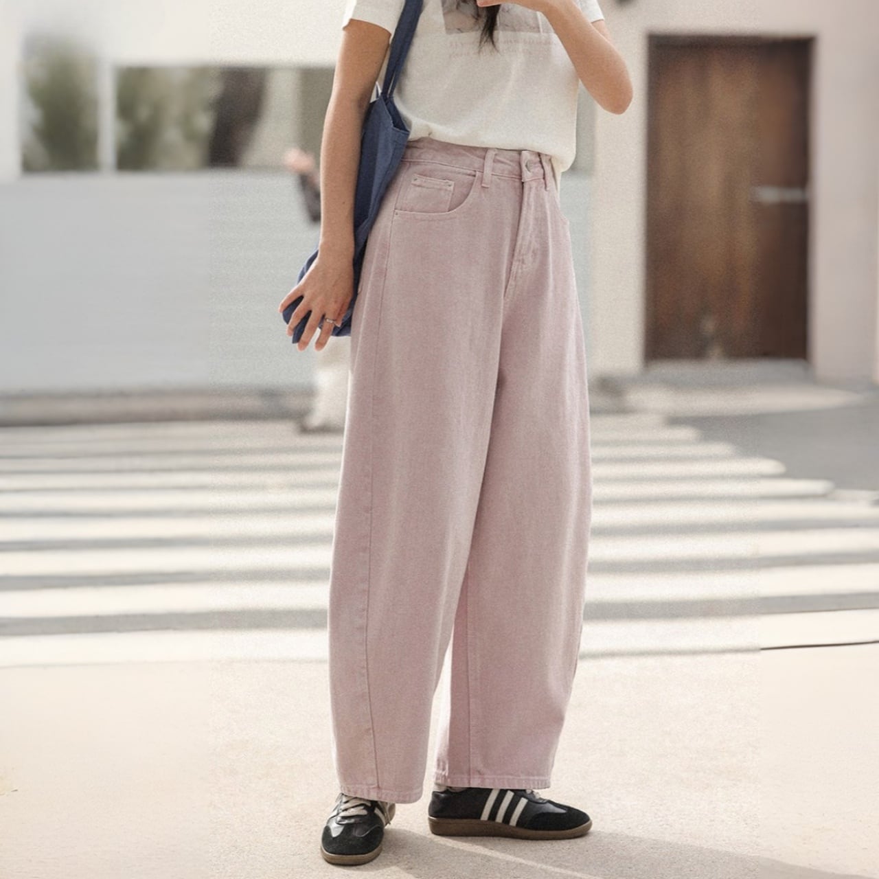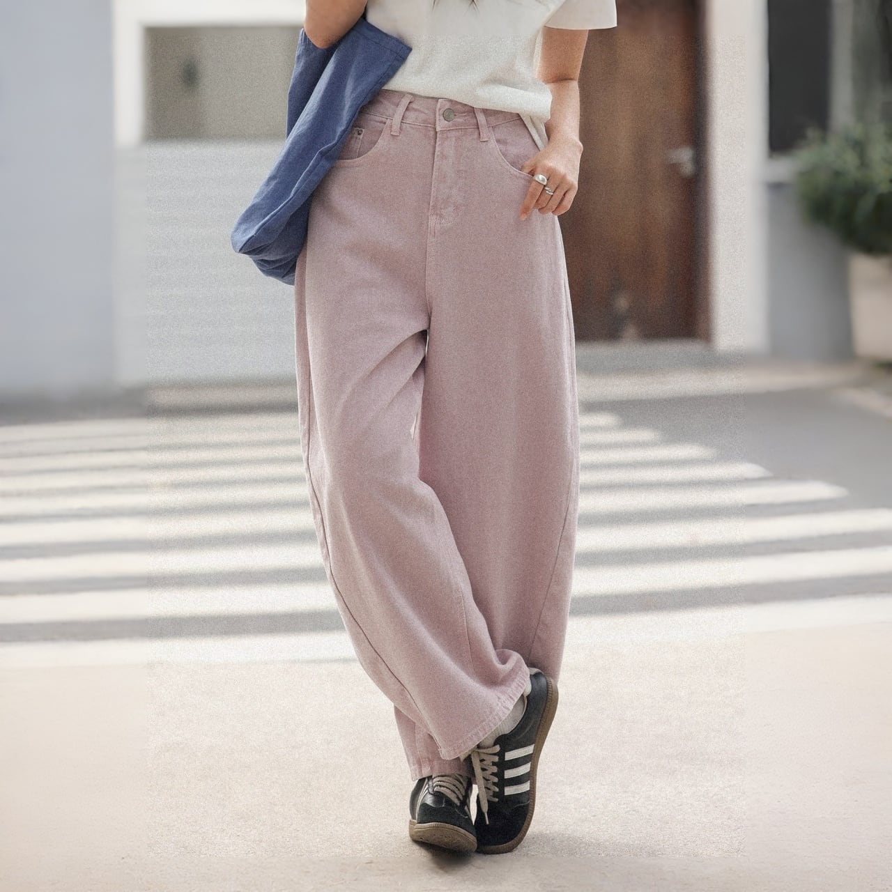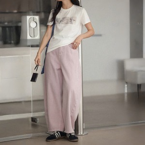 ワイドレッグで脚のラインをカバーしつつ動きやすく、脚長効果も。