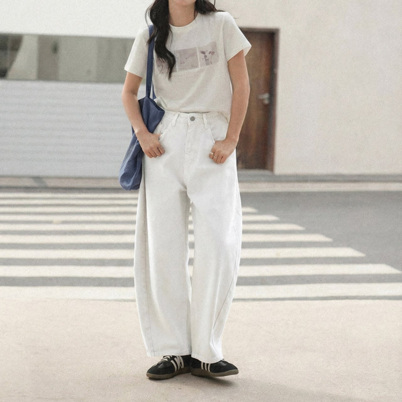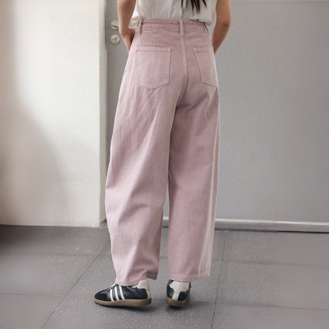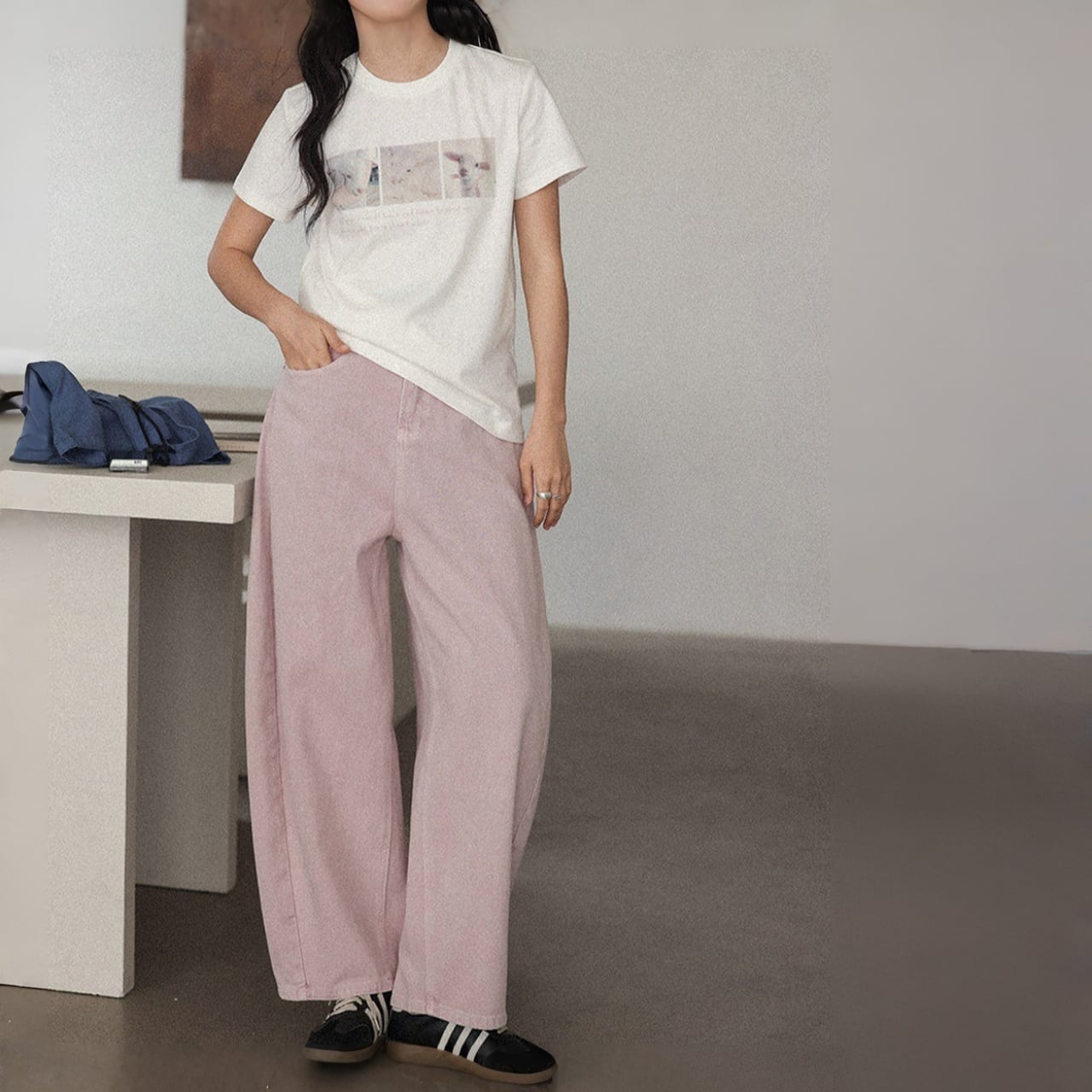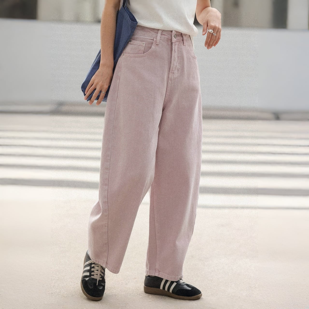 ワイドレッグで脚のラインをカバーしつつ動きやすく、脚長効果も。