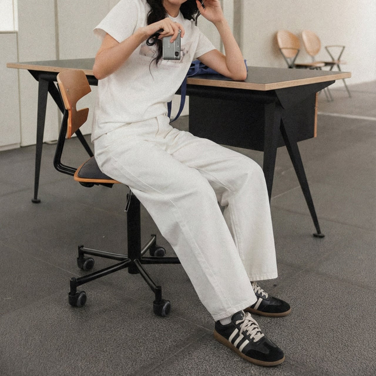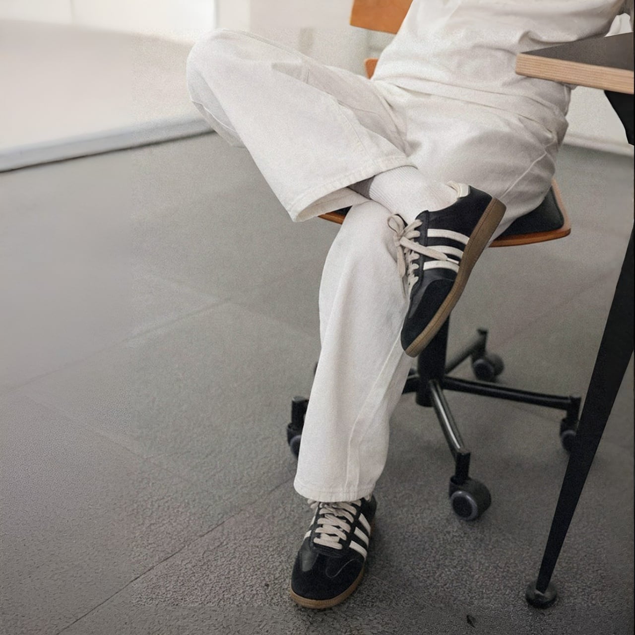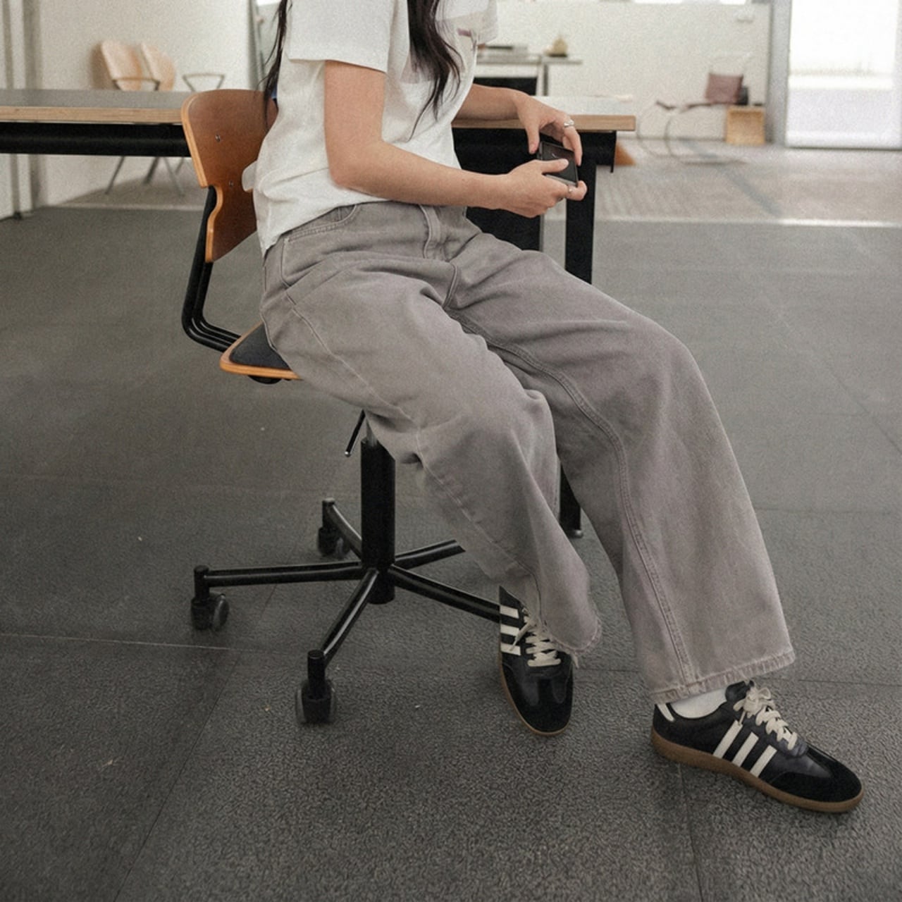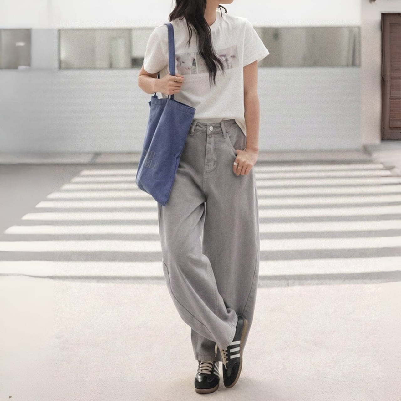 ワイドレッグで脚のラインをカバーしつつ動きやすく、脚長効果も。