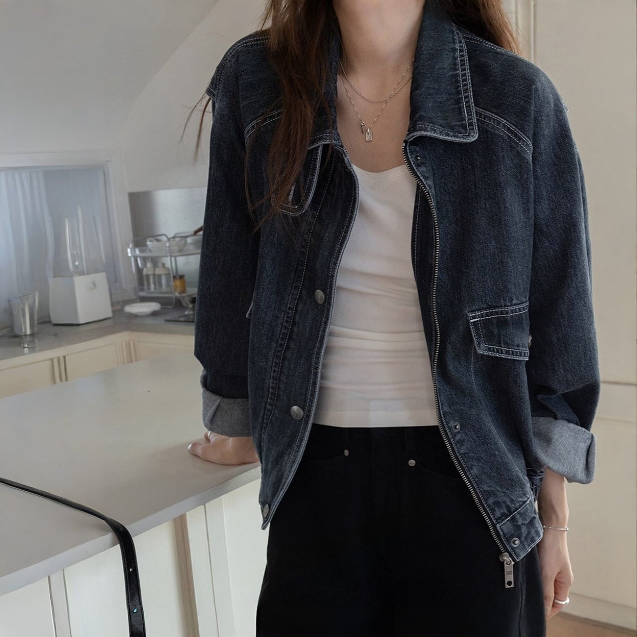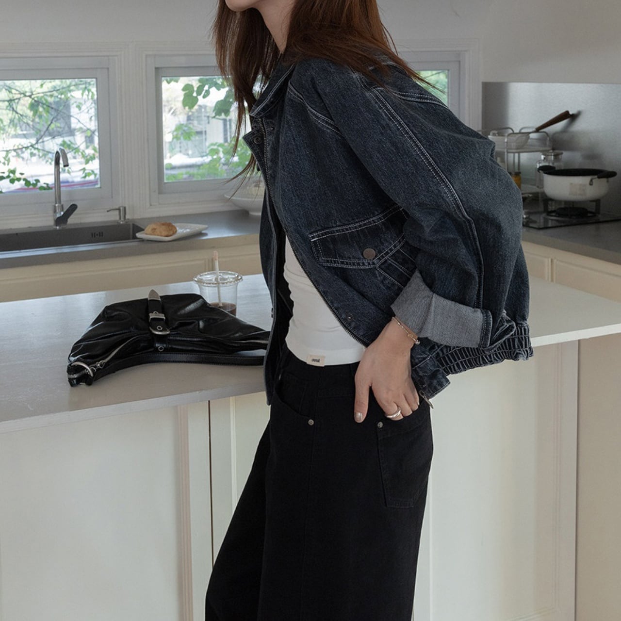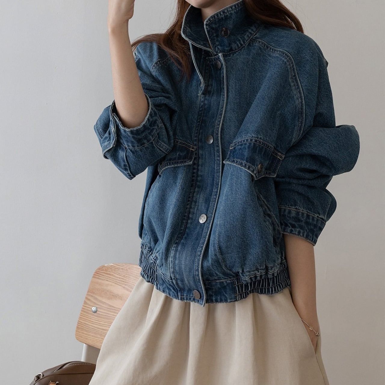 ヴィンテージウォッシュチンストラップスタンドカラーデニムブルゾン A02114