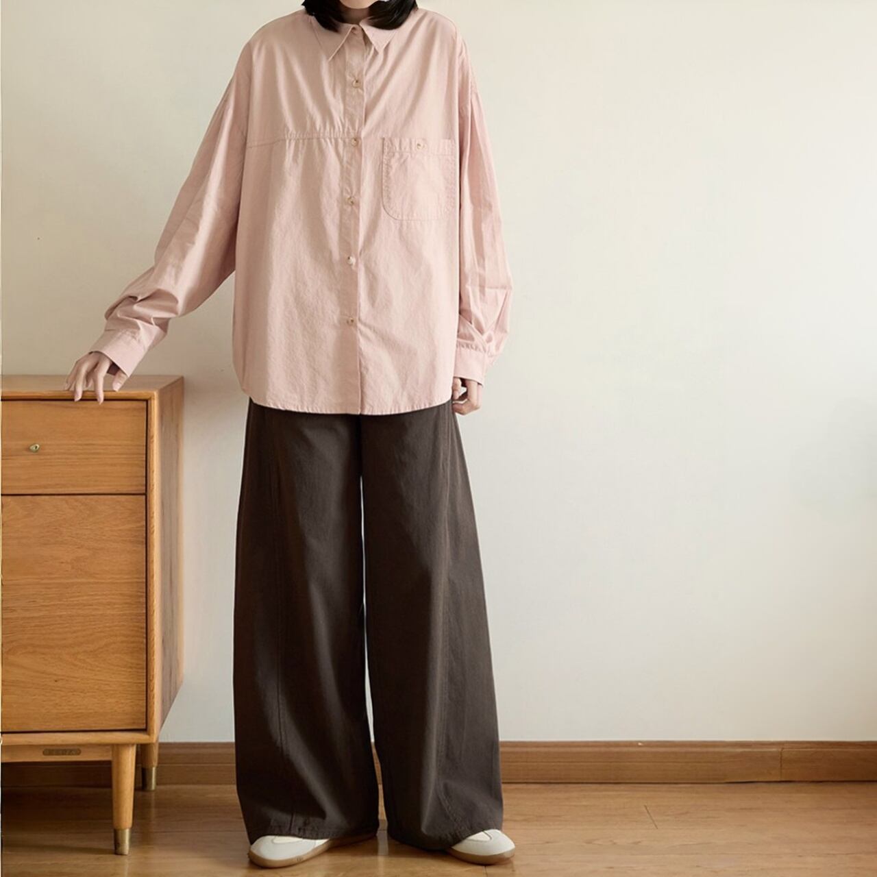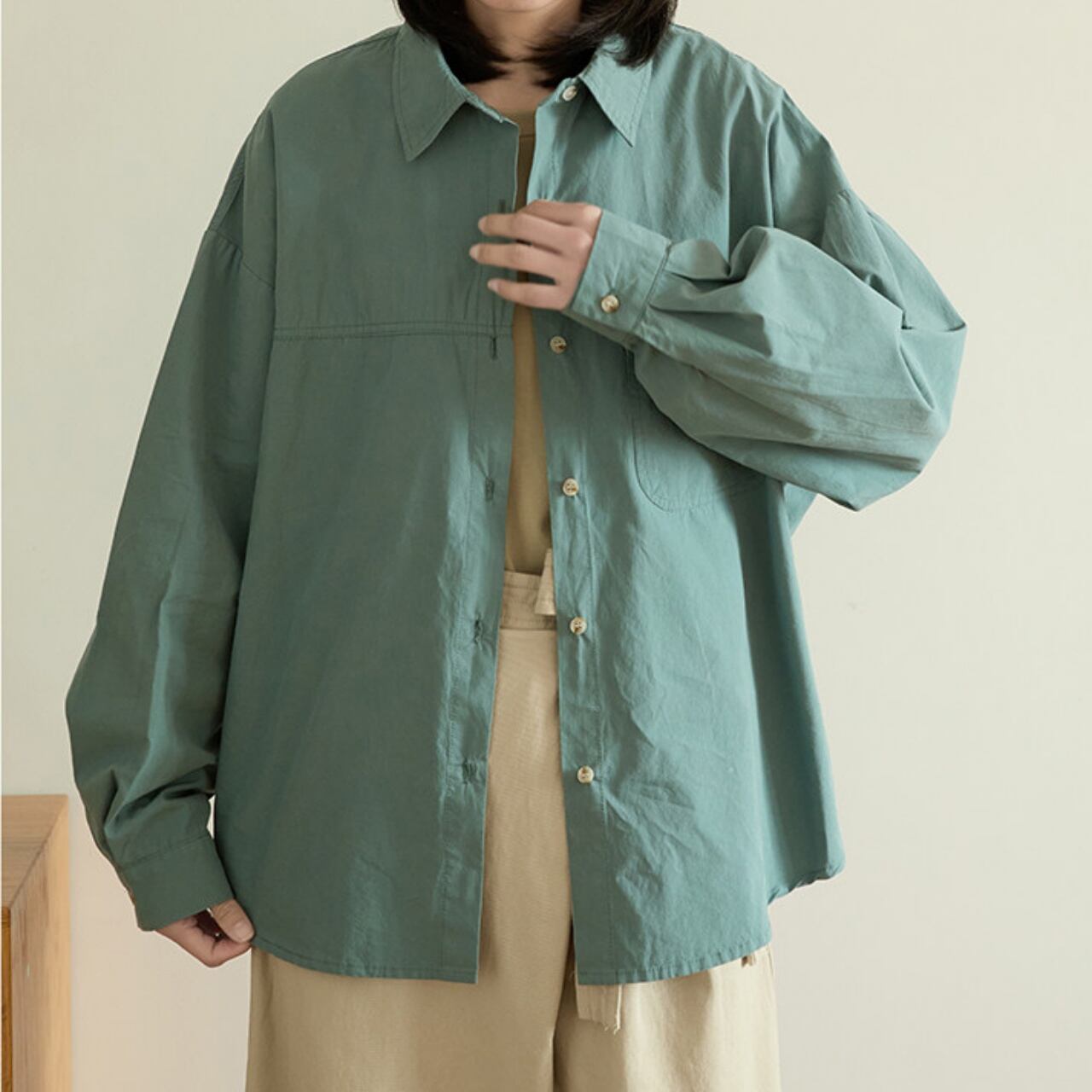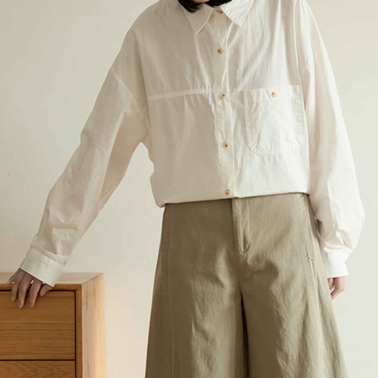 カジュアルスタイルにぴったりのルーズフィットワークシャツ。