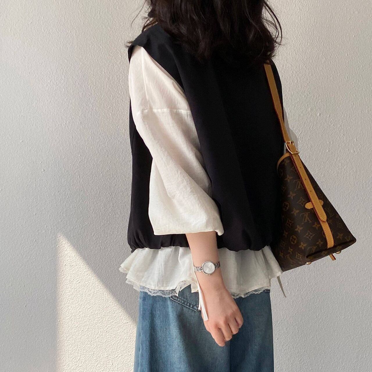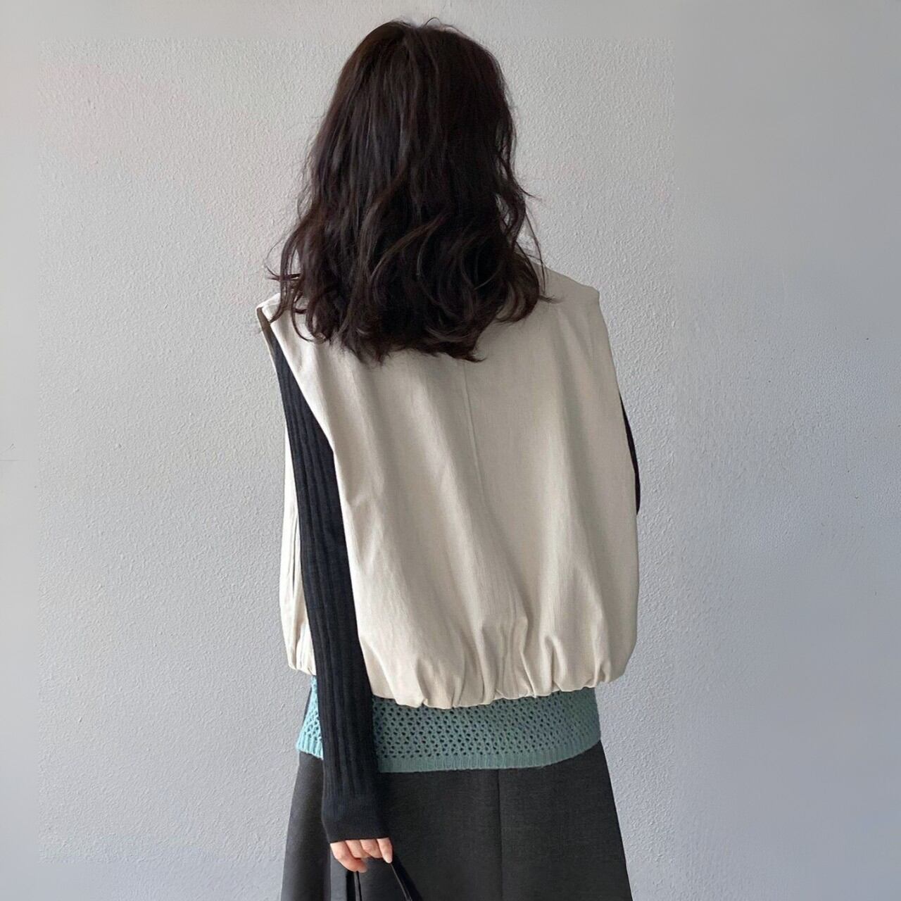 アームホールが広めなので、様々なトップスとレイヤードしやすいのが嬉しいポイント。