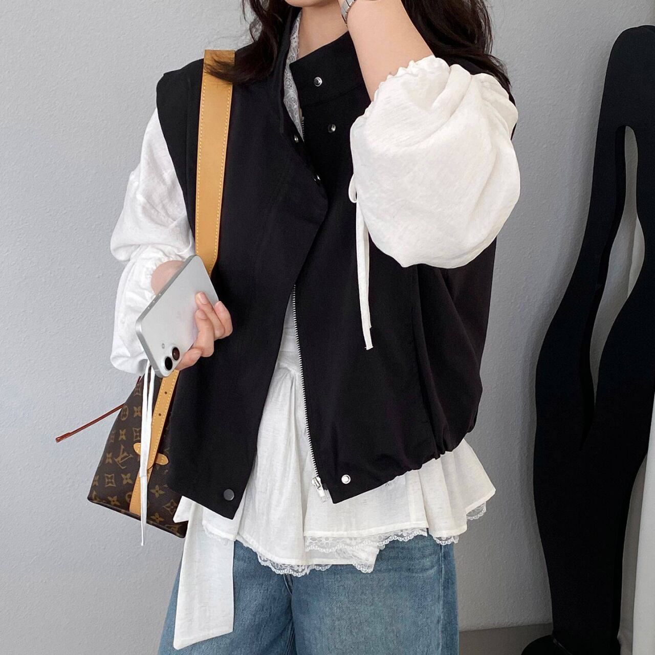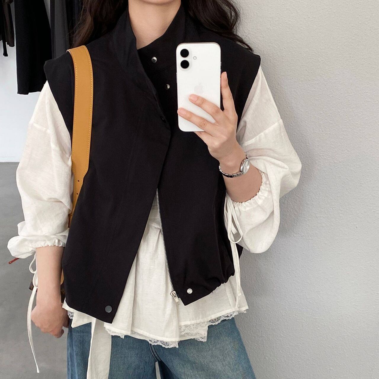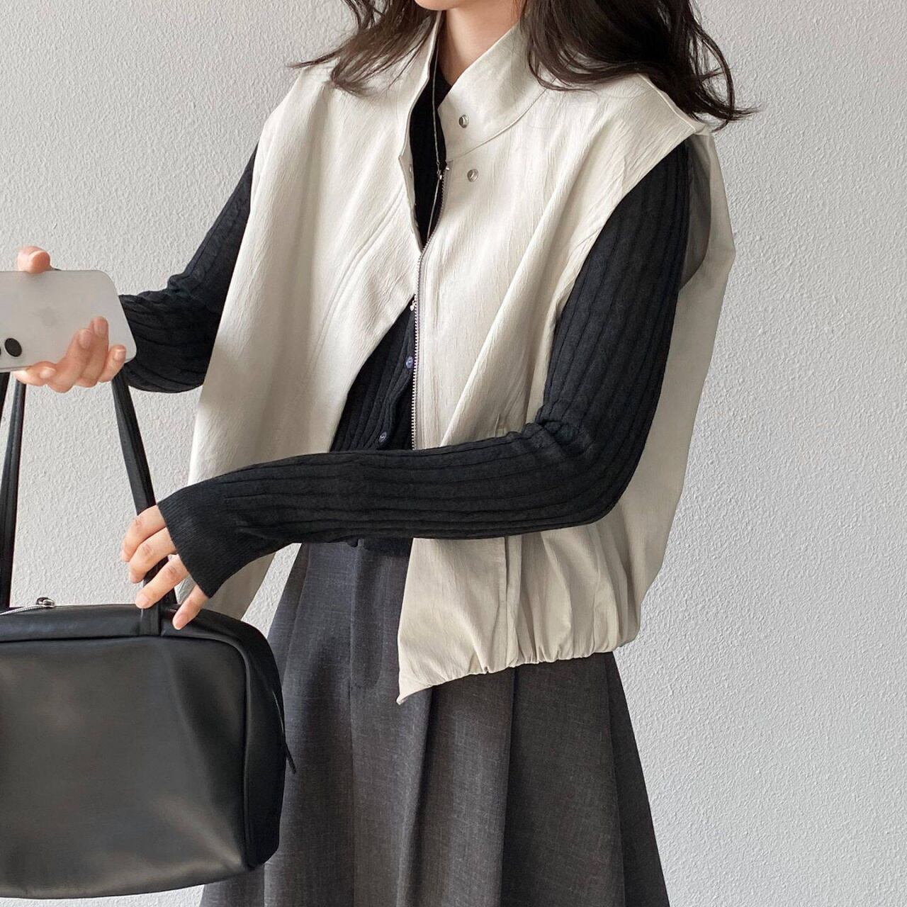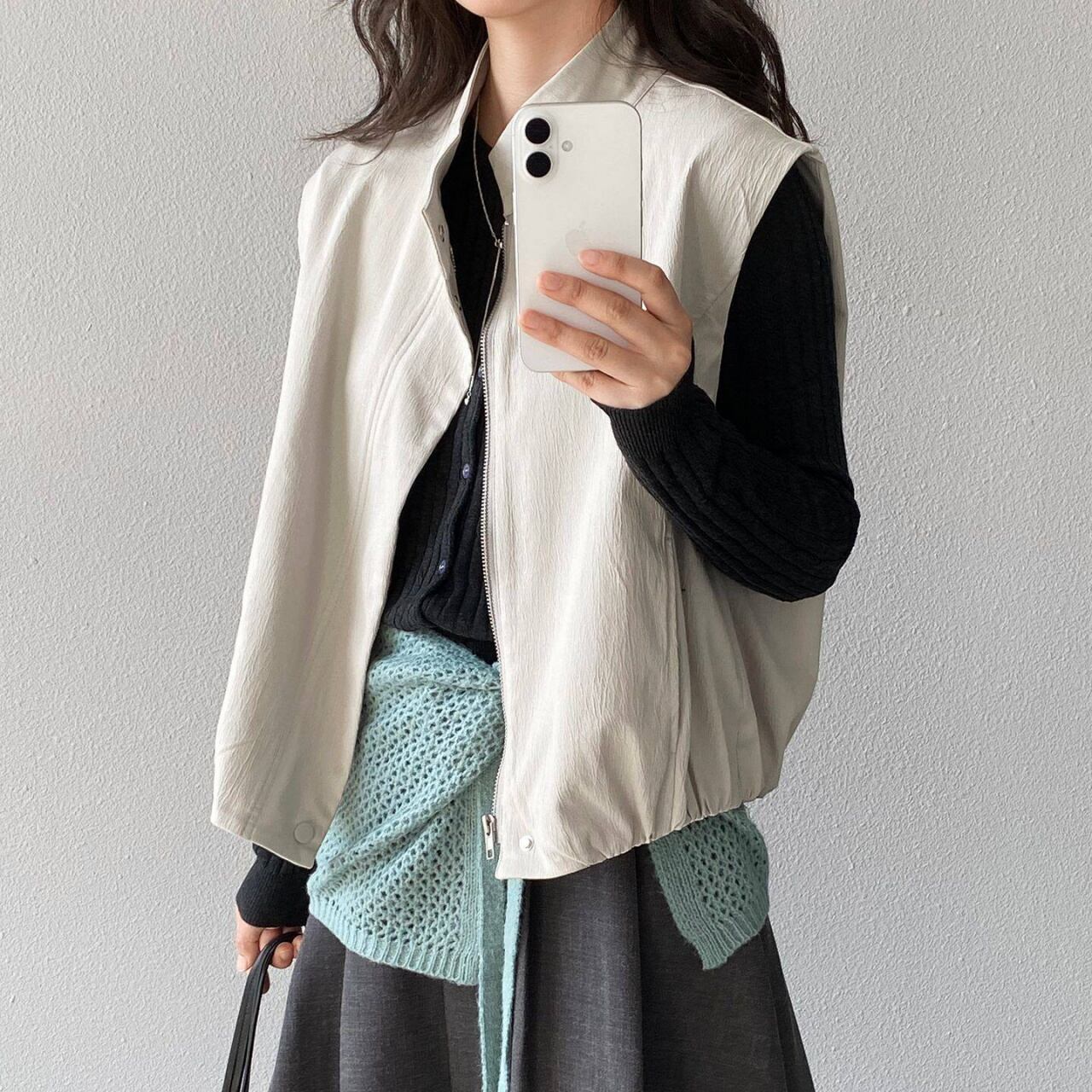 スタンドカラースナップボタンジップアップベスト A02120