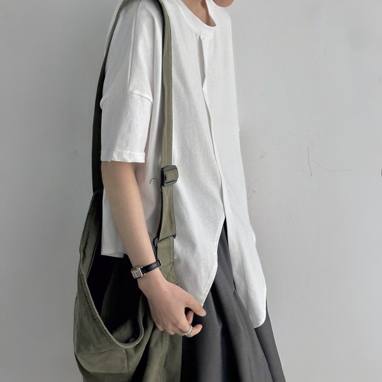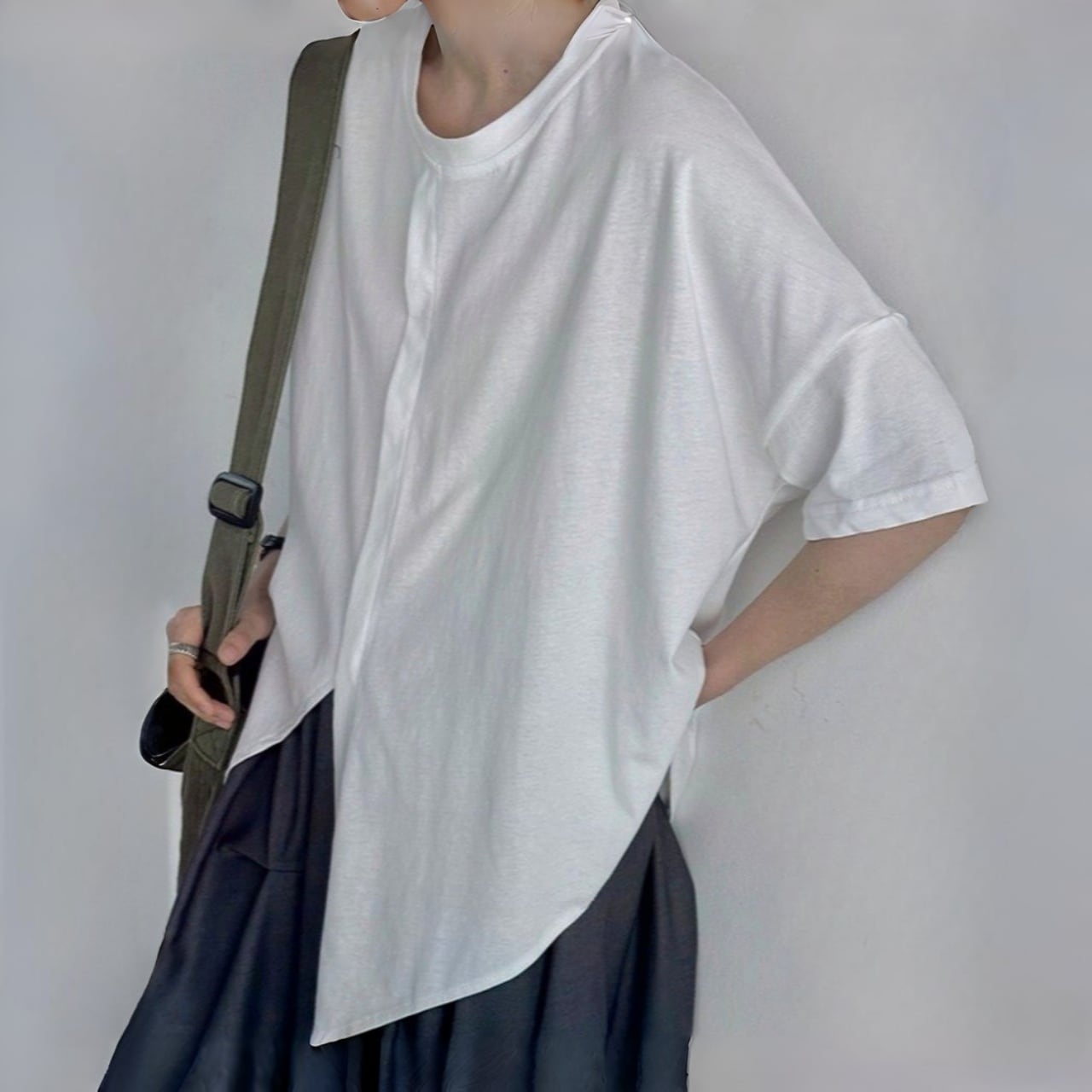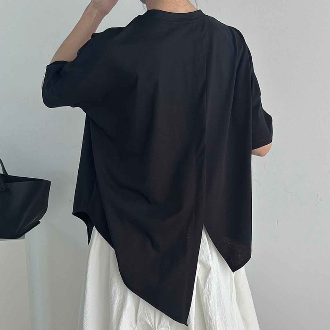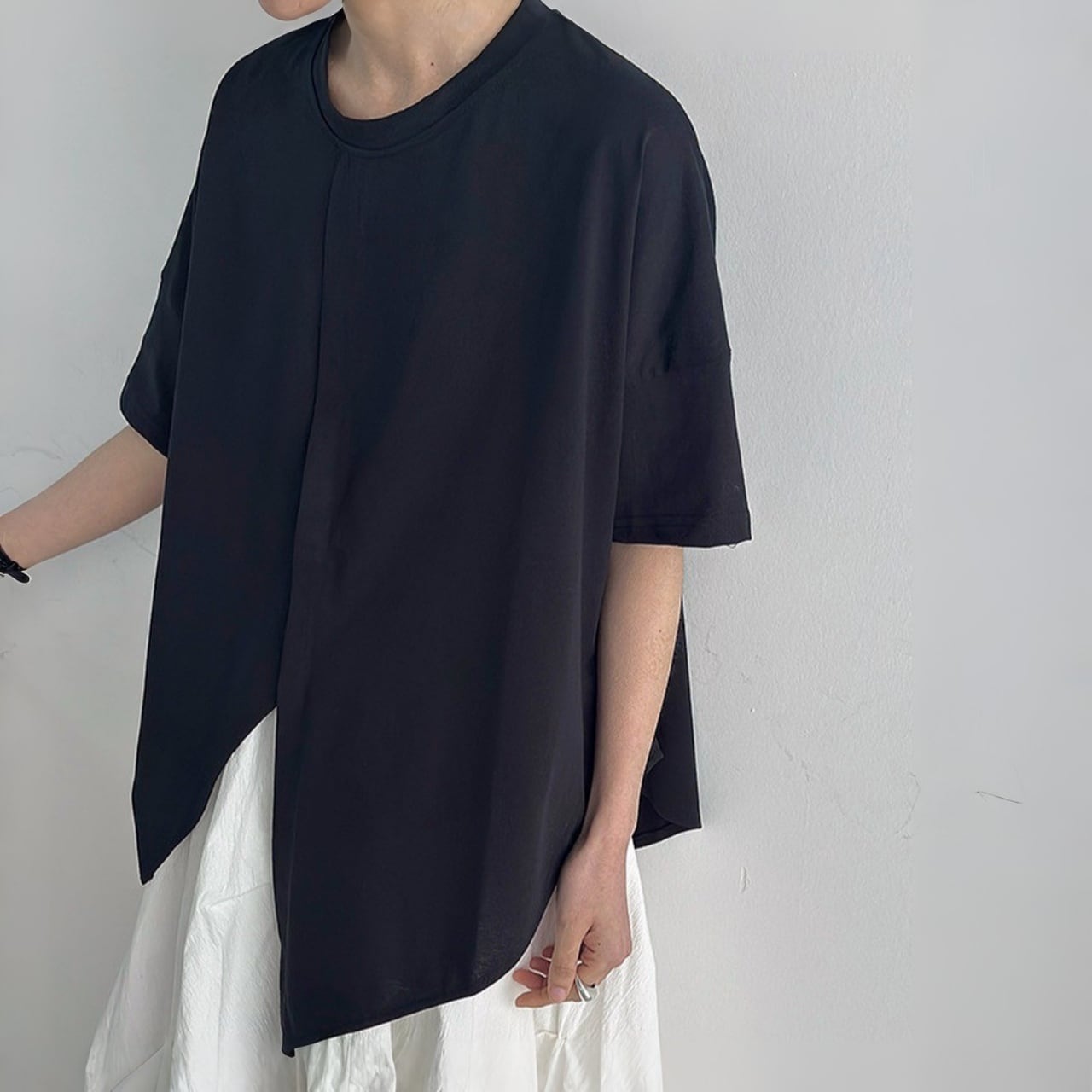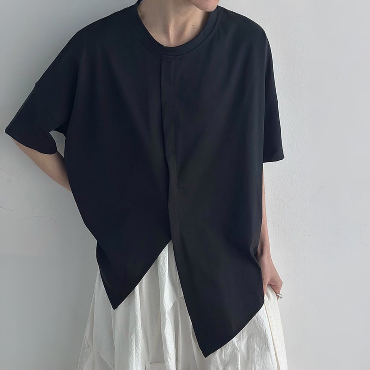 センターラインオーバーラップアシメヘムTシャツ A02125