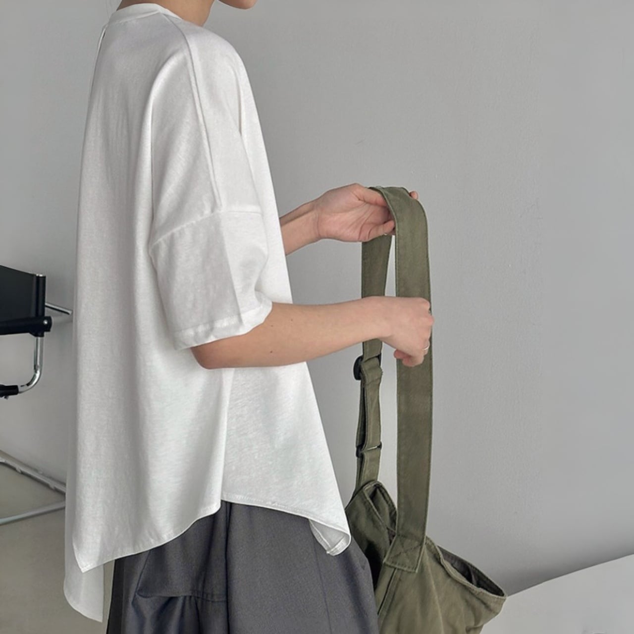 ドロップショルダーで、リラックスした抜け感のあるスタイルに。