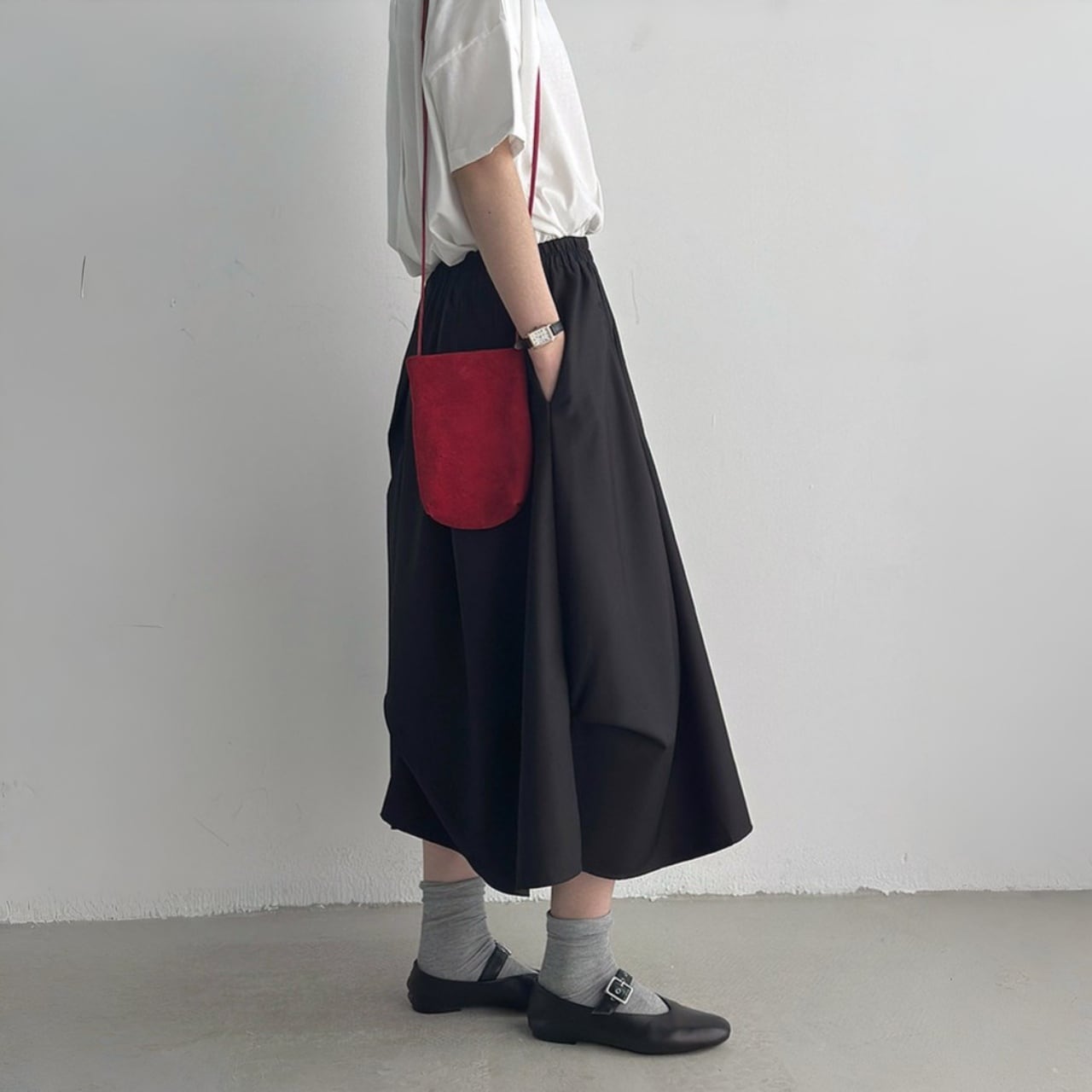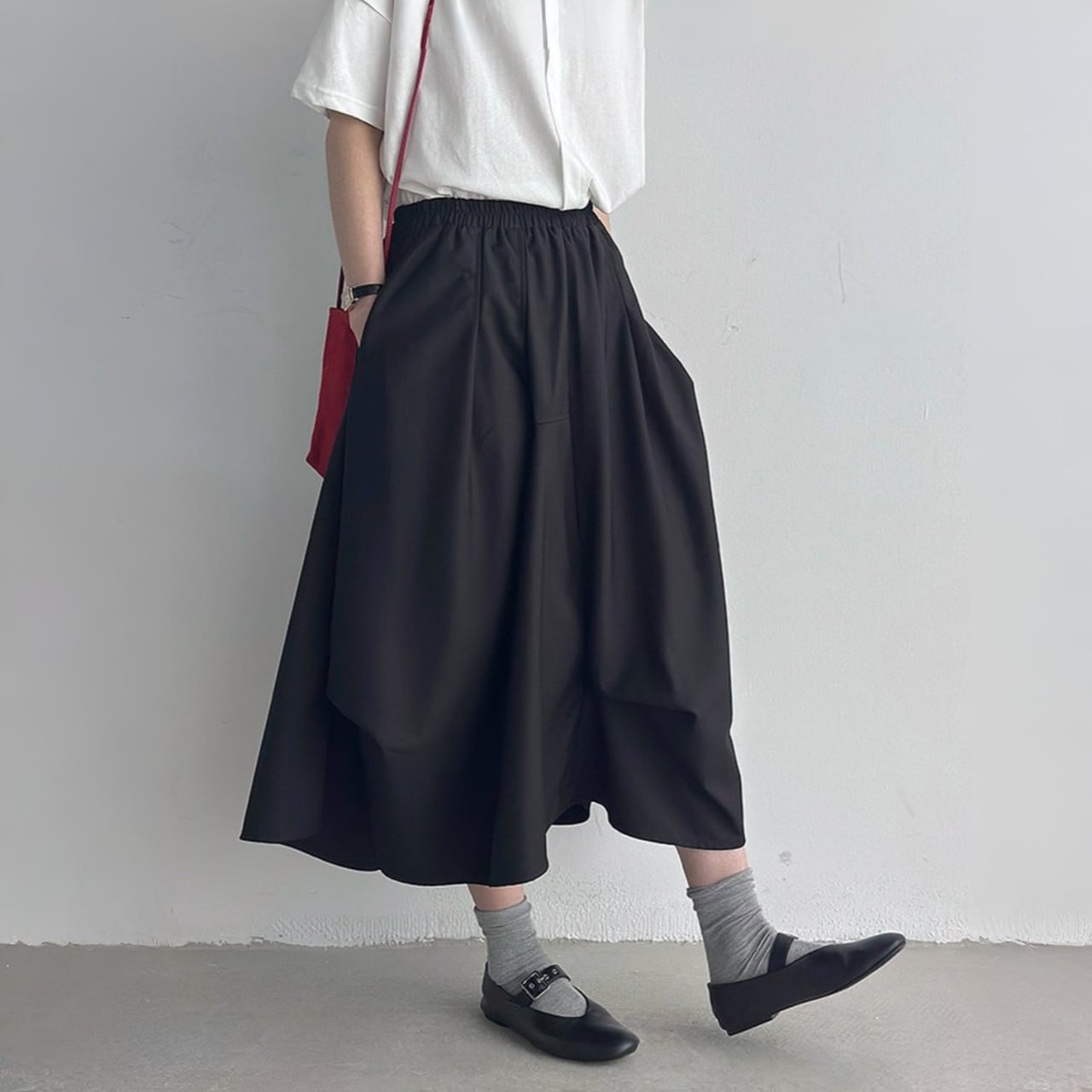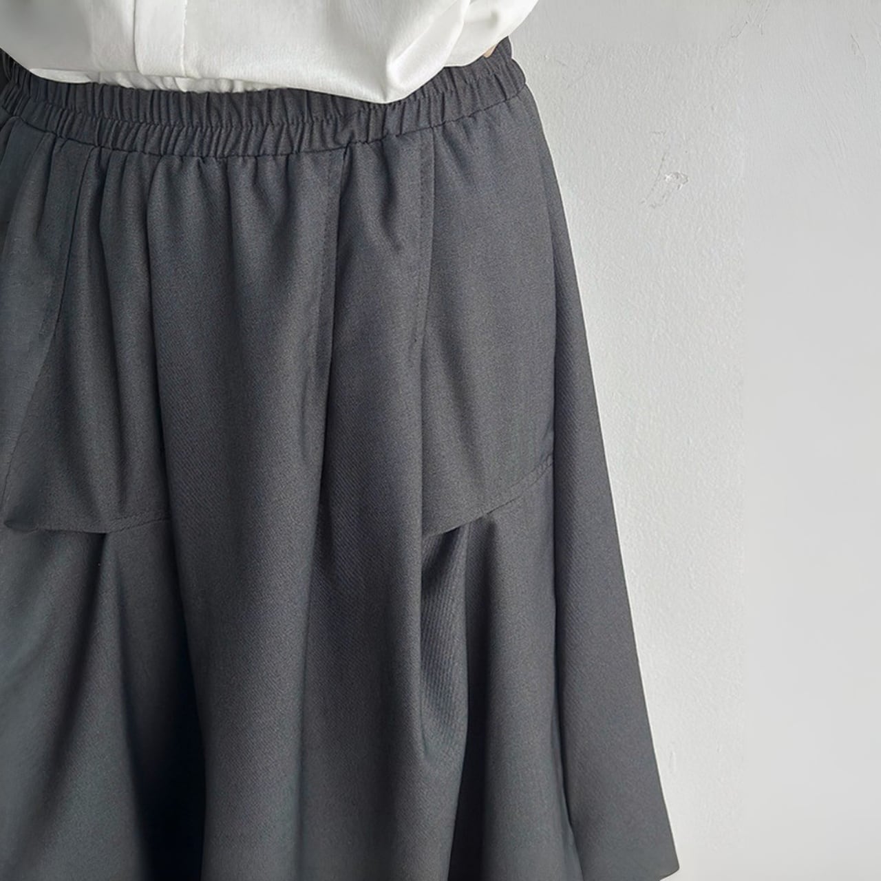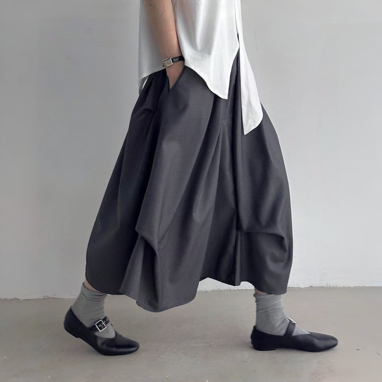 動くたびに表情が変わる、ランダムタックが印象的なスカート。