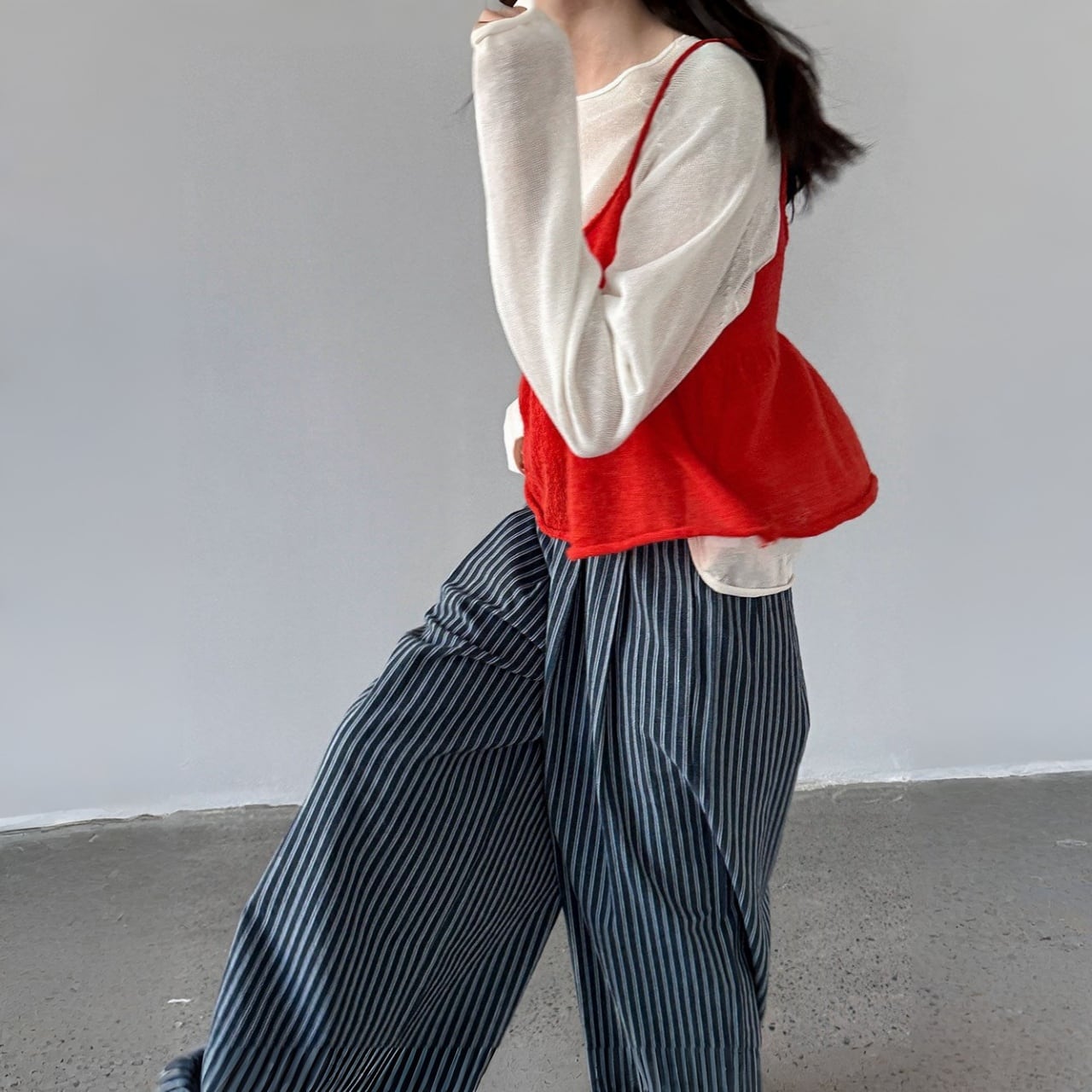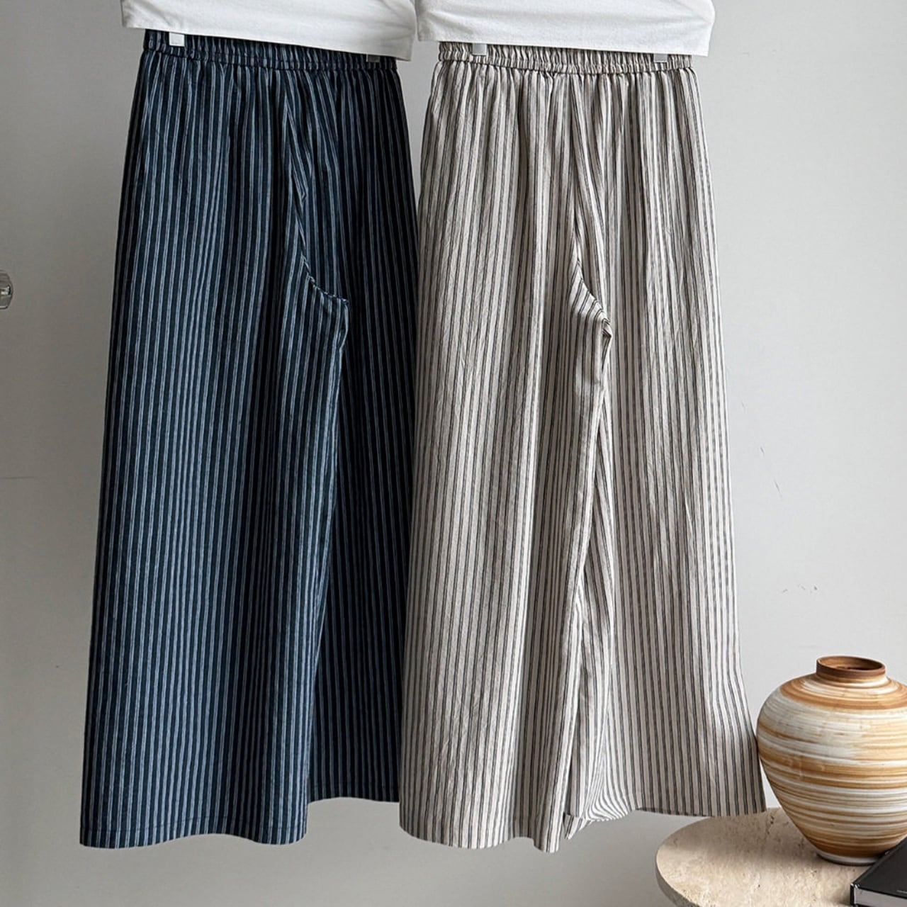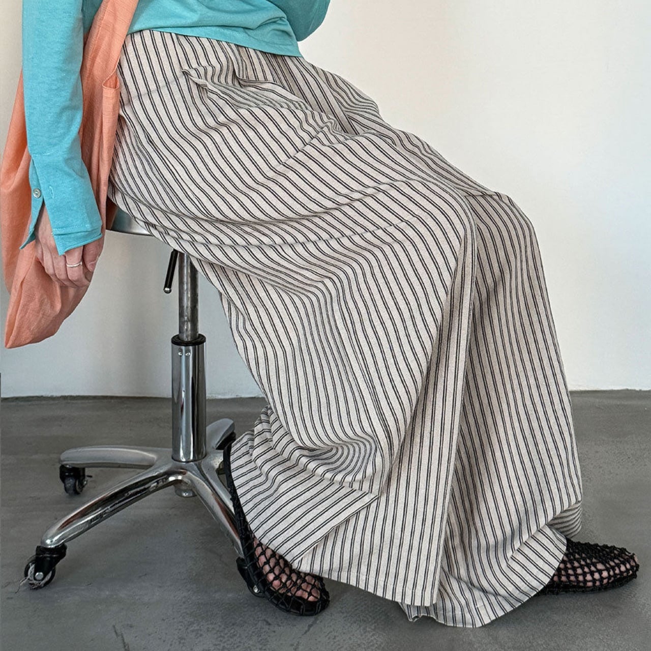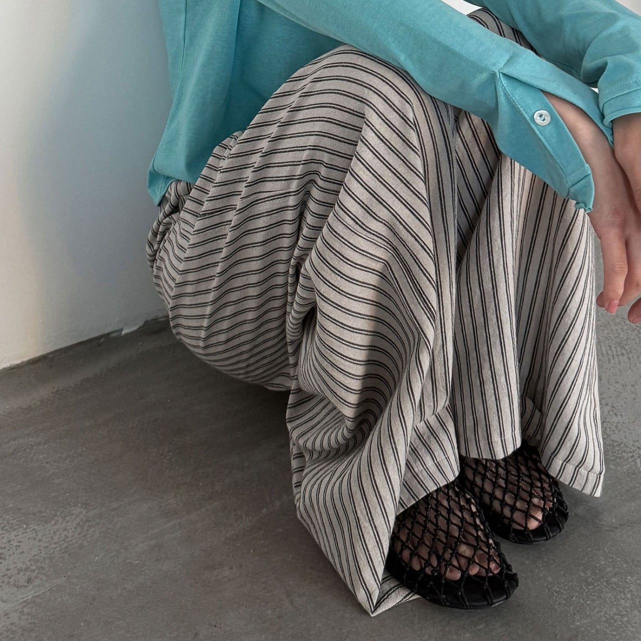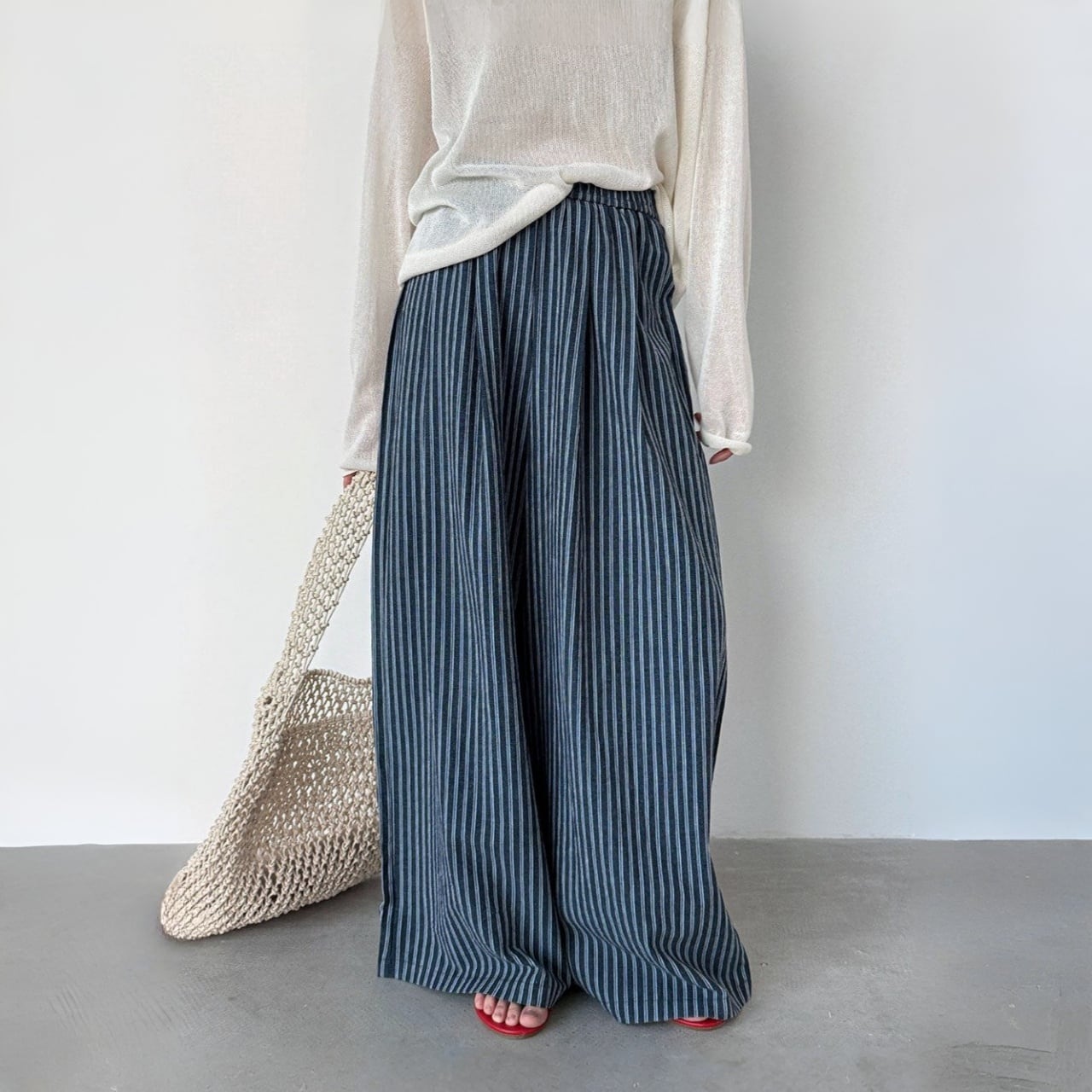 縦のラインを強調するピンストライプが、スタイルアップを叶えるワイドパンツ。