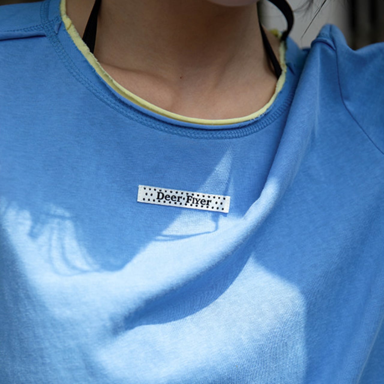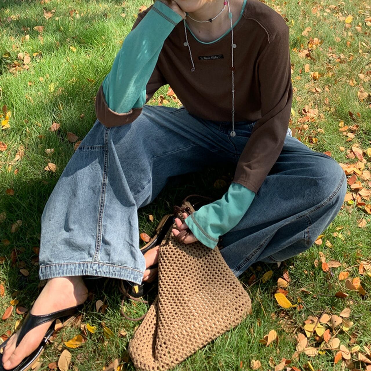 1枚でレイヤード風スタイルが楽しめる、遊び心あるバイカラーデザイン。