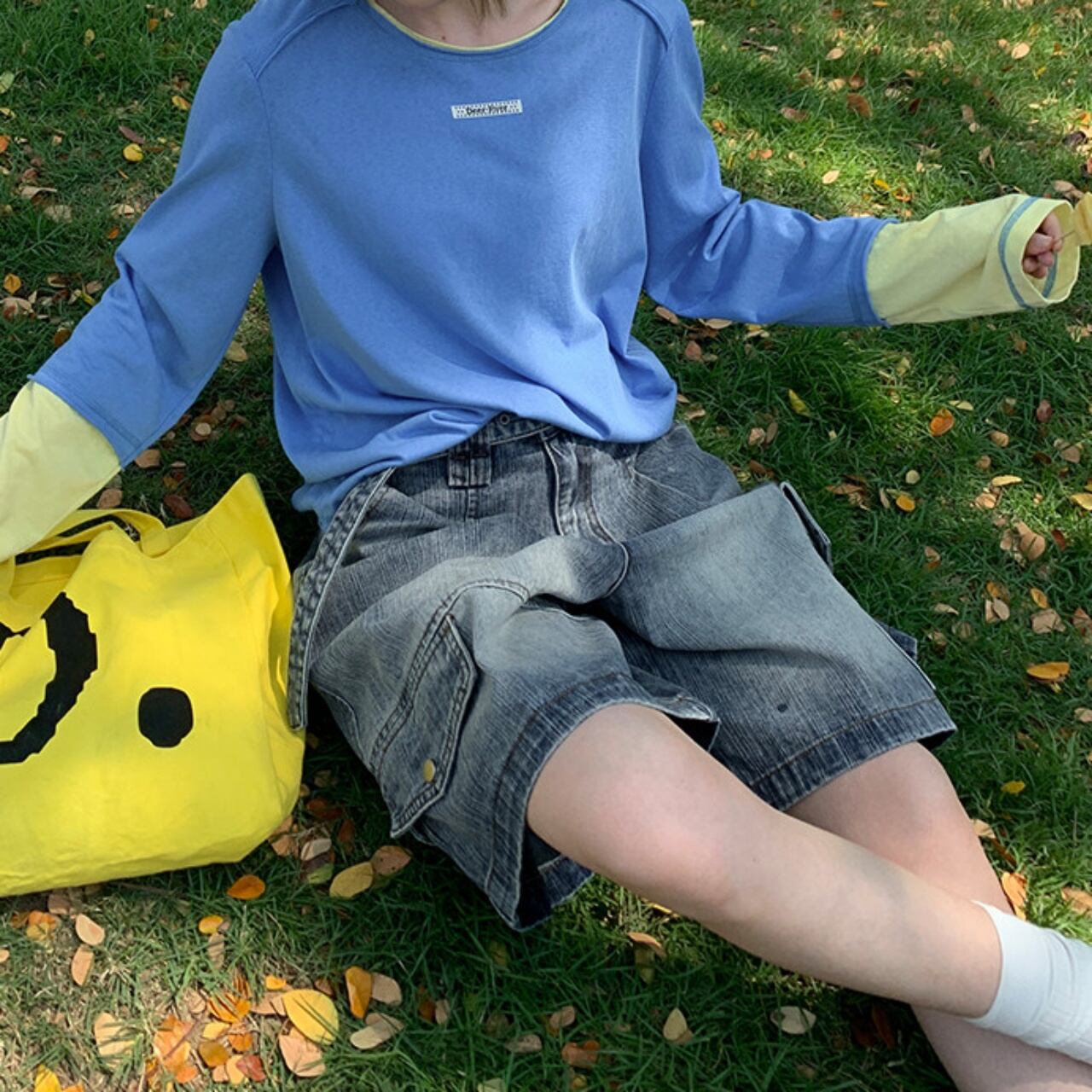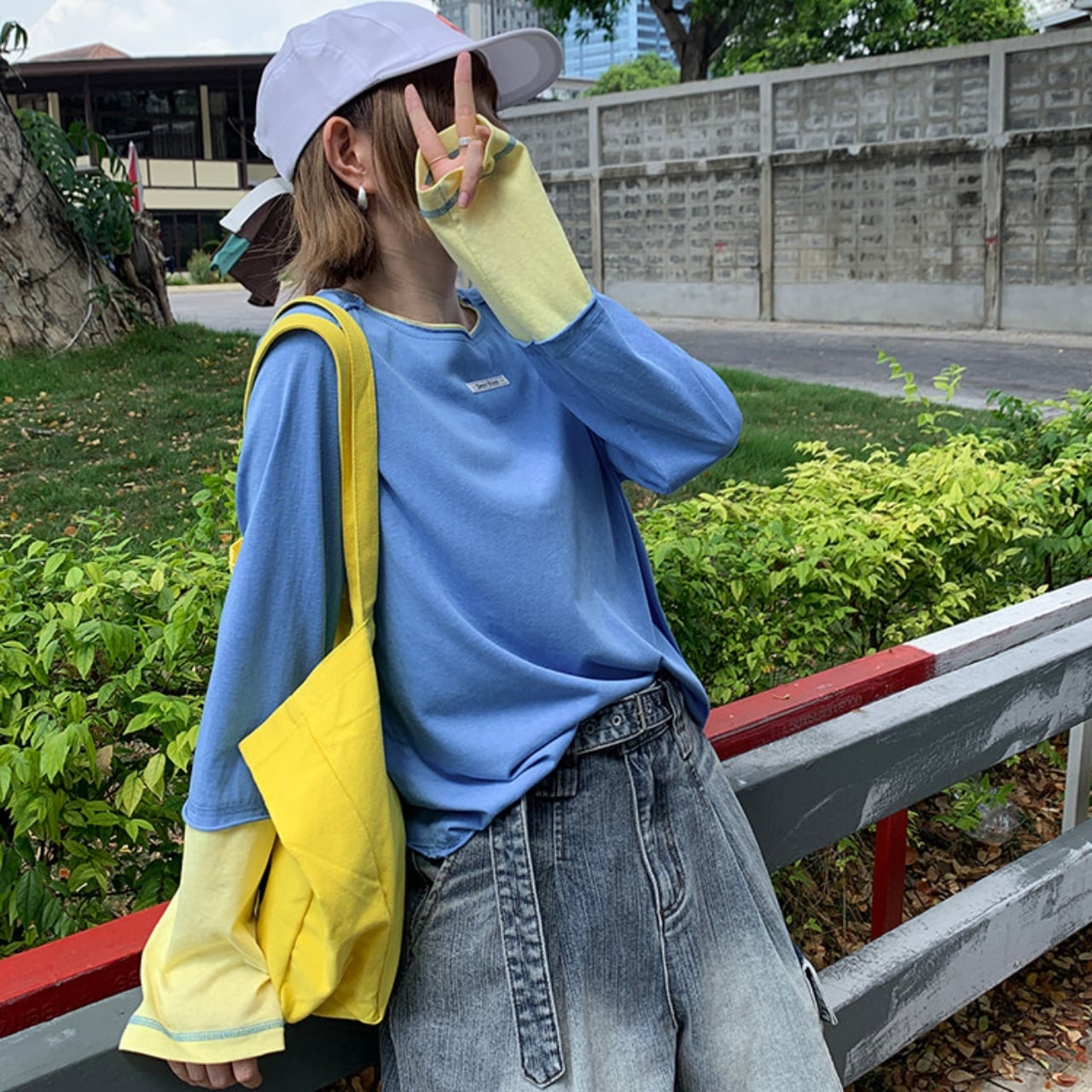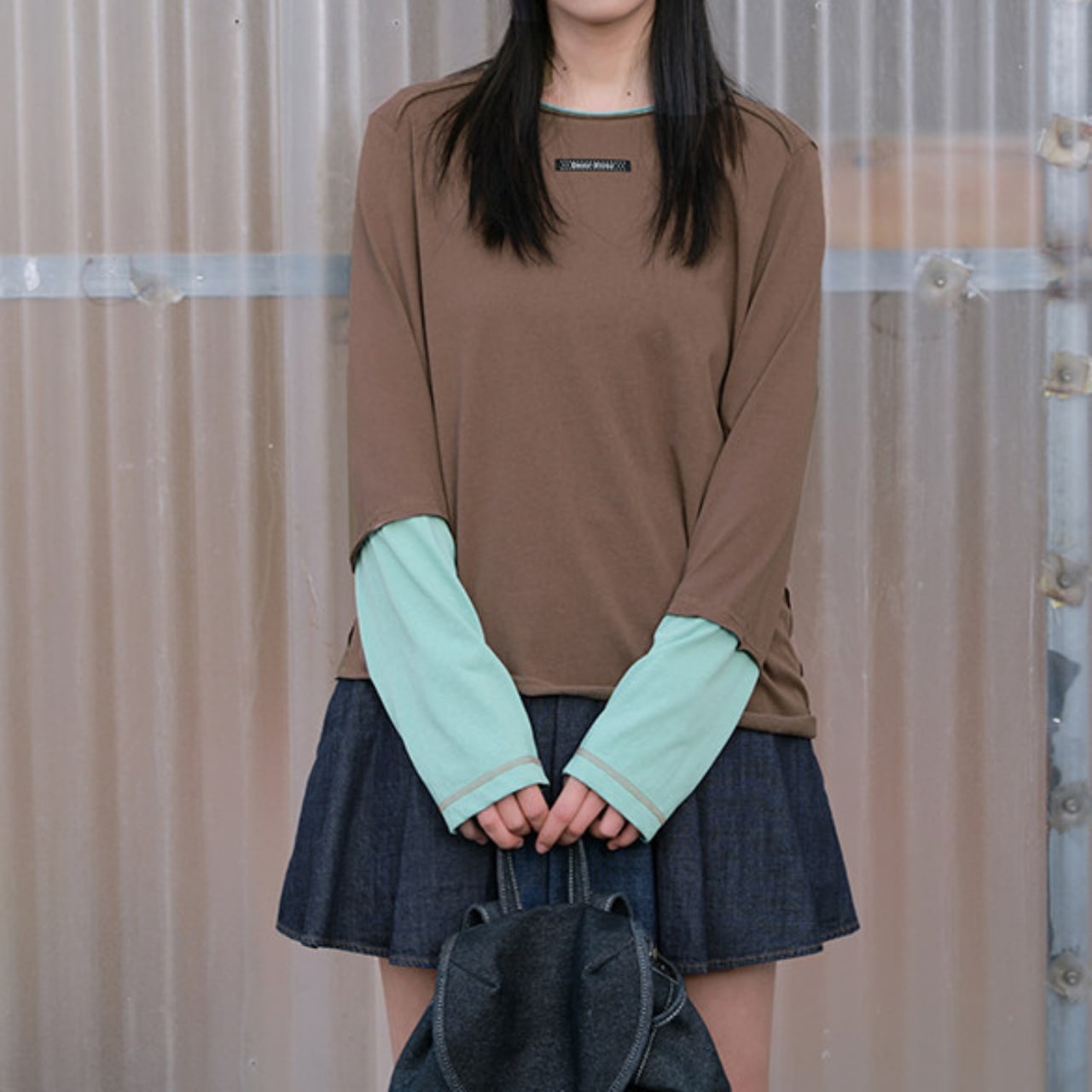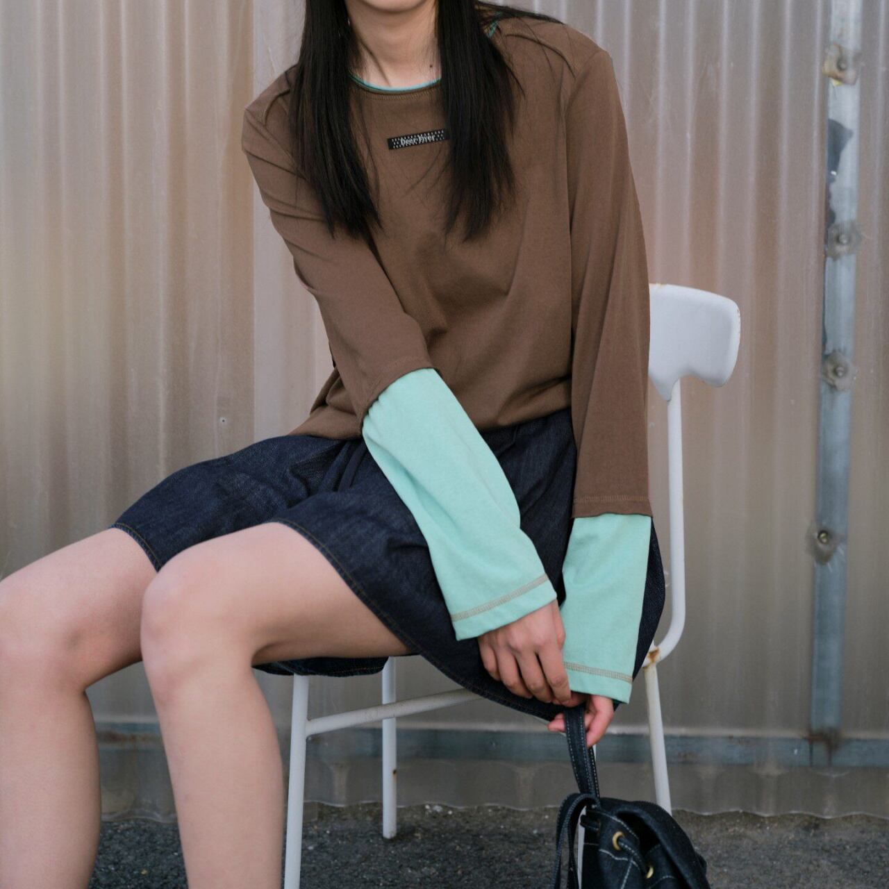 フェイクレイヤードバイカラーロングスリーブTシャツ A02166