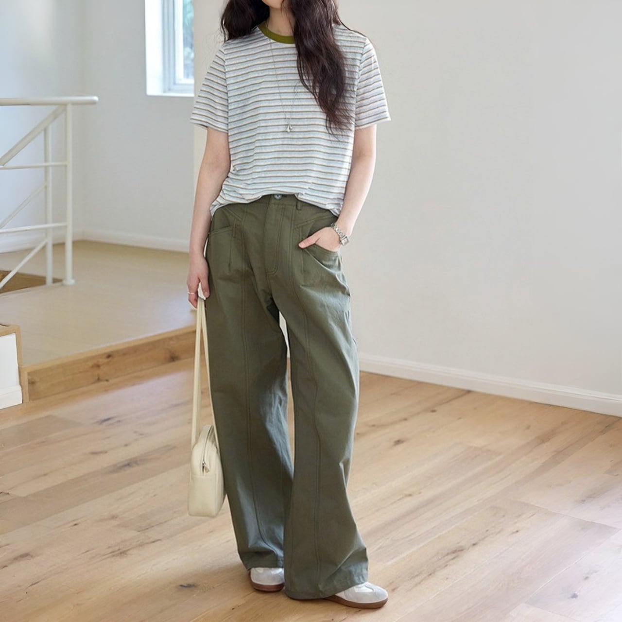 センターラインステッチが縦のラインを強調し、スタイルアップを叶えます。