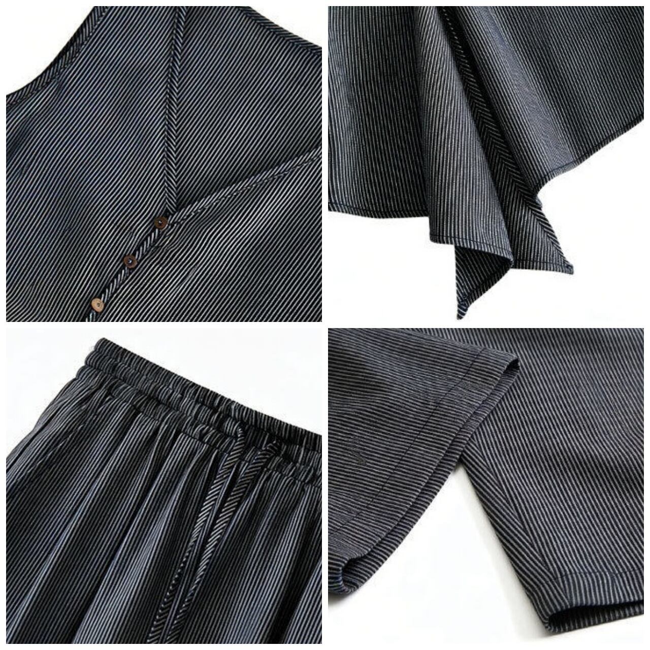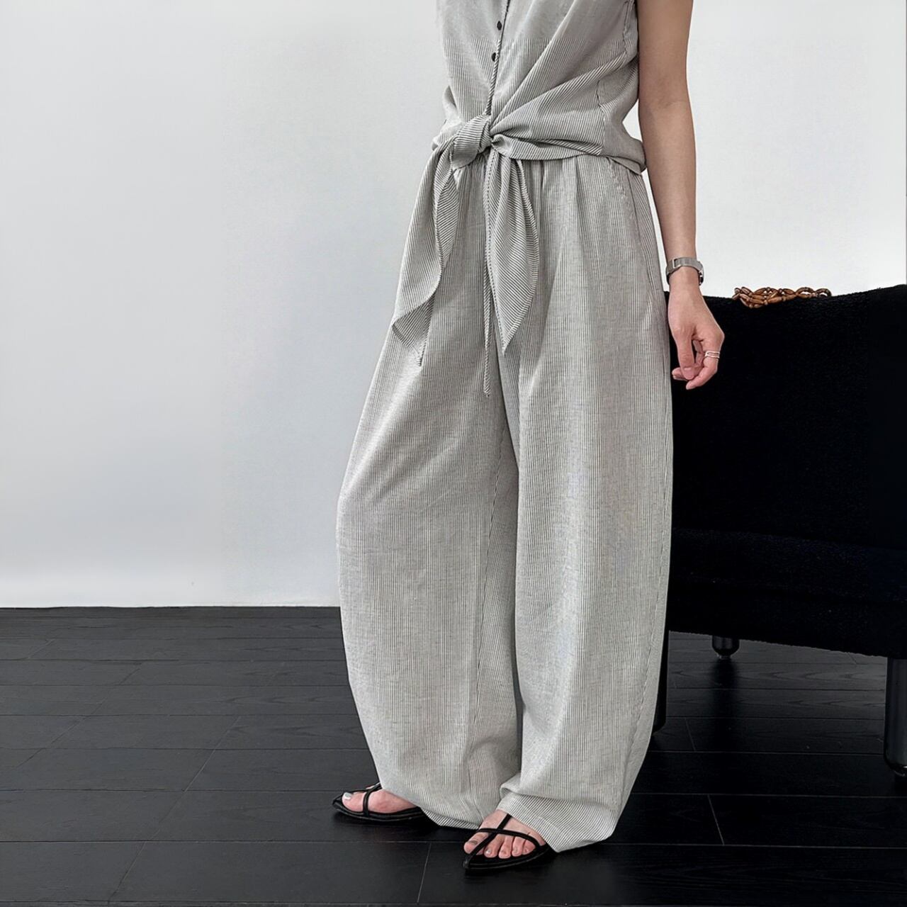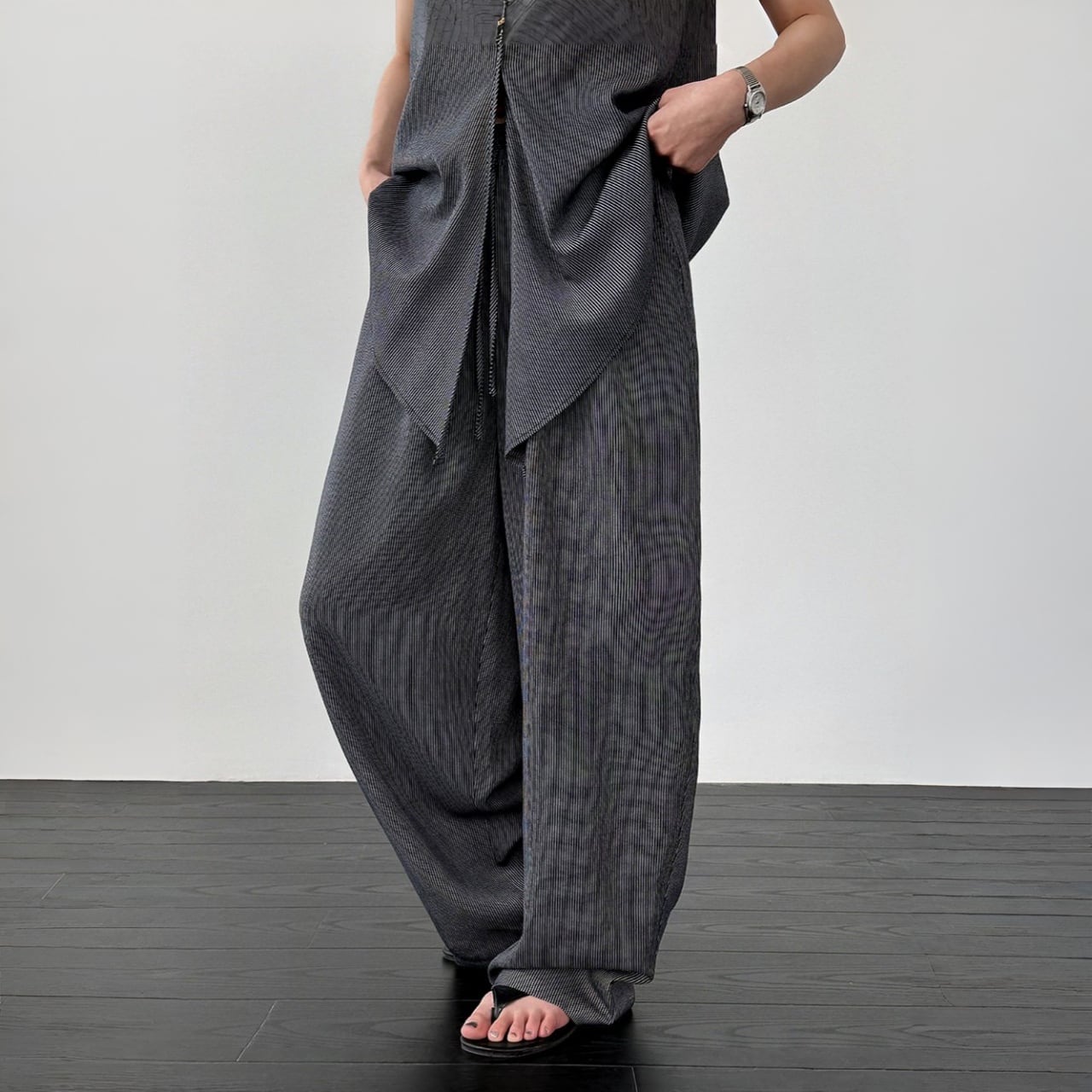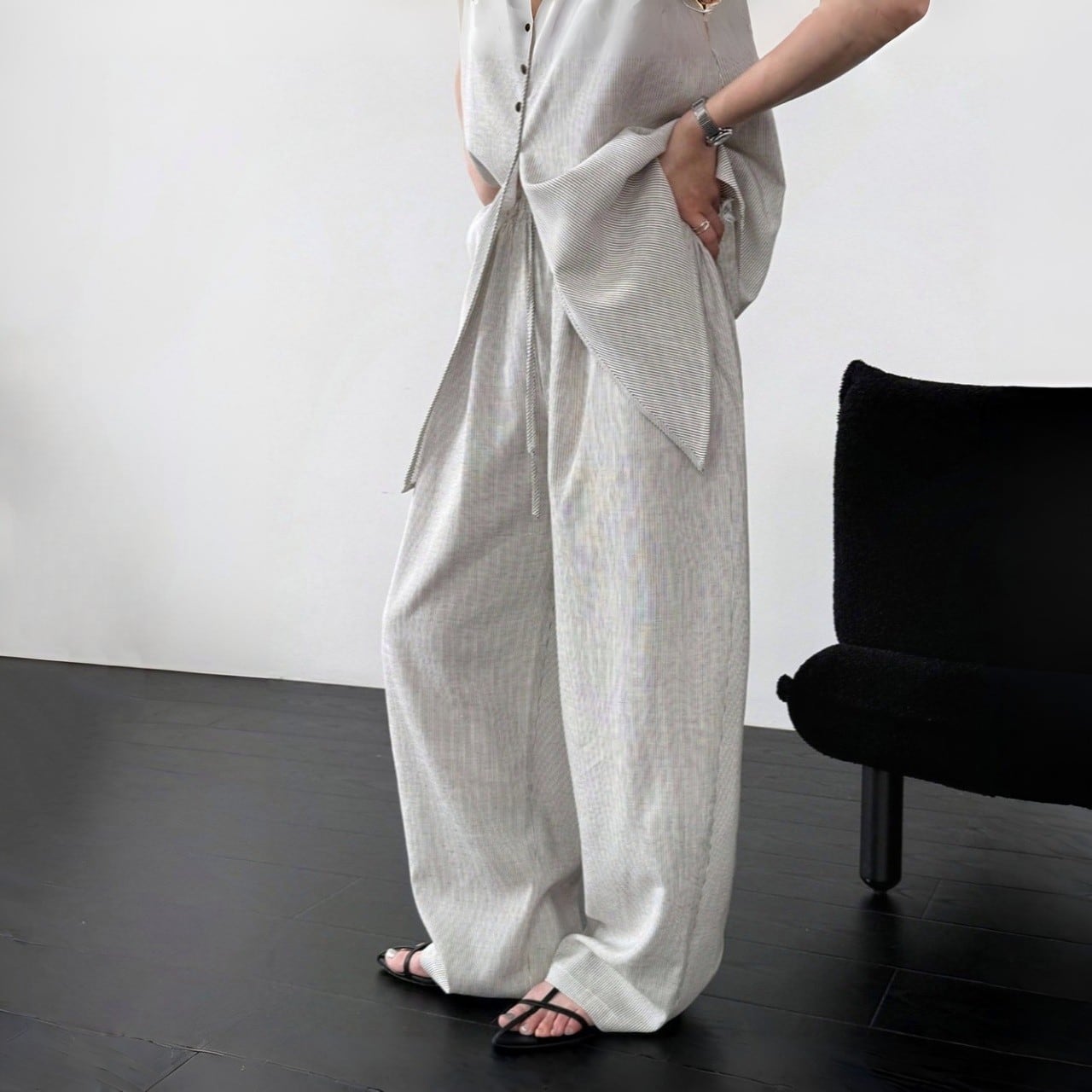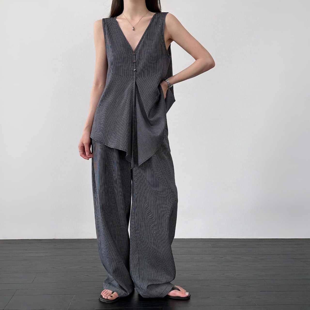 リラクシーストライプアシメヘムVネックベスト&ワイドパンツ A02176