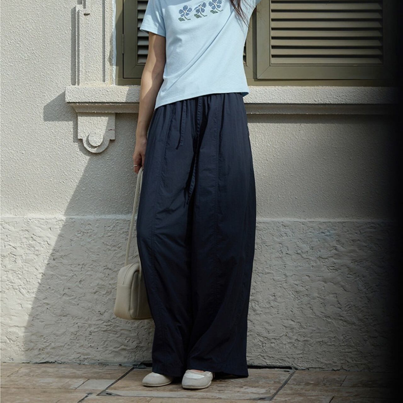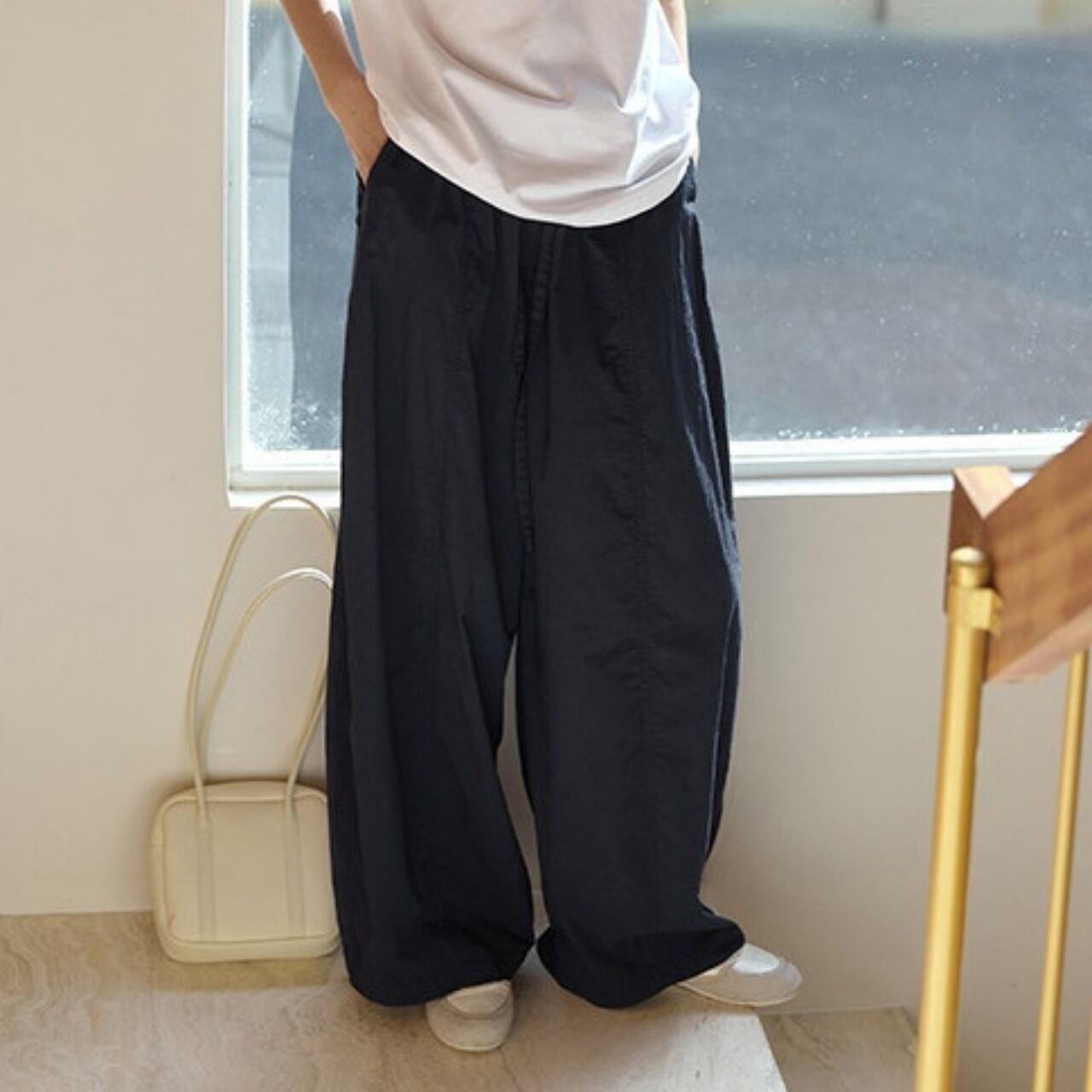 空気を孕むような軽やかさが魅力のハイウエストバルーンパンツ。