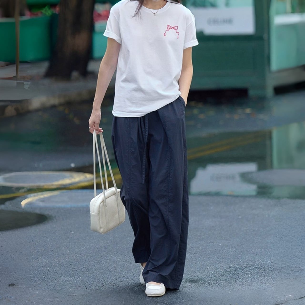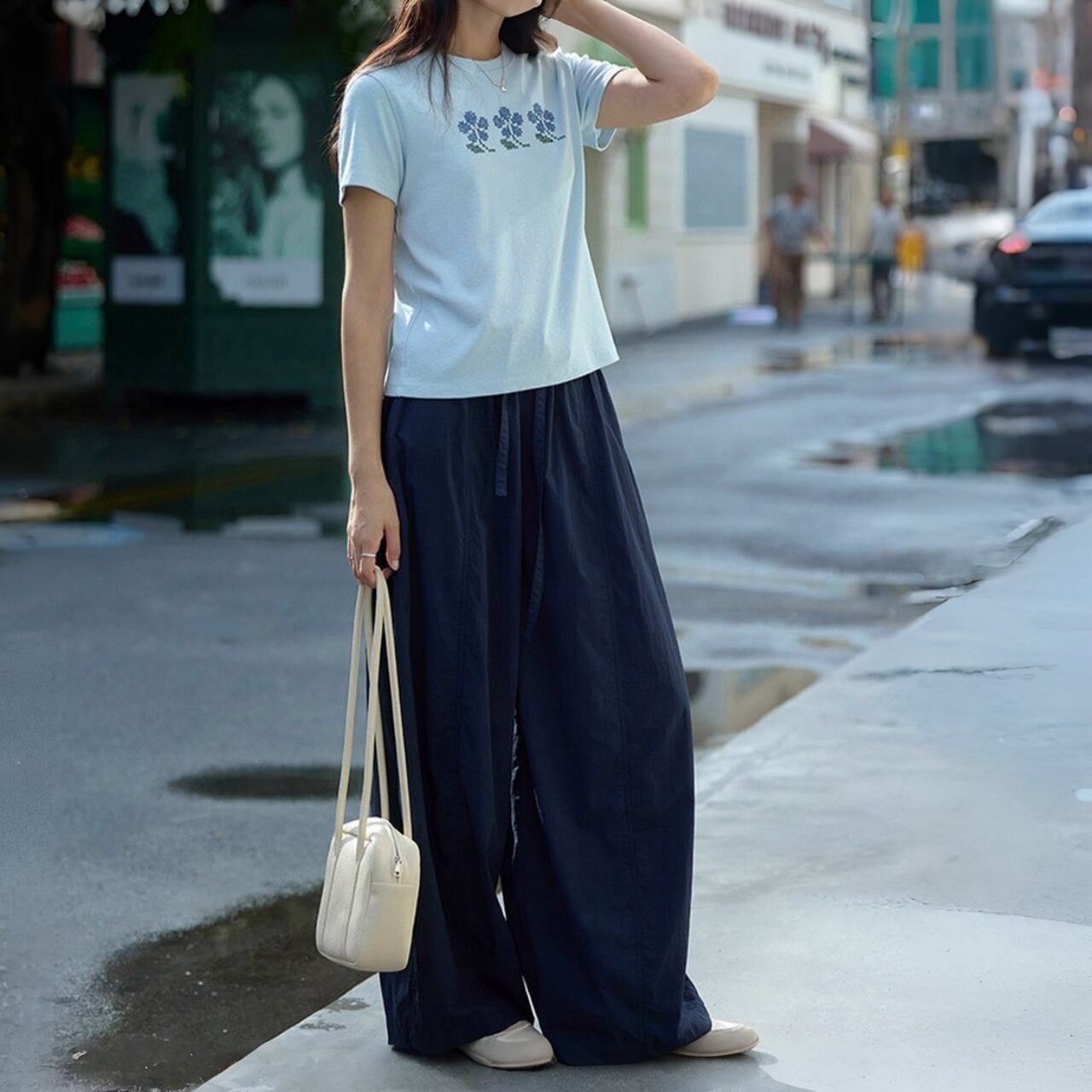 ゆったりとしたシルエットが抜け感を演出しつつ、程よくハリのある質感が美しいフォルムを引き立てます。