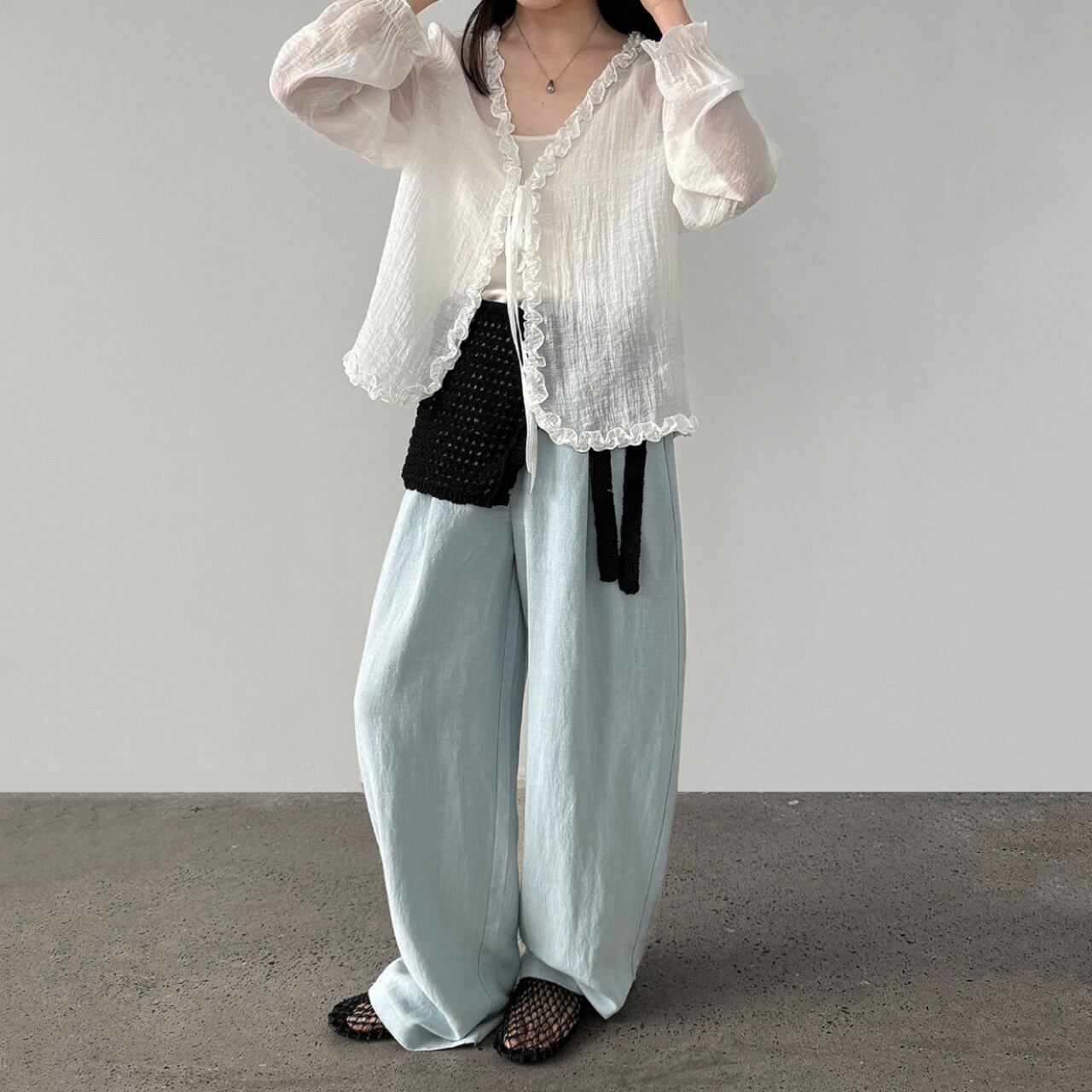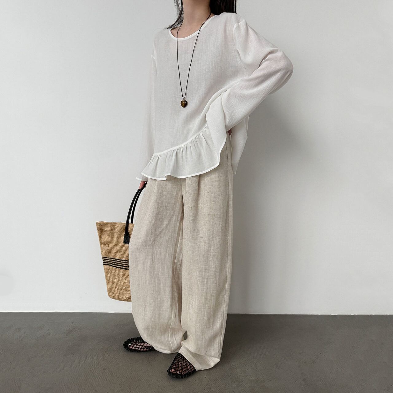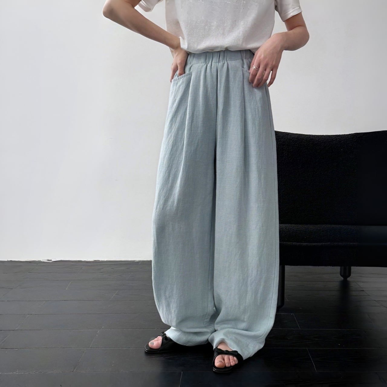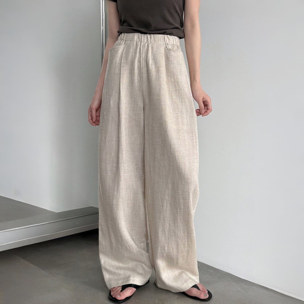 リネンブレンドルーズドレープワイドパンツ A02179