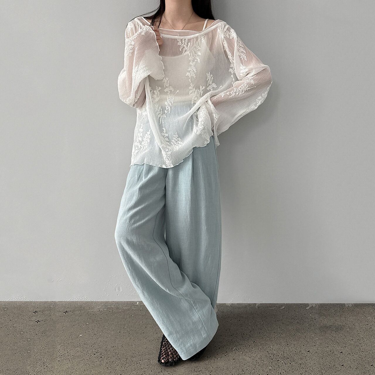 しなやかな落ち感が、広がりすぎない絶妙なボリュームと上品なルーズさを演出します。